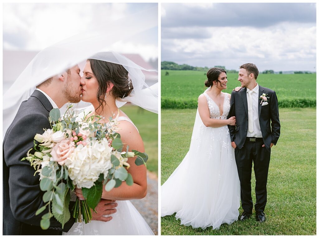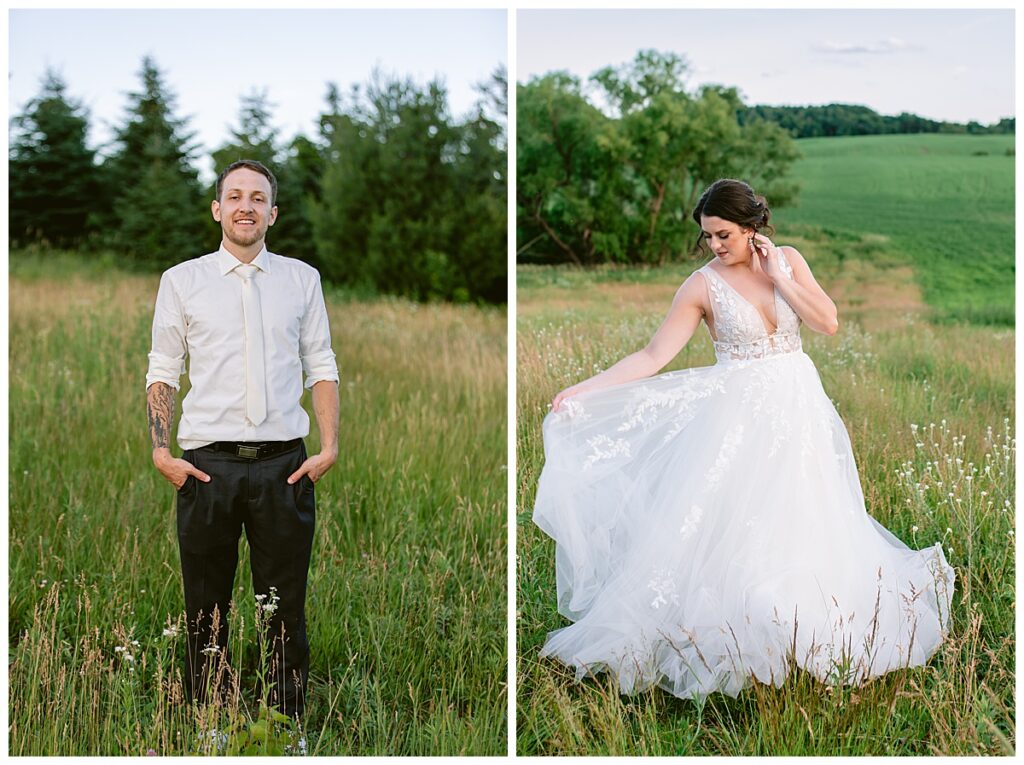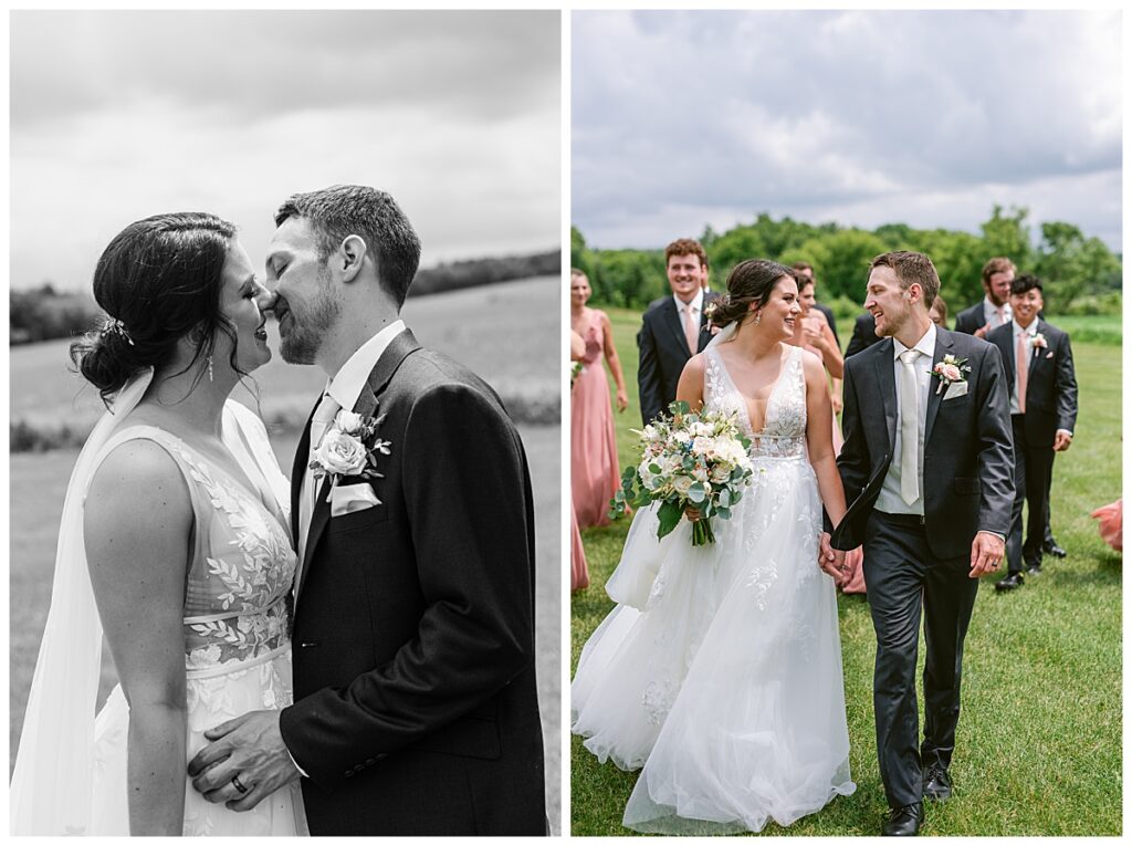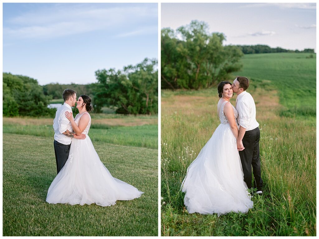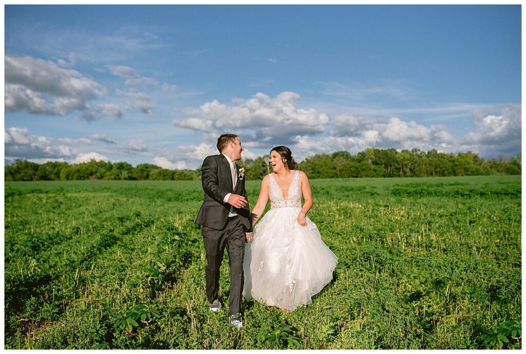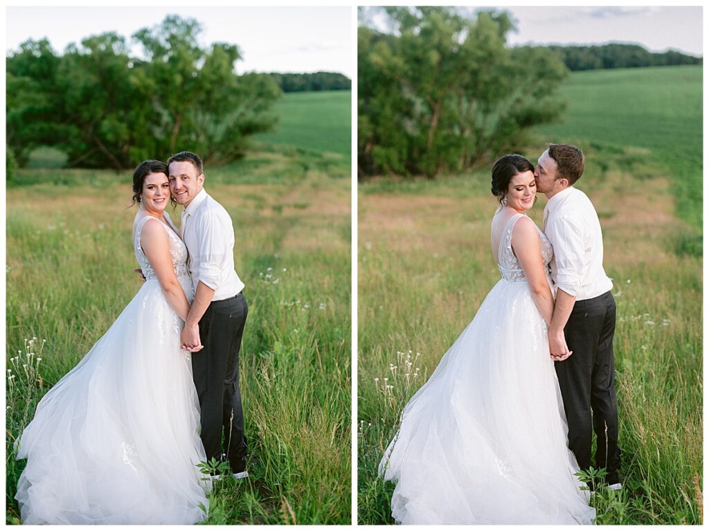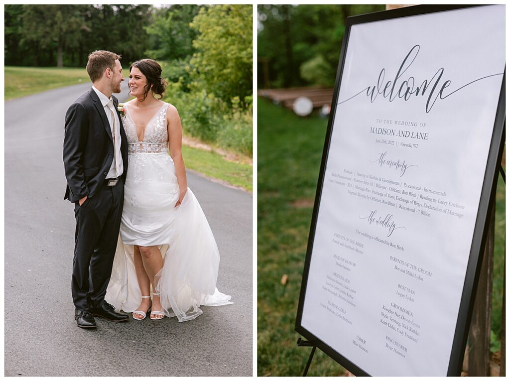 Friends and family traveled from all over the United States and even the United Kingdom to celebrate with Madison and Lane. The two were wed at the beautiful Croix View Farm in Osceola, Wisconsin. One of their close family friends officiated the ceremony as they exchanged rings from Shane Co and celebrated with a tasty meal from We Cater To You, a catering company Madison worked at in college! We Cater To You also provided the stunning cake and Studio Veil brought the guests to the dance floor. The couple spent time creating signs and decorations that could be used later on and chose to have their guests sign corn hole boards as their personal guest book and guests used the fun photo book from Studio Veil to remember the day. KAS films captured the day beautifully and the day ended with a stunning sparkler exit on the farm.
