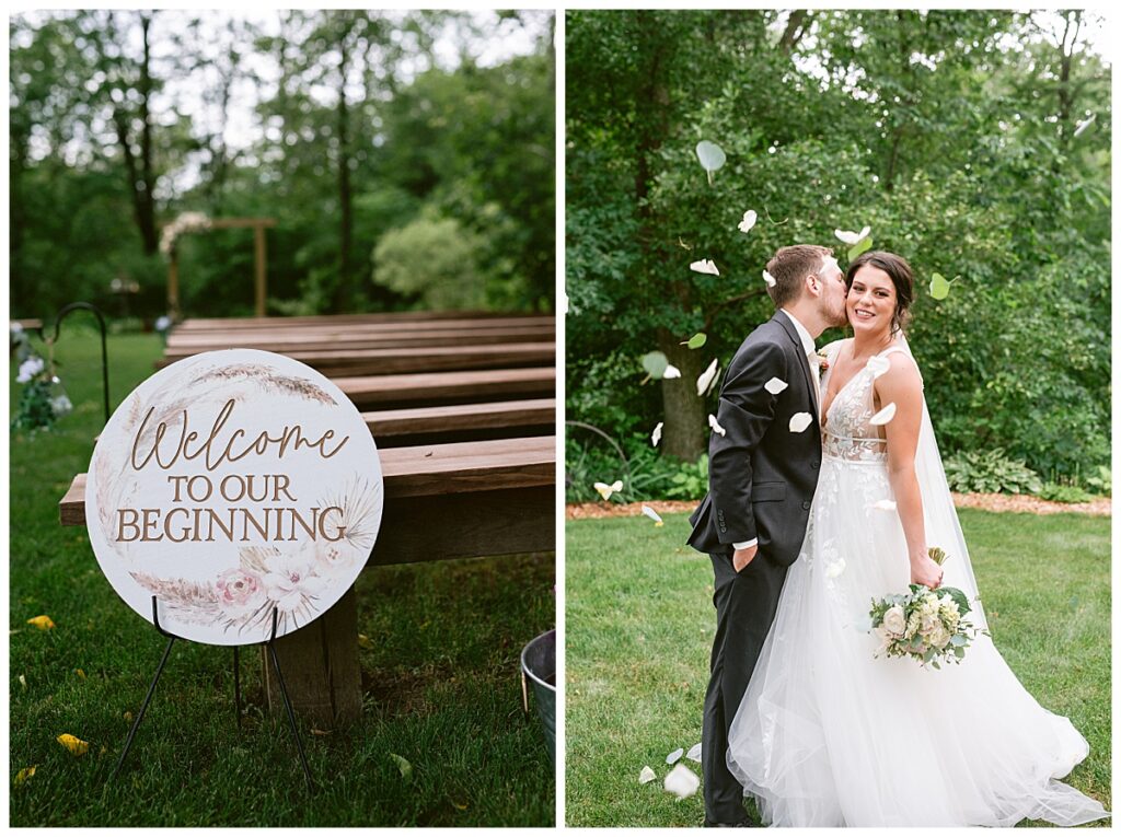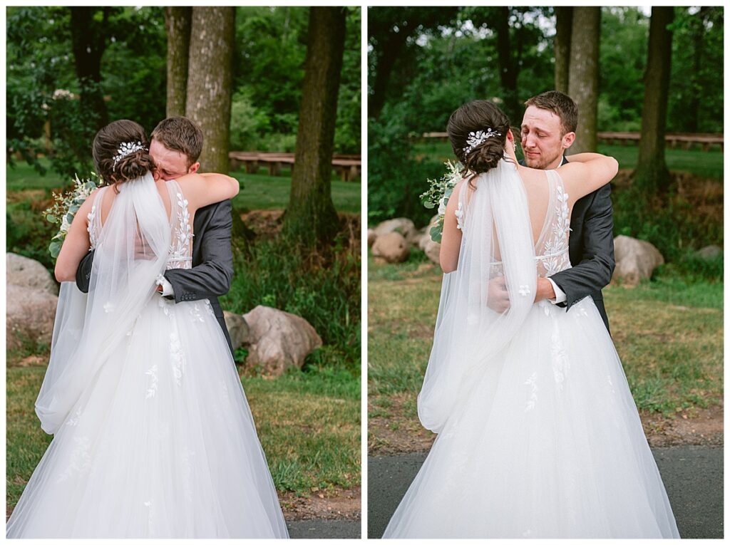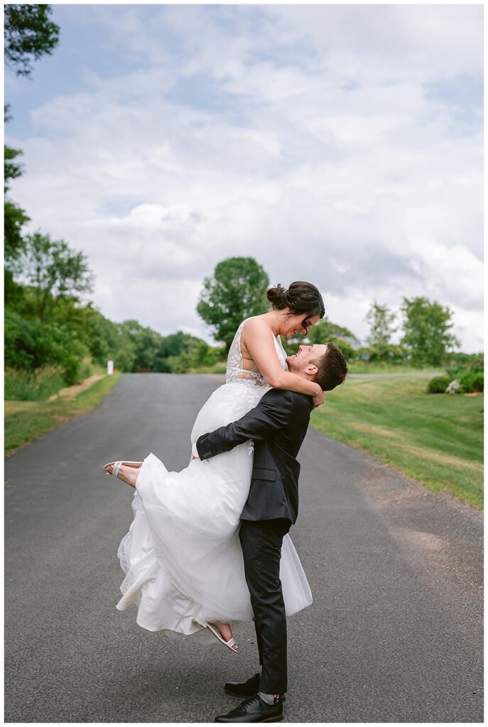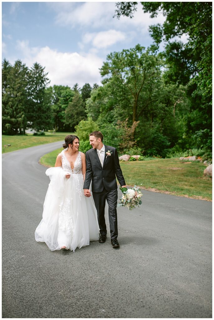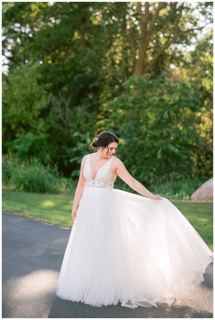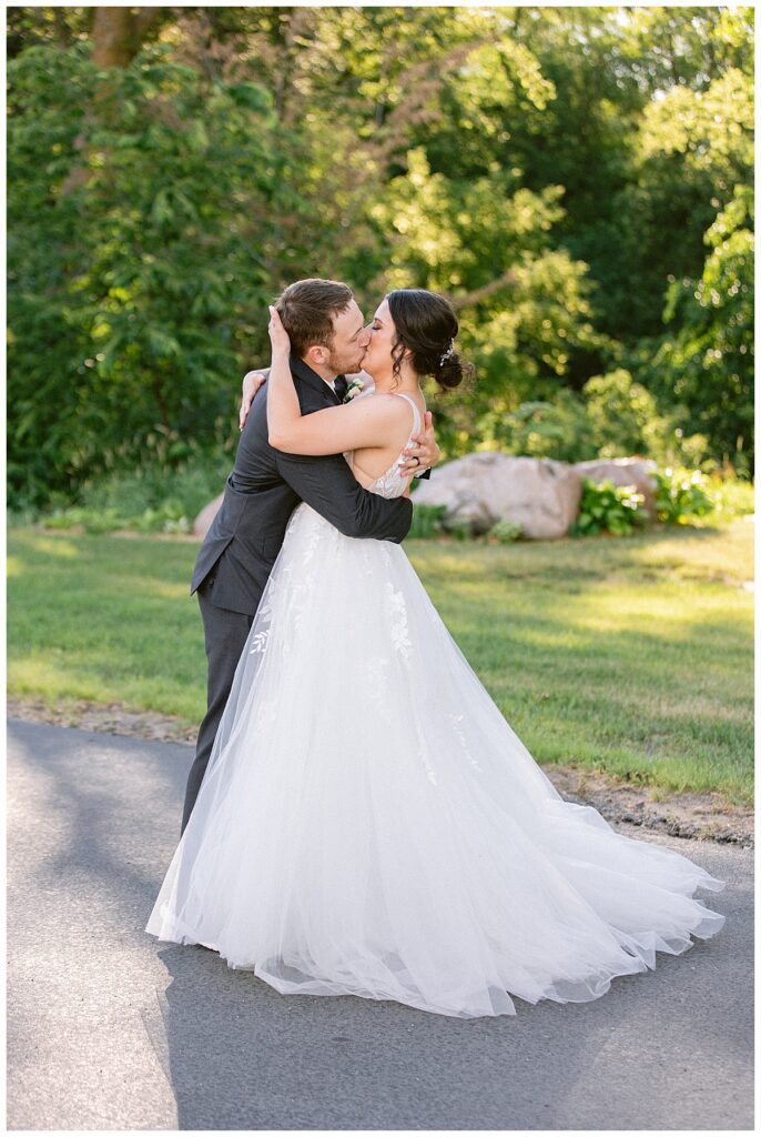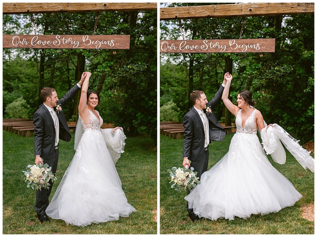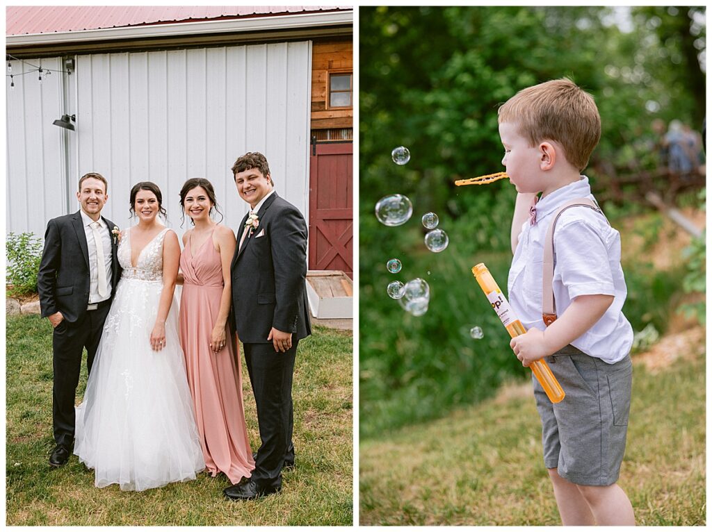 Friends and family traveled from all over the United States and even the United Kingdom to celebrate with Madison and Lane. The two were wed at the beautiful Croix View Farm in Osceola, Wisconsin. One of their close family friends officiated the ceremony as they exchanged rings from Shane Co and celebrated with a tasty meal from We Cater To You, a catering company Madison worked at in college! We Cater To You also provided the stunning cake and Studio Veil brought the guests to the dance floor. The couple spent time creating signs and decorations that could be used later on and chose to have their guests sign corn hole boards as their personal guest book and guests used the fun photo book from Studio Veil to remember the day. KAS films captured the day beautifully and the day ended with a stunning sparkler exit on the farm.