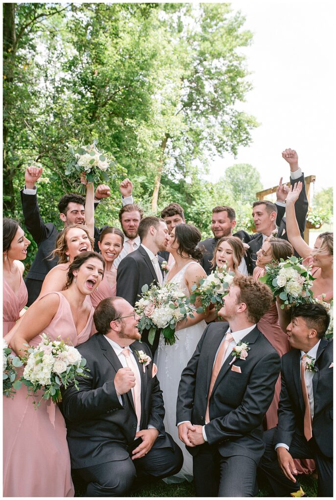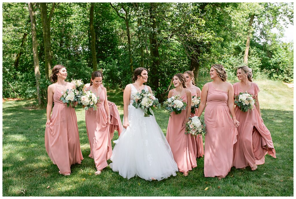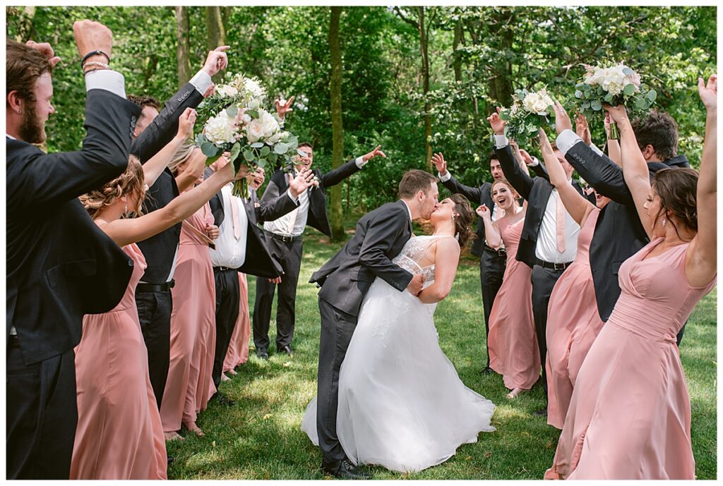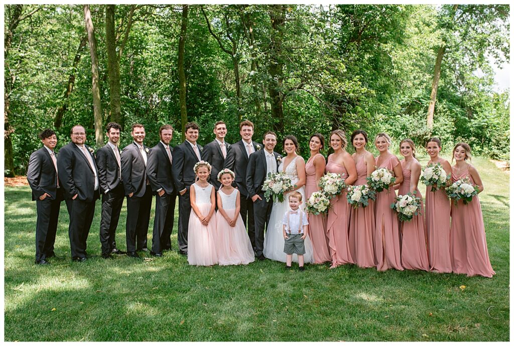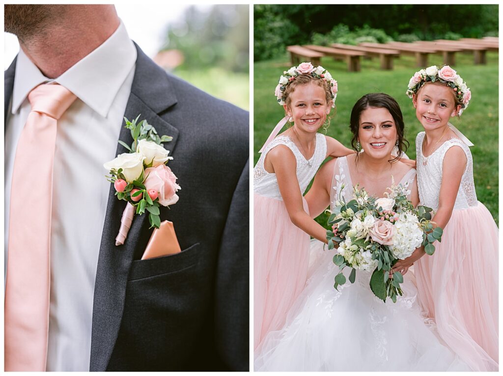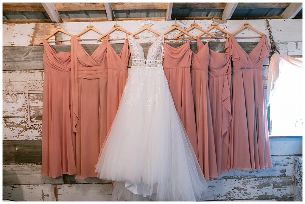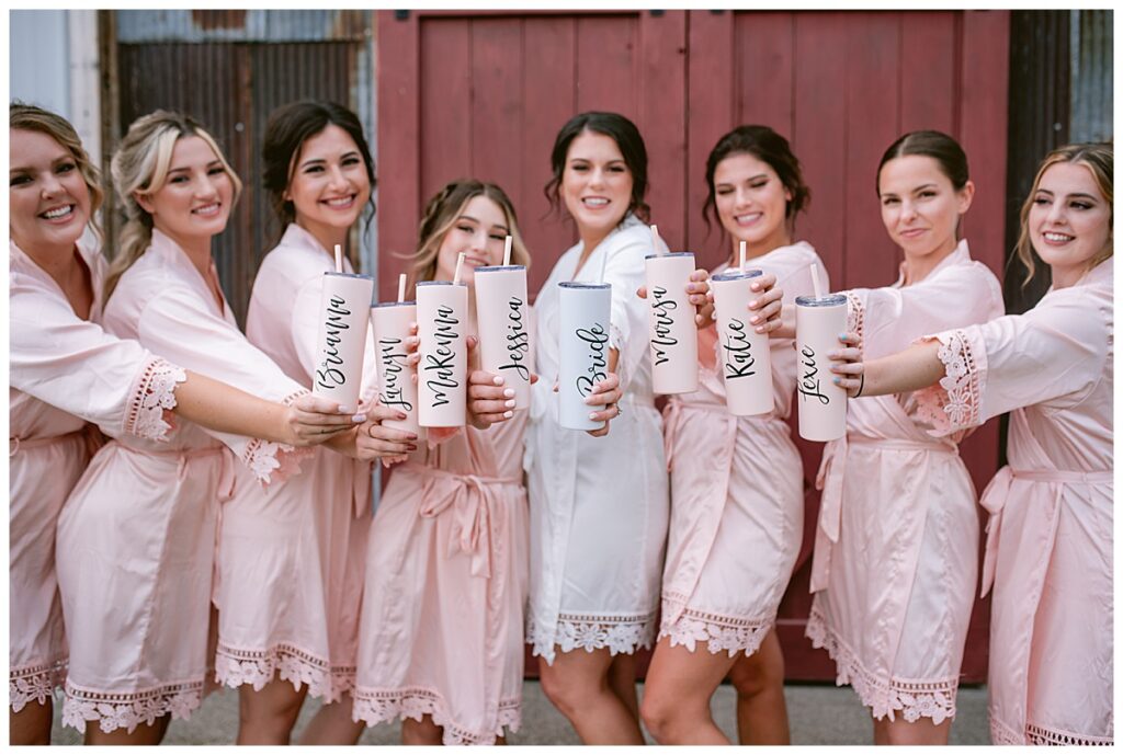 Their beautiful summer day began with hair and makeup done by the talented team of SM Hair and Makeup and kicked off the morning with mimosas and toasts in their match robes. They day continued as Madison slipped into her Justin Alexander dress from Our Shop Bridal. The bridesmaids wore beautiful desert coral dresses from David’s Bridal and were paired with colorful summer blooms put together by the incredible Jennifer Lageson. Their simple invitations from Magnet Street were the perfect foretaste of how the day would be. to Lane and his groomsmen sported grey suits from the Knights Chamber.