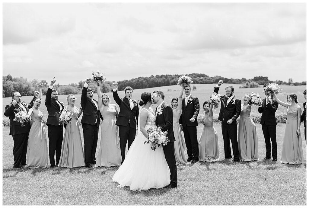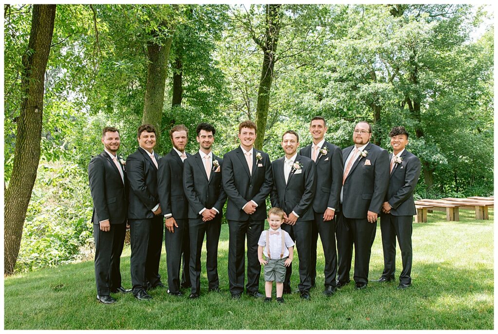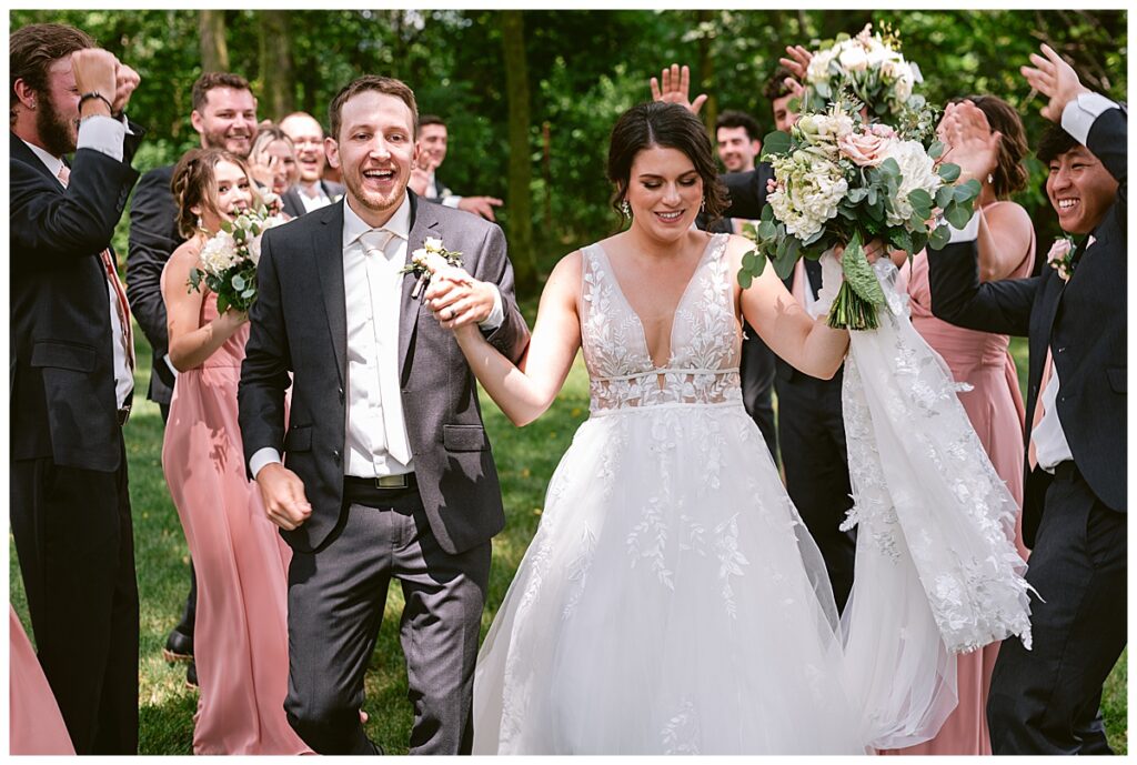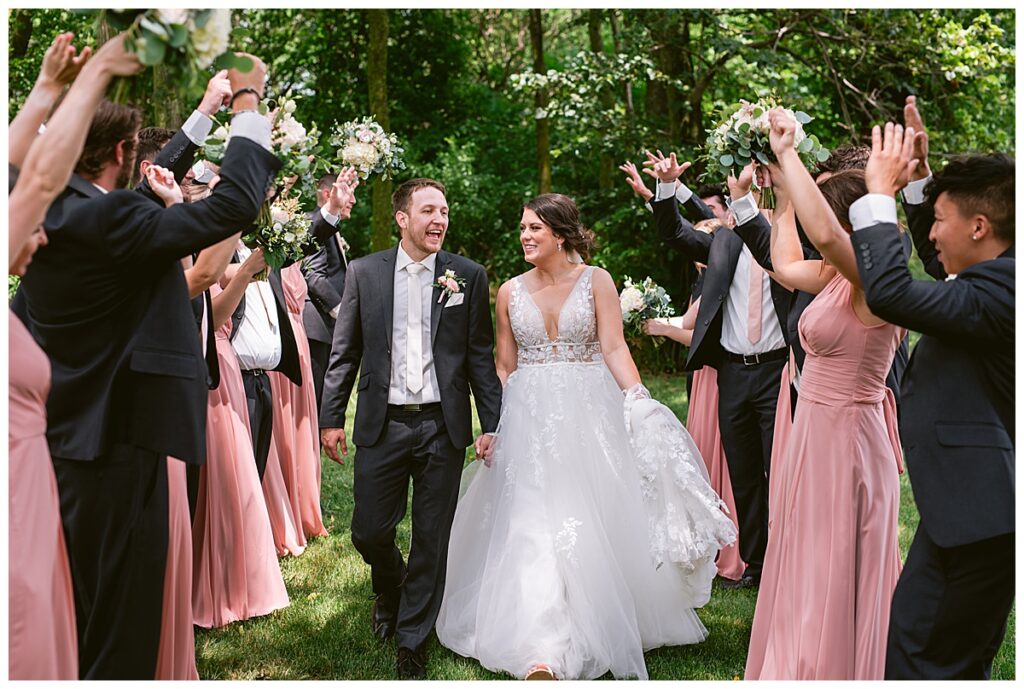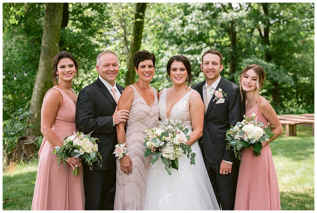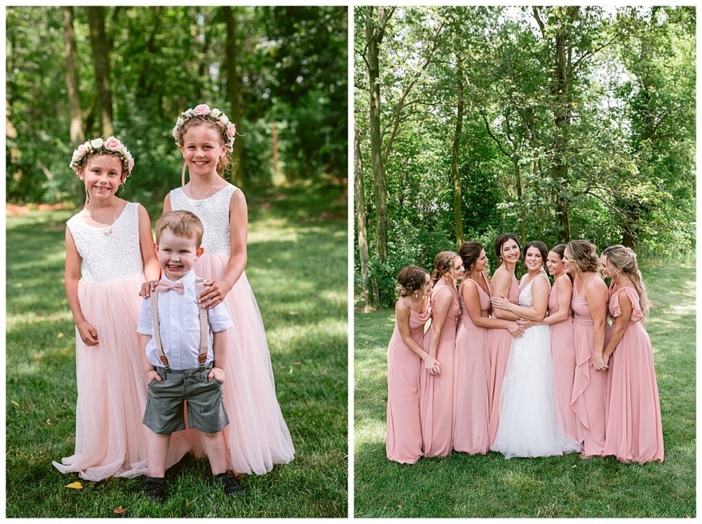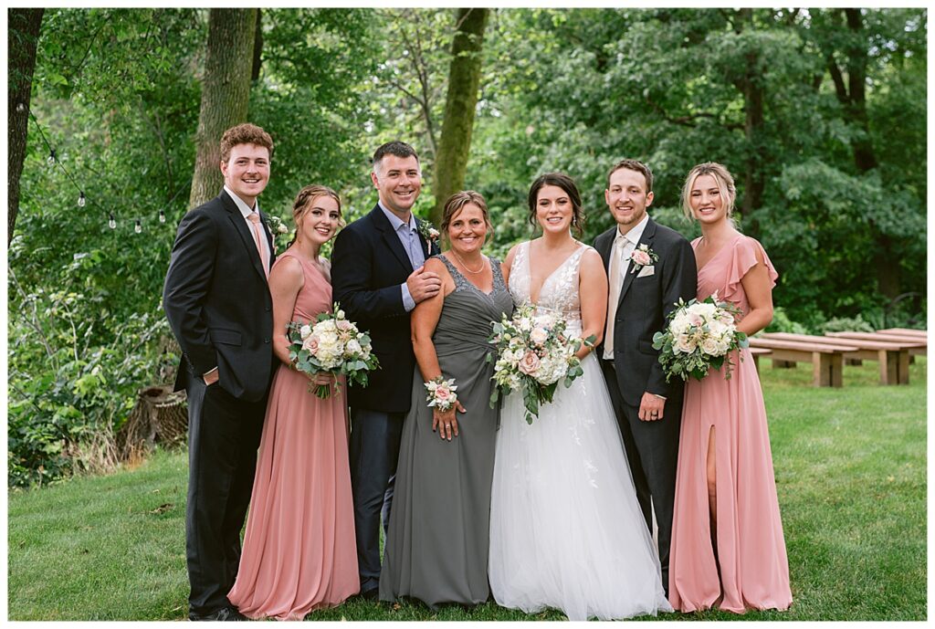 Their beautiful summer day began with hair and makeup done by the talented team of SM Hair and Makeup and kicked off the morning with mimosas and toasts in their match robes. They day continued as Madison slipped into her Justin Alexander dress from Our Shop Bridal. The bridesmaids wore beautiful desert coral dresses from David’s Bridal and were paired with colorful summer blooms put together by the incredible Jennifer Lageson. Their simple invitations from Magnet Street were the perfect foretaste of how the day would be. to Lane and his groomsmen sported grey suits from the Knights Chamber.