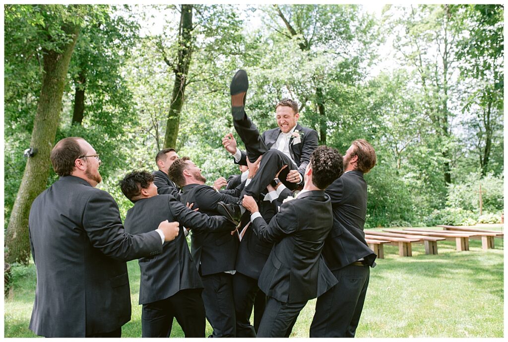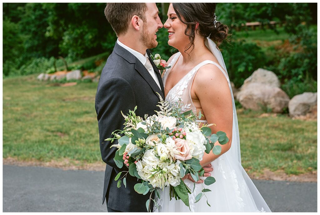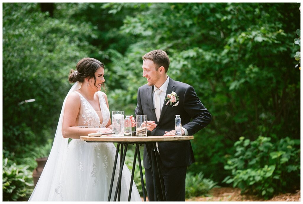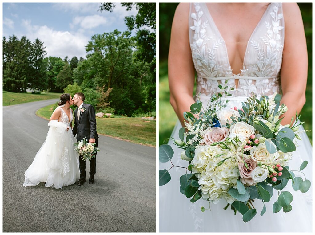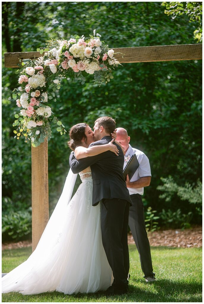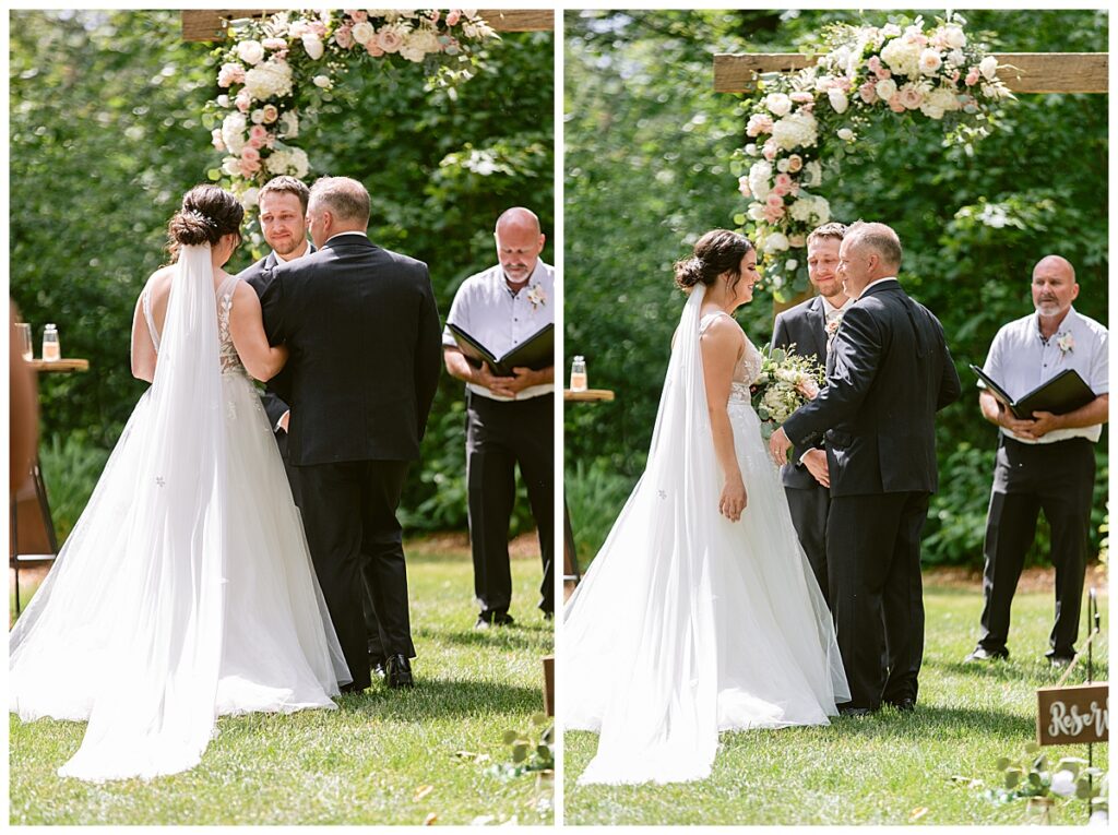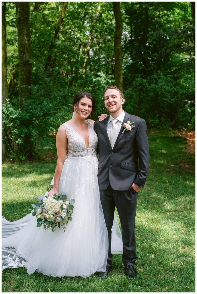 Their beautiful summer day began with hair and makeup done by the talented team of SM Hair and Makeup and kicked off the morning with mimosas and toasts in their match robes. They day continued as Madison slipped into her Justin Alexander dress from Our Shop Bridal. The bridesmaids wore beautiful desert coral dresses from David’s Bridal and were paired with colorful summer blooms put together by the incredible Jennifer Lageson. Their simple invitations from Magnet Street were the perfect foretaste of how the day would be. to Lane and his groomsmen sported grey suits from the Knights Chamber.