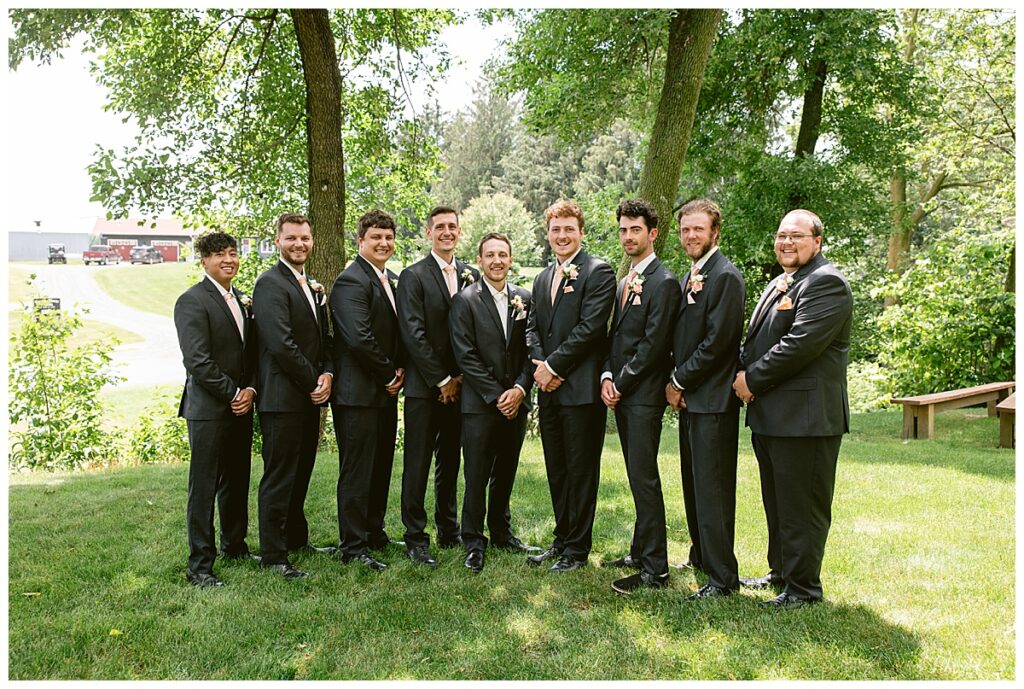 Ceremony & Reception:: Croix View Farm // Florist: Jennifer Lageson // Wedding dress and where purchased:: Justin Alexander dress from Our Shop Bridal // Hair & Make-up: SM Hair & Makeup // Bridesmaid Dresses: Desert Coral in various styles from David’s Bridal // Men’s Ware: Charcoal grey suits Knights Chamber // Stationery: Magnet Street // Caterer: We Cater To You // Baker:: We Cater To You // DJ:: Studio Veil // Video: KAS Films // Bride’s Shoes: tbd // Photo booth: Studio Veil // Rings: Shane Co.