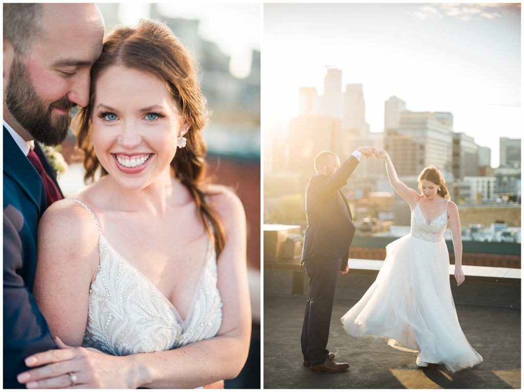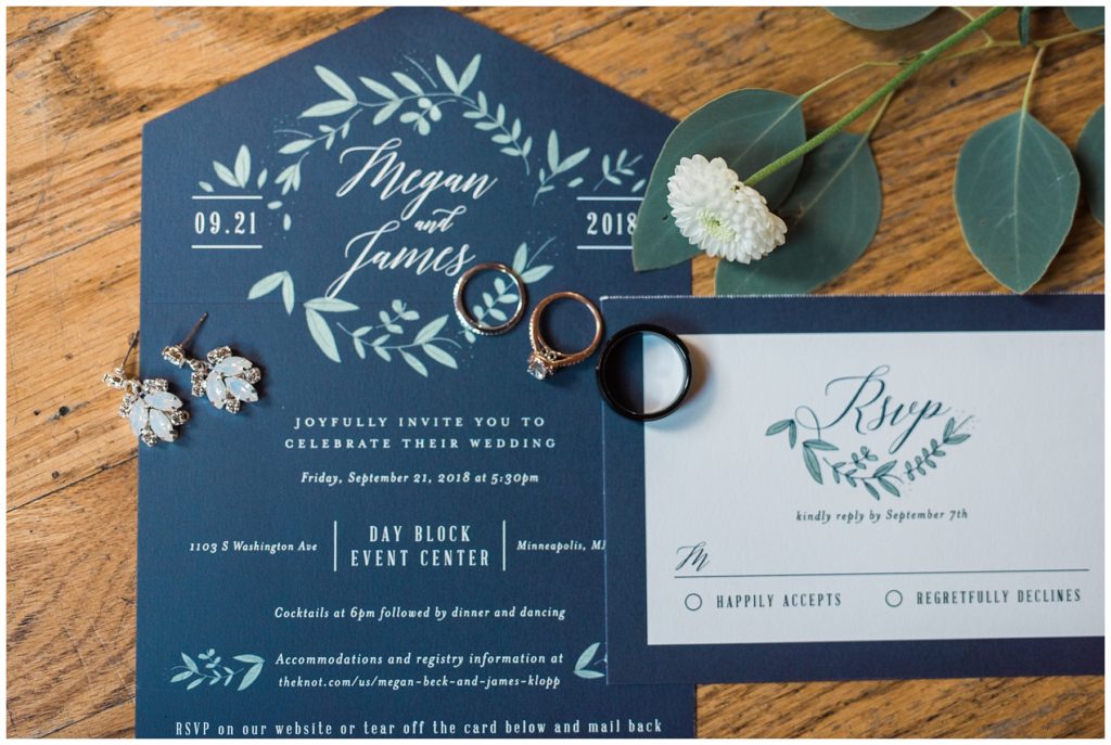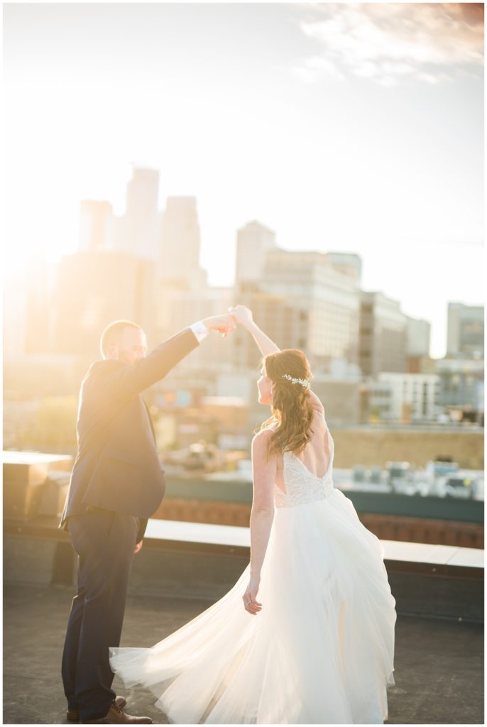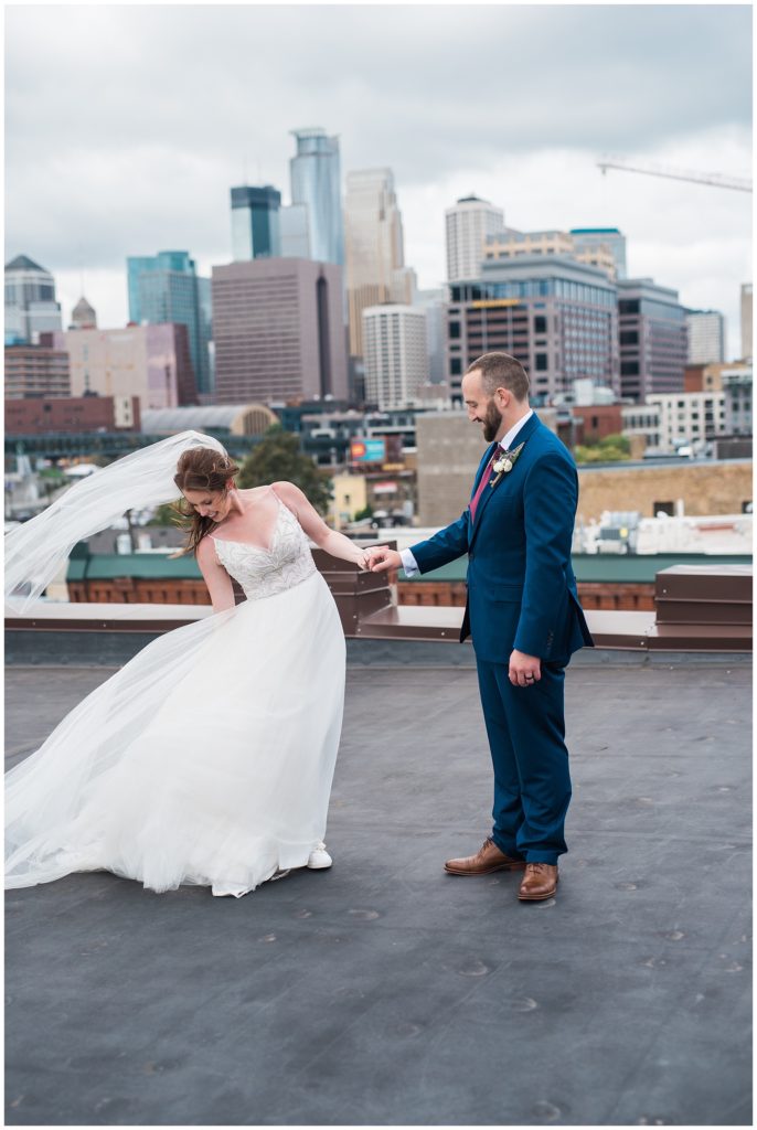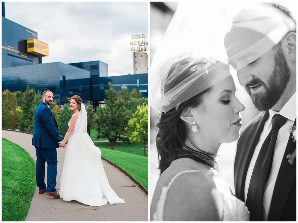 Megan and James are so laid back that they wanted their guests and friends to feel the same way on their wedding day. They choose to do a Friday wedding at Day Block Event Center right in the heart of the city they love. Wandering around Minneapolis on a beautiful crisp September day, they were able to capture all the love they have for one another and their friends. Photos were done in Gold Metal Park, the Gutherie and around the Mill City area.