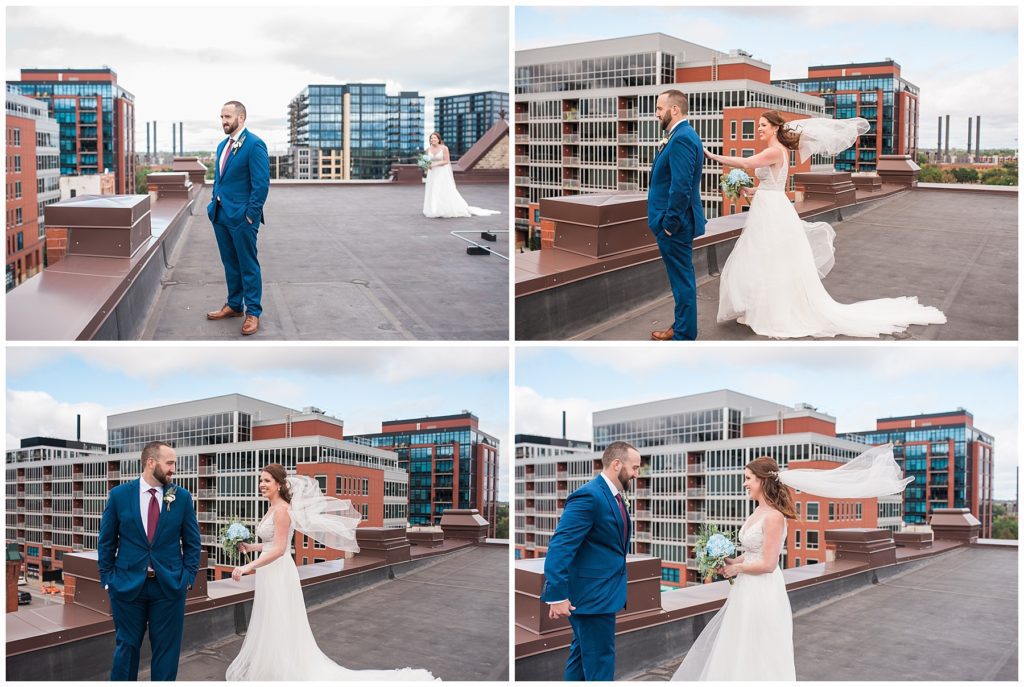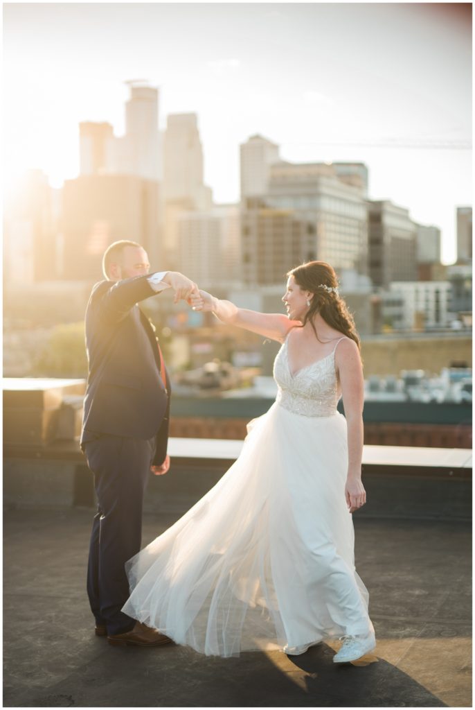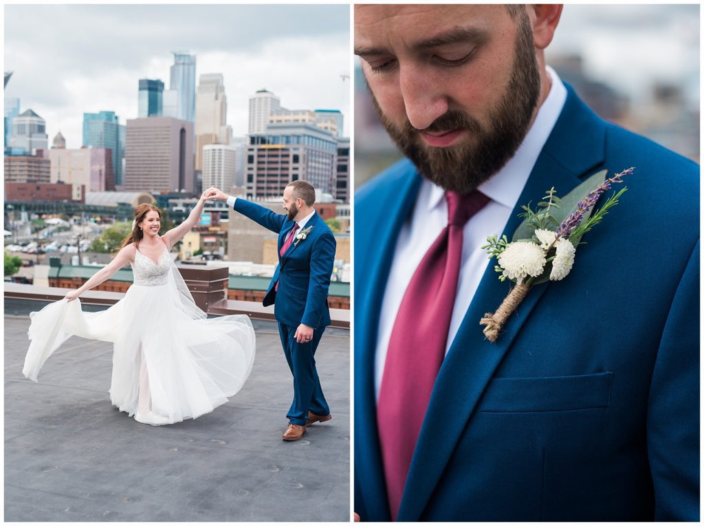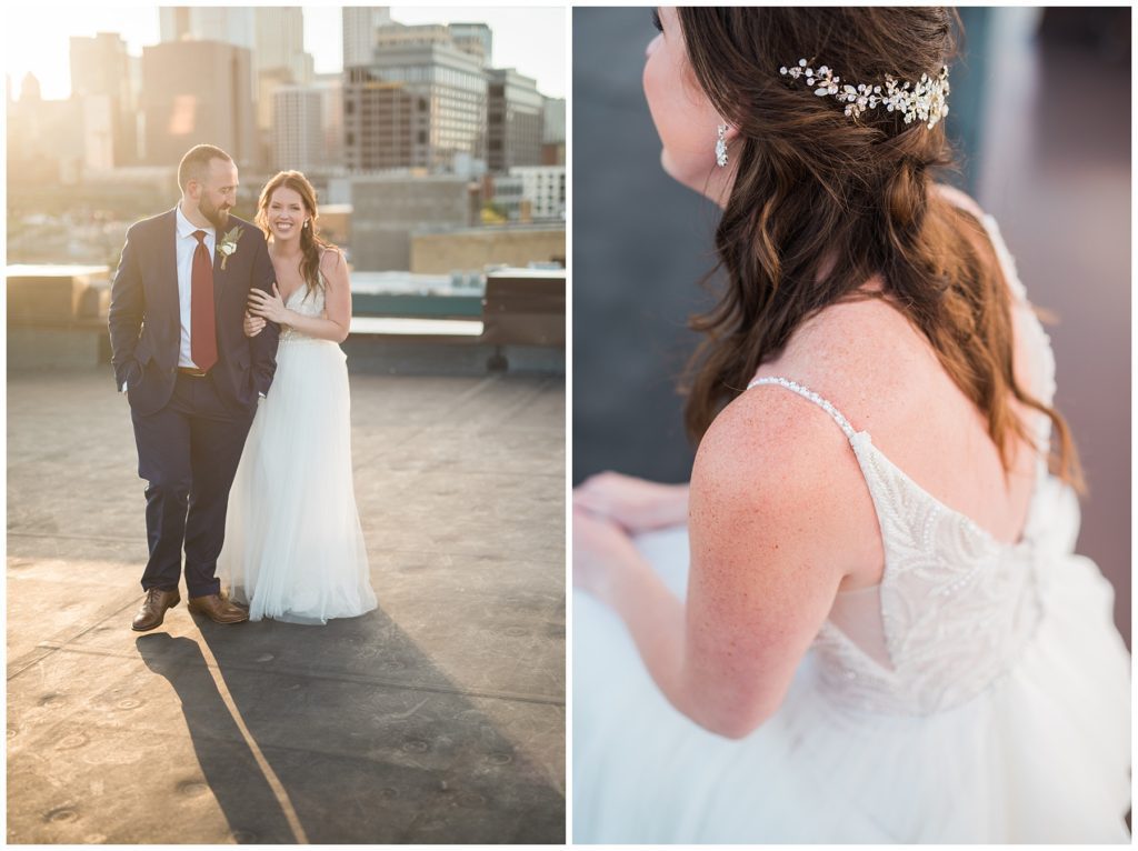 Megan and James are so laid back that they wanted their guests and friends to feel the same way on their wedding day. They choose to do a Friday wedding at Day Block Event Center right in the heart of the city they love. Wandering around Minneapolis on a beautiful crisp September day, they were able to capture all the love they have for one another and their friends. Photos were done in Gold Metal Park, the Gutherie and around the Mill City area.