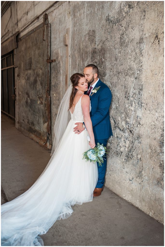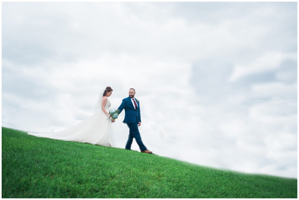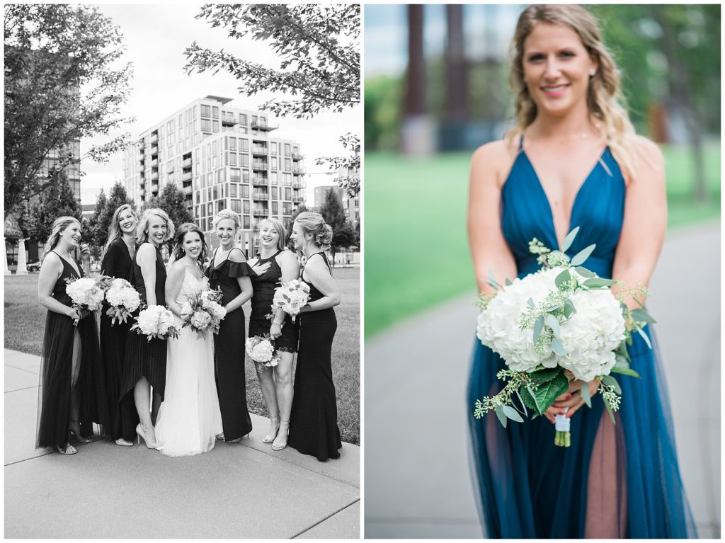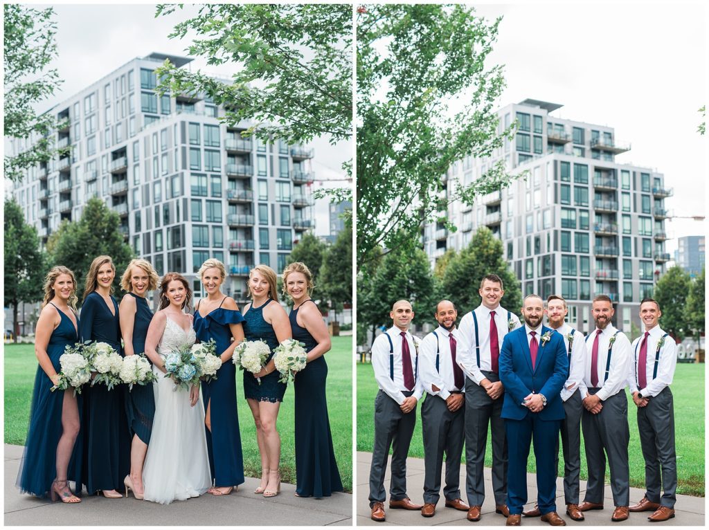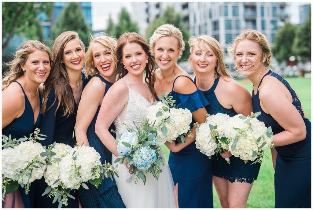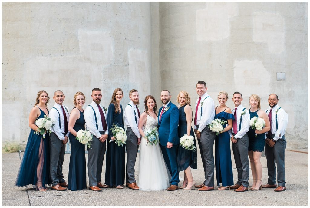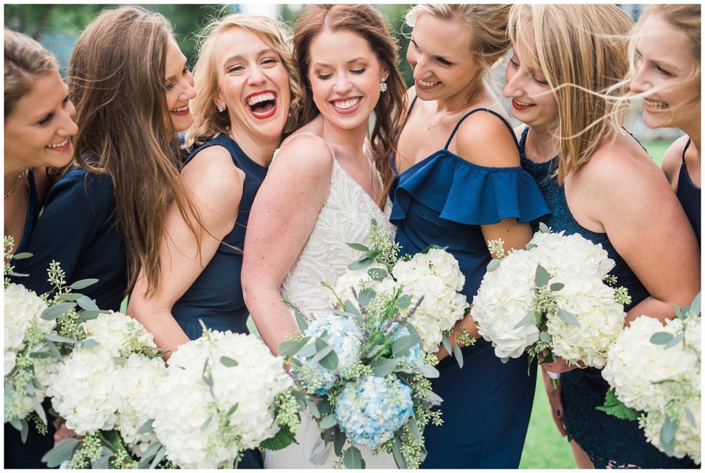 Megan’s Maggie Sottero dress from the Wedding Shoppe paired perfectly with the navy colored bridesmaid dresses that each bridesmaid picked out to wear that day.