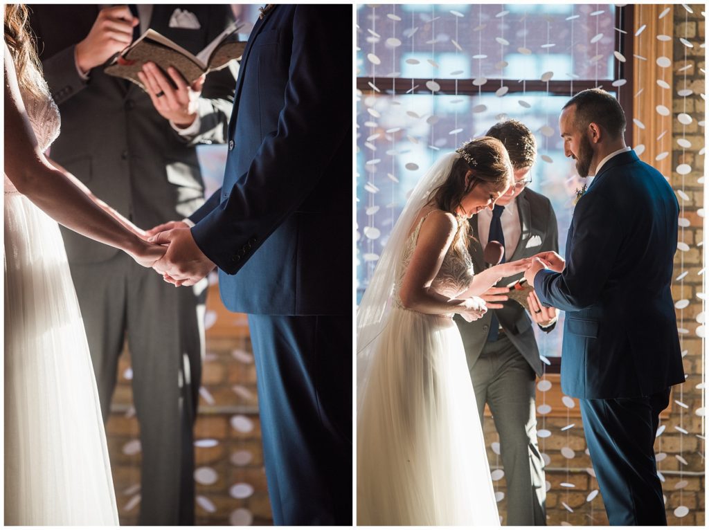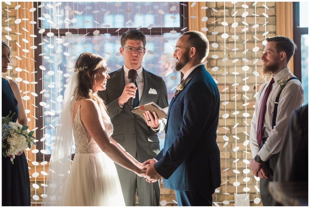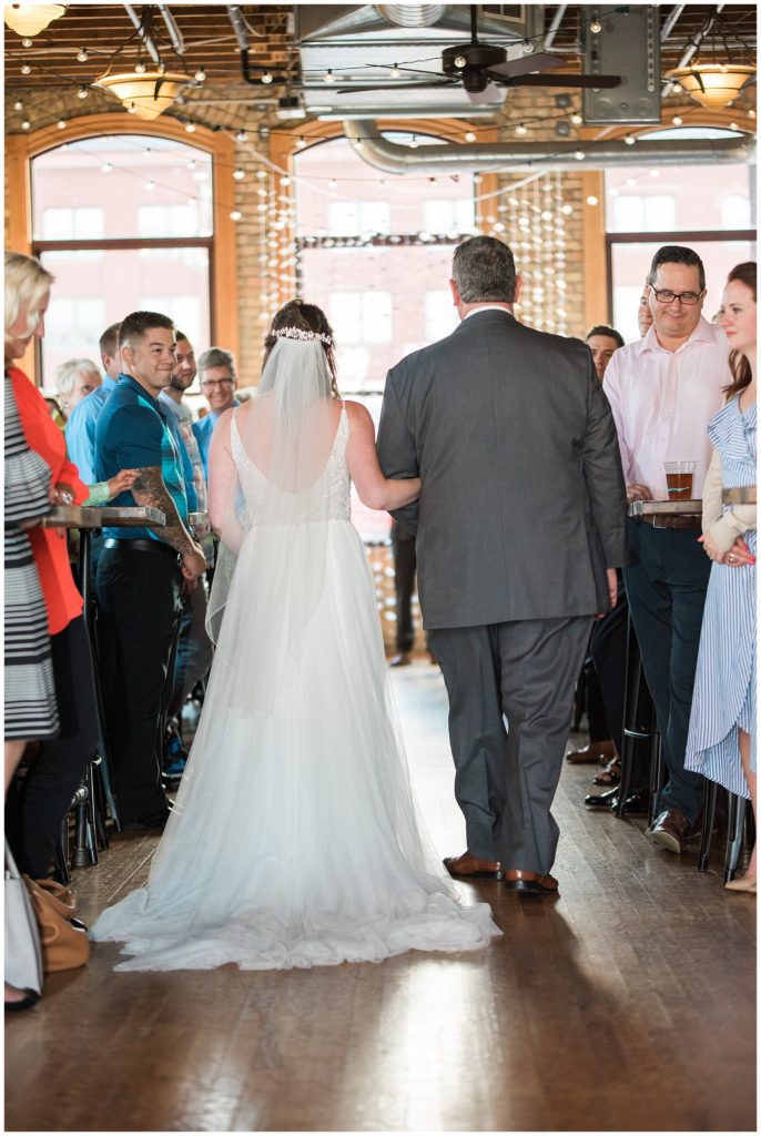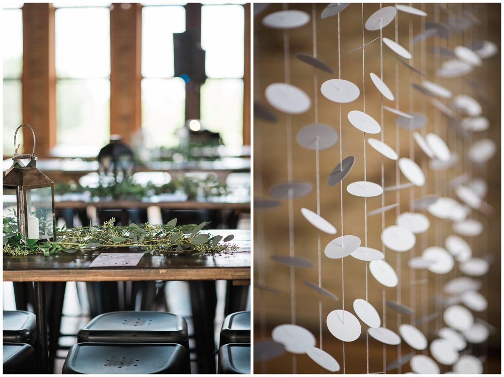 Megan of Megan Mary Events helped the couple plan their amazing day and set up all their DIY decor in the event space, which was incredible! The bride even made two incredible instillations by hand that acted as a backdrop for their wedding ceremony.