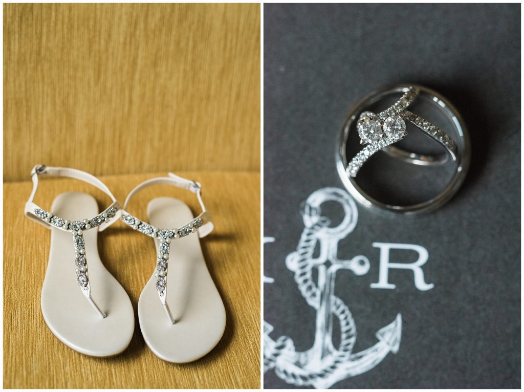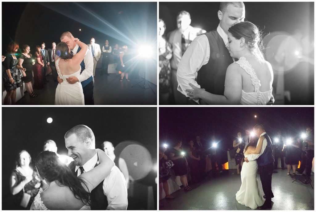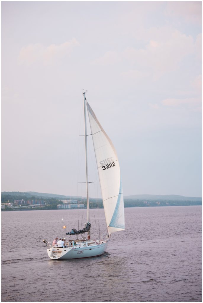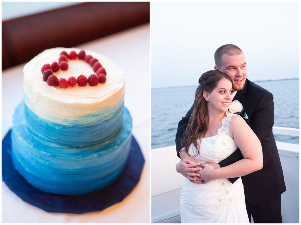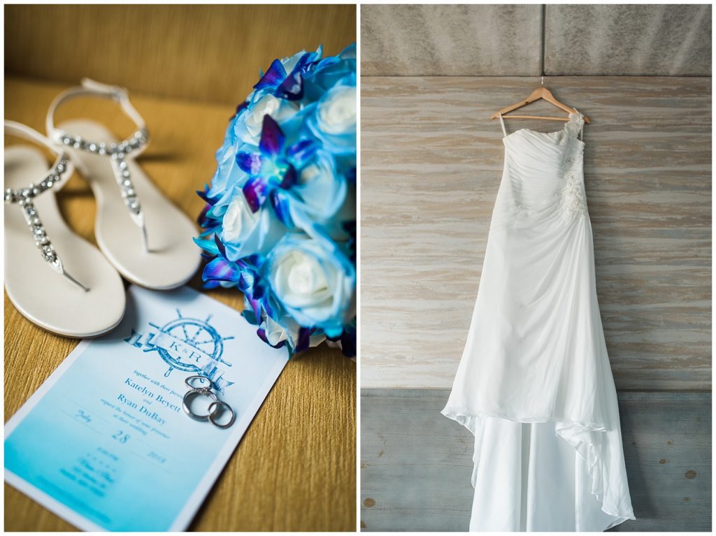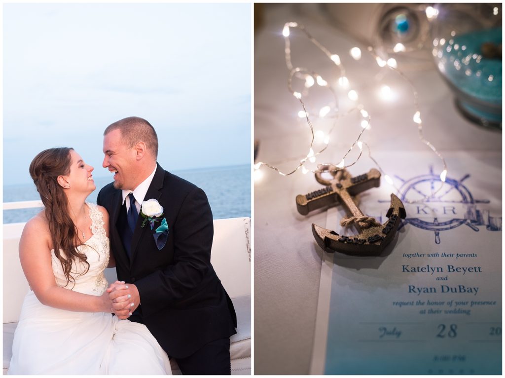 Katelyn’s elegant ivory David’s Bridal gown was paired perfectly with Ryan’s black suit and navy tie. Their white and blue florals from Main Floral were a perfect pop of color against her dress and fit the nautical theme she was going for. Katelyn’s unique diamond ring that Ryan had custom made and her sandals were perfect for walking along Duluth’s rocky shore. Fitgers Salon and Spa created a beautiful up-do for Katelyn and her make up was stunning. Guests relaxed and enjoyed the beautiful scenery while crusing Lake Superior on the Vista Fleet Queen while Bellisio’s brought in incredible food and How Sweet it is Cakes provided cakes for dessert. Guests watched as Katelyn and Ryan had their first dance under an eclipse moon and then enjoyed time chatting with friends and family.
