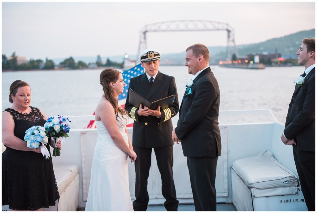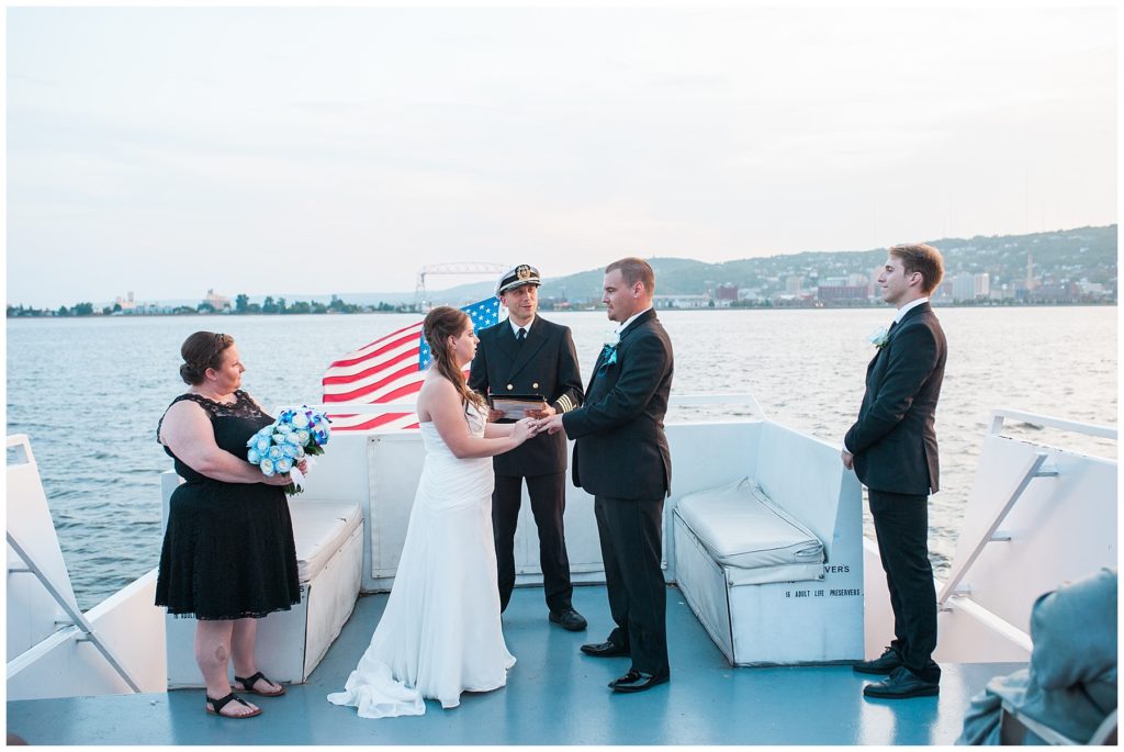 Vendors for the day included::// Ceremony and Reception:: Vista Fleet Queen- Duluth // Florist:: Main Floral // Wedding Dress:: David’s Bridal// Hair and Make up:: Fitgers Salon and Spa // Men’s Ware:: Men’s Warehouse // Caterer:: Bellisio’s// Baker:: How Sweet it is Cakes //