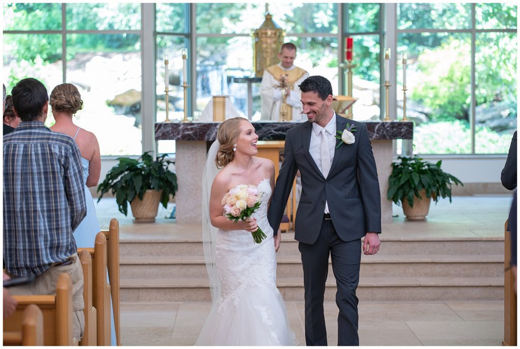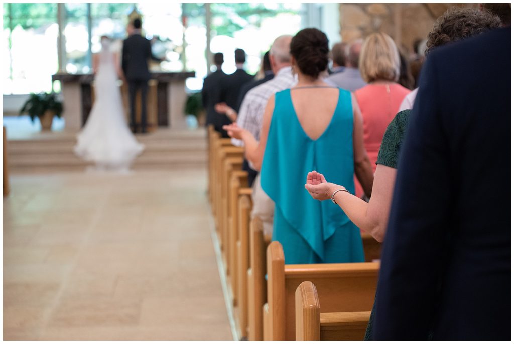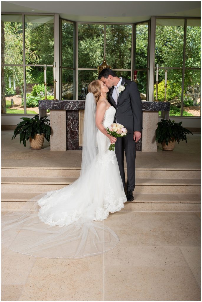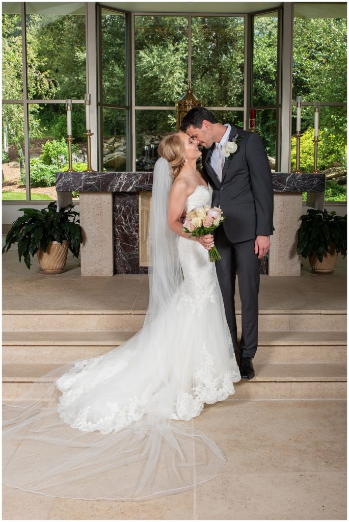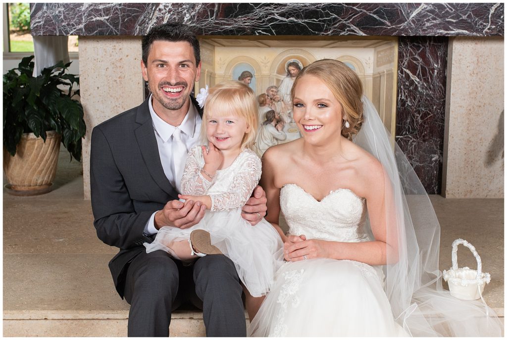 Because of the July heat (almost 90 degrees!) we headed indoors for formal alter photos. I loved the green background and the beautiful natural light in the sanctuary.