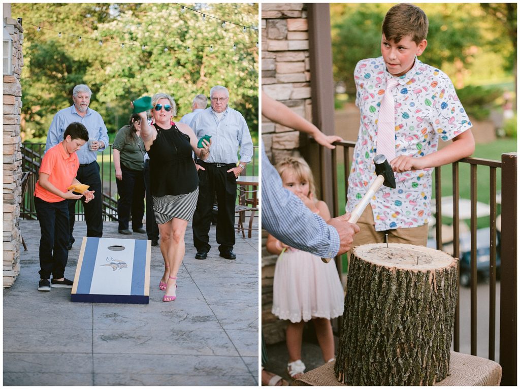 Bean bags with Bri and Nick’s teams (Vikings and Packers) was held on the patio while games of Hammerschlagen went on for all the guests proving to be it’s own source of entertainment!