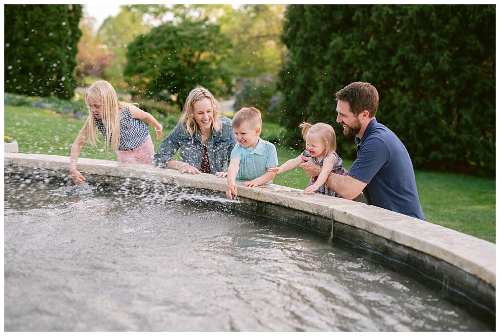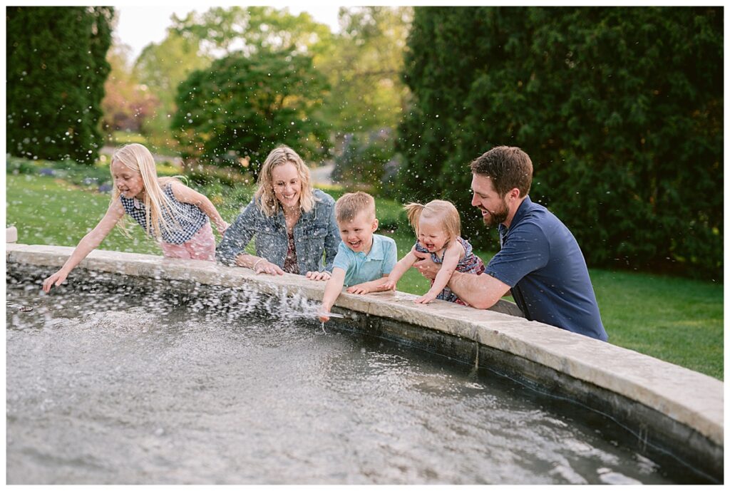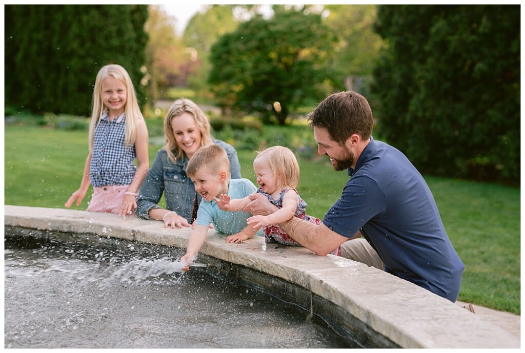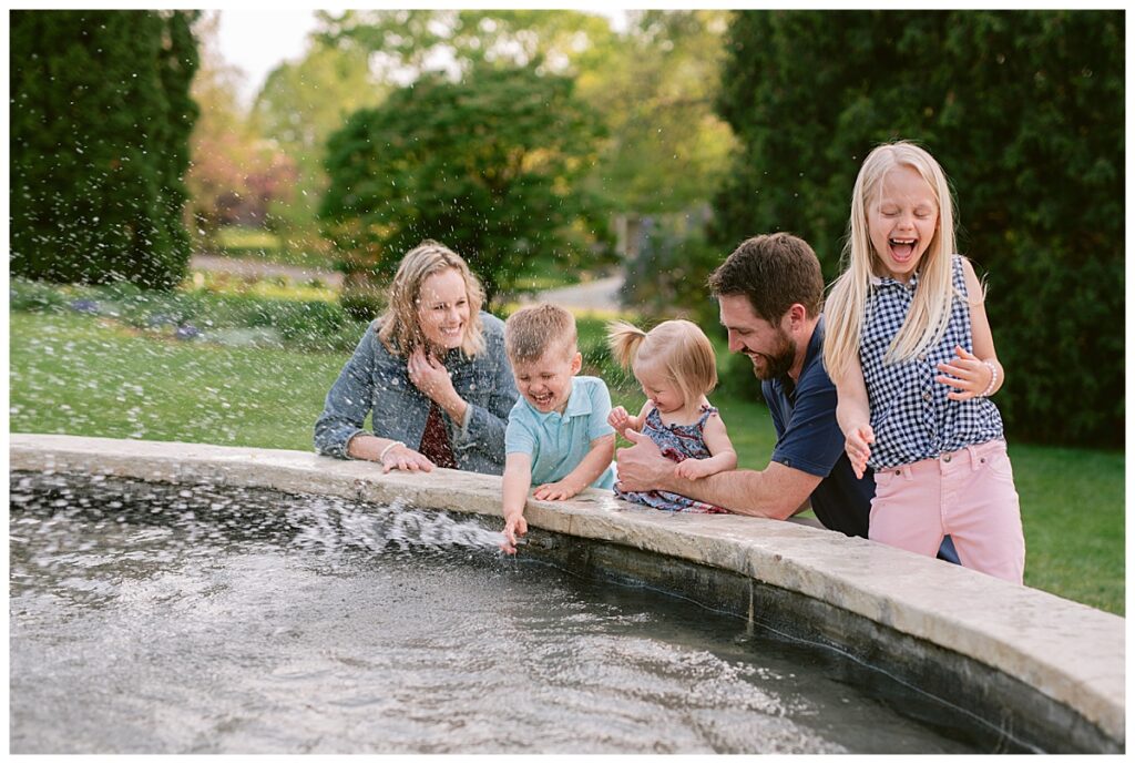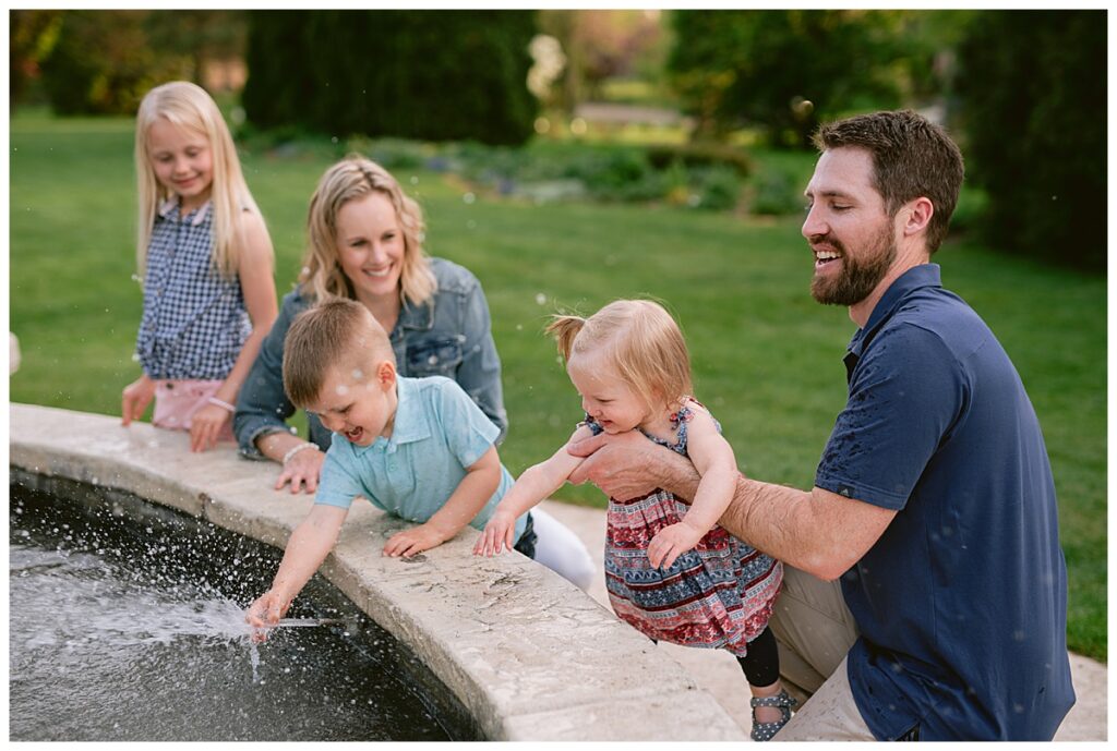 Water and kids. It always brings the best of smiles and the messiest of clothing! Seeing Laura and her family this spring was a great joy! We had a little trouble keeping her distracted toddler away from the water, but we managed for a time! I was able to capture the Hegland’s in the woods and around all the beautiful blooms, but eventually we made our way over to the water fountain and it was only then that all the real smile smiles came out. It’s amazing what water will do! I love seeing families like Laura‘s over the years, and playing in the water with them!