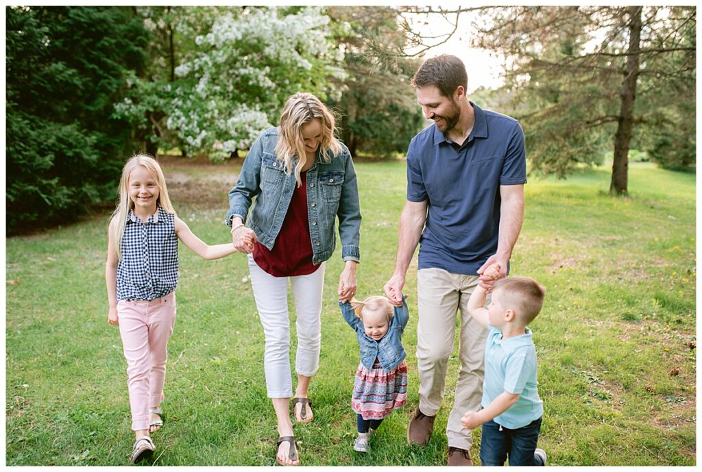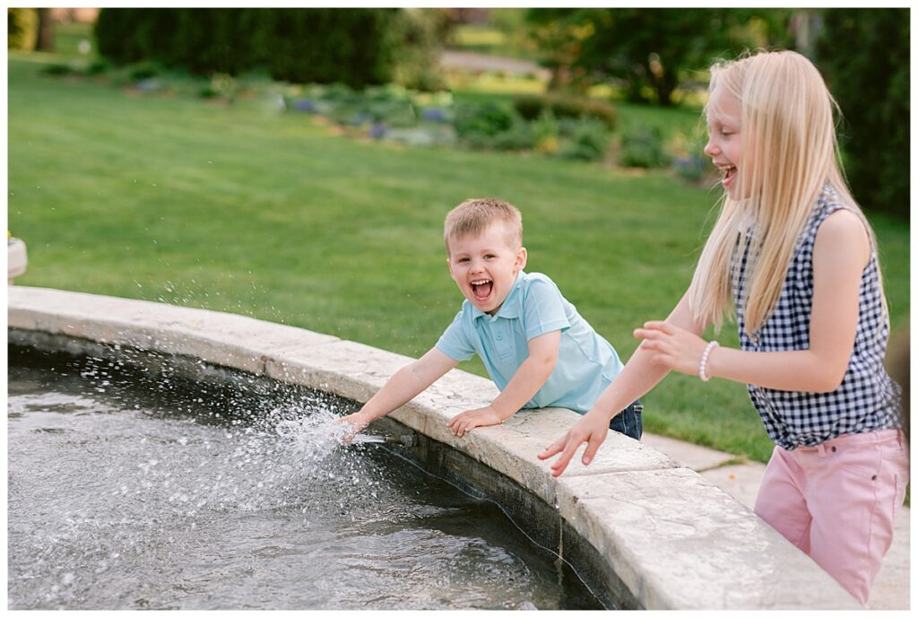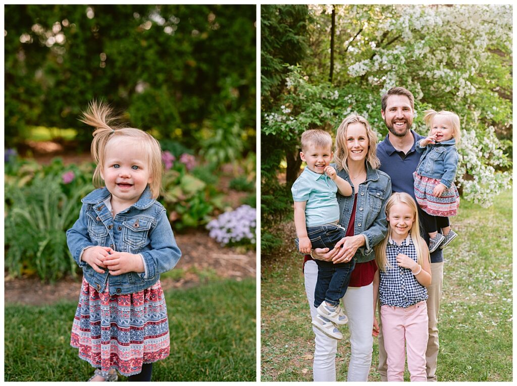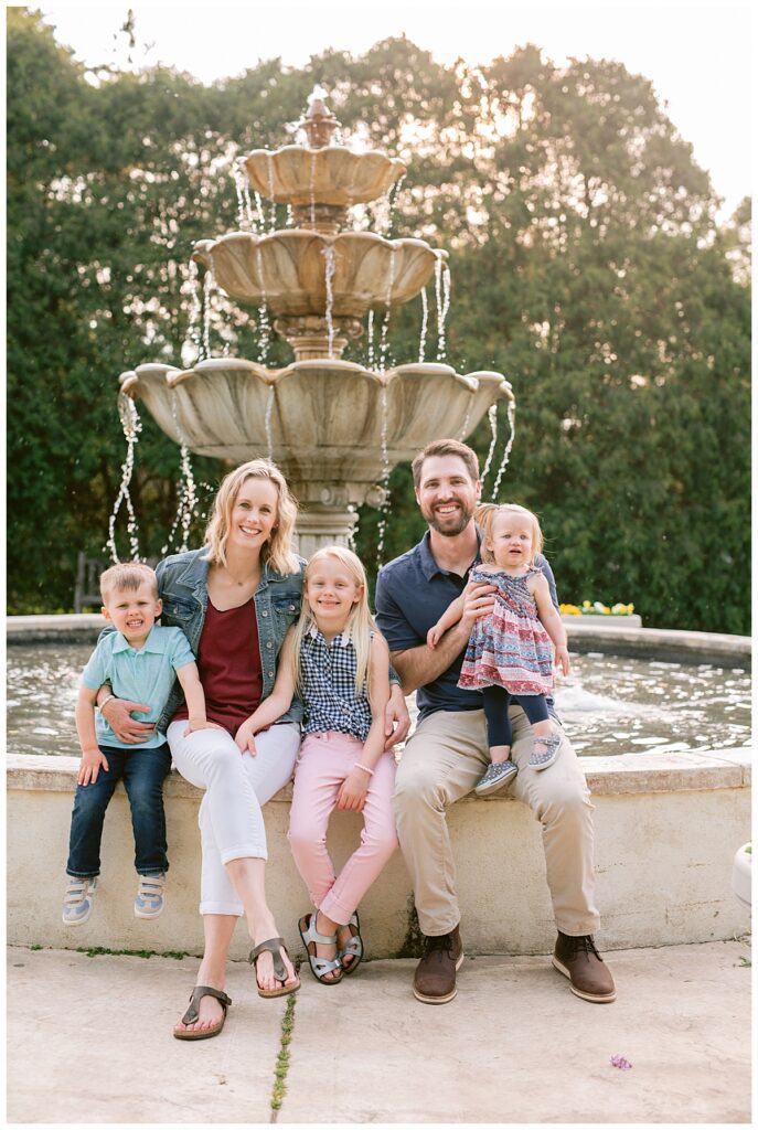 Water and kids. It always brings the best of smiles and the messiest of clothing! Seeing Laura and her family this spring was a great joy! We had a little trouble keeping her distracted toddler away from the water, but we managed for a time! I was able to capture the Hegland’s in the woods and around all the beautiful blooms, but eventually we made our way over to the water fountain and it was only then that all the real smile smiles came out. It’s amazing what water will do! I love seeing families like Laura‘s over the years, and playing in the water with them!