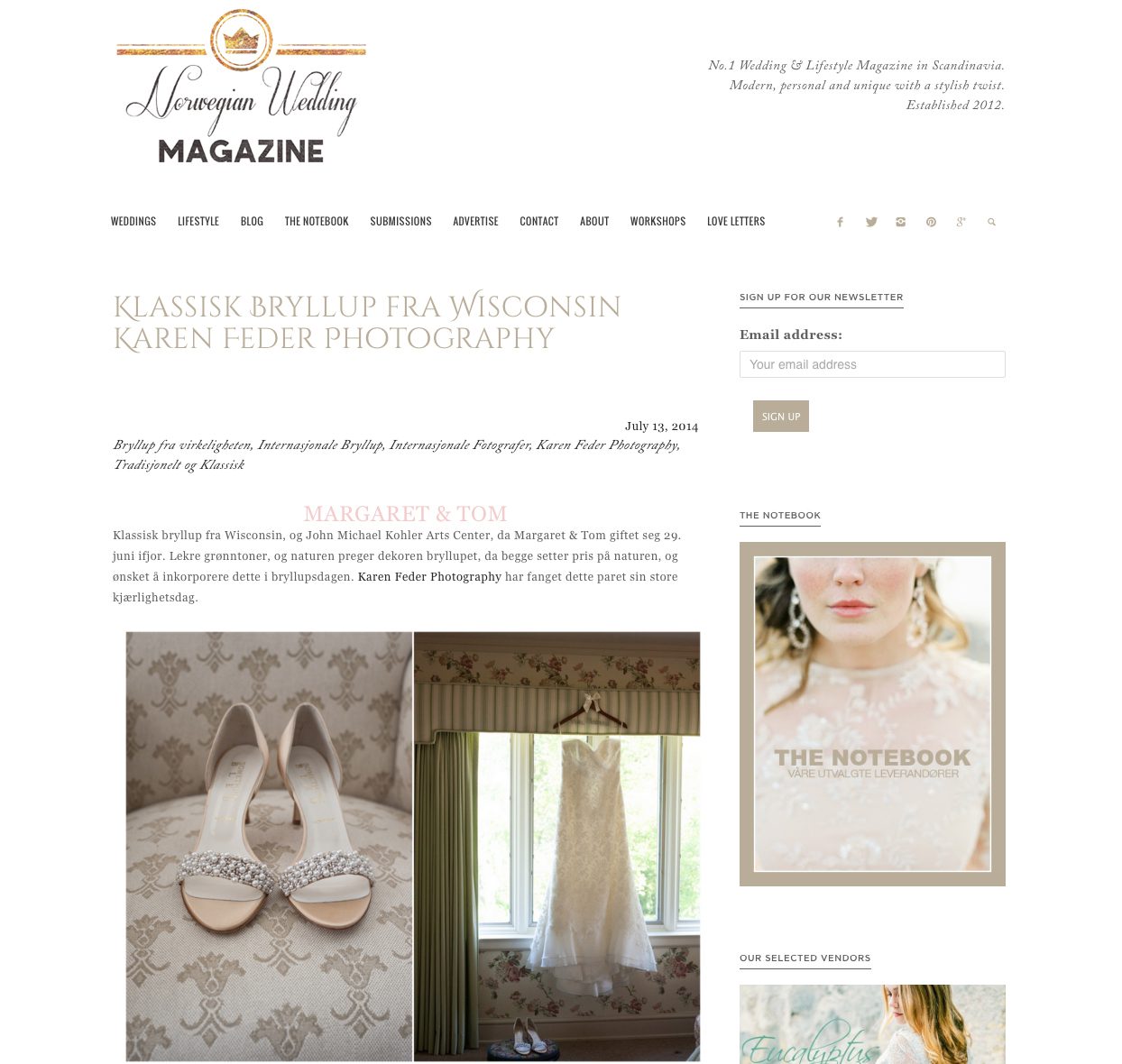 Margaret & Tom on the Norwegian Wedding Magazine