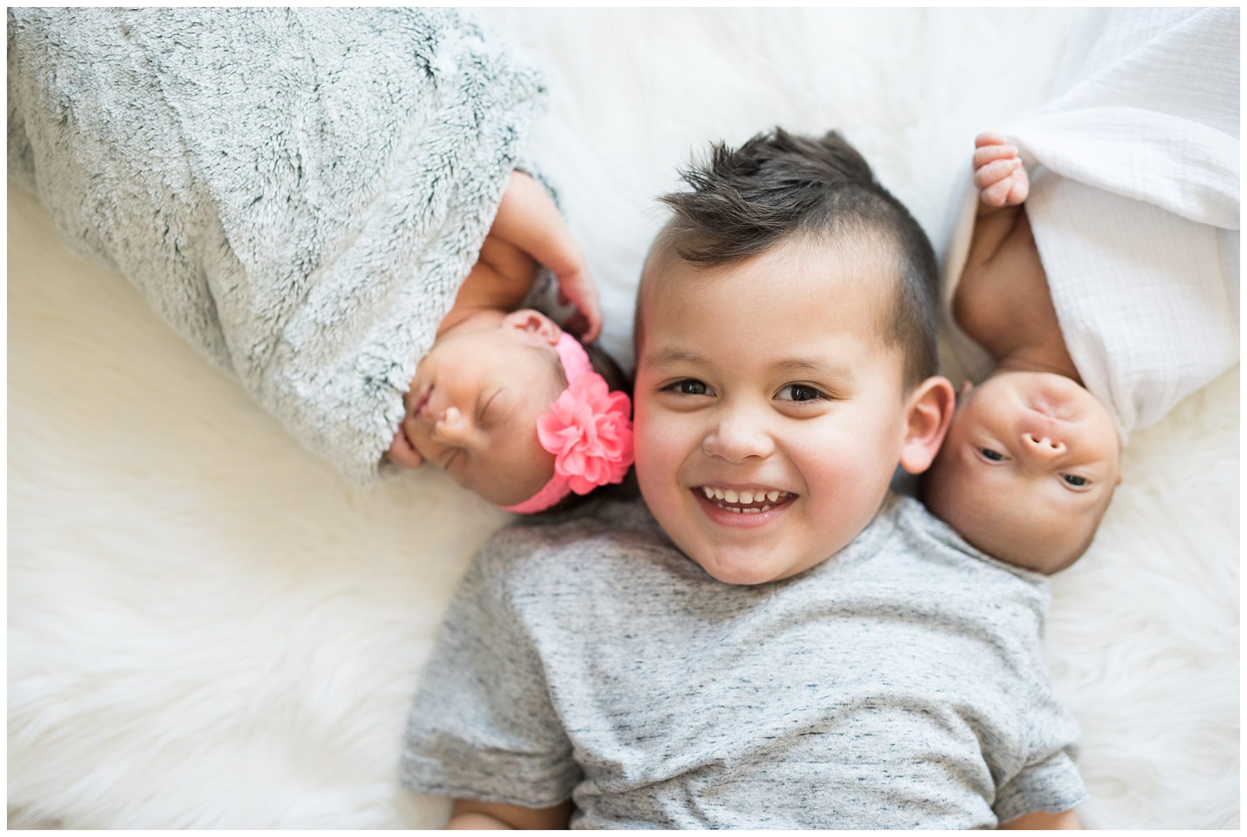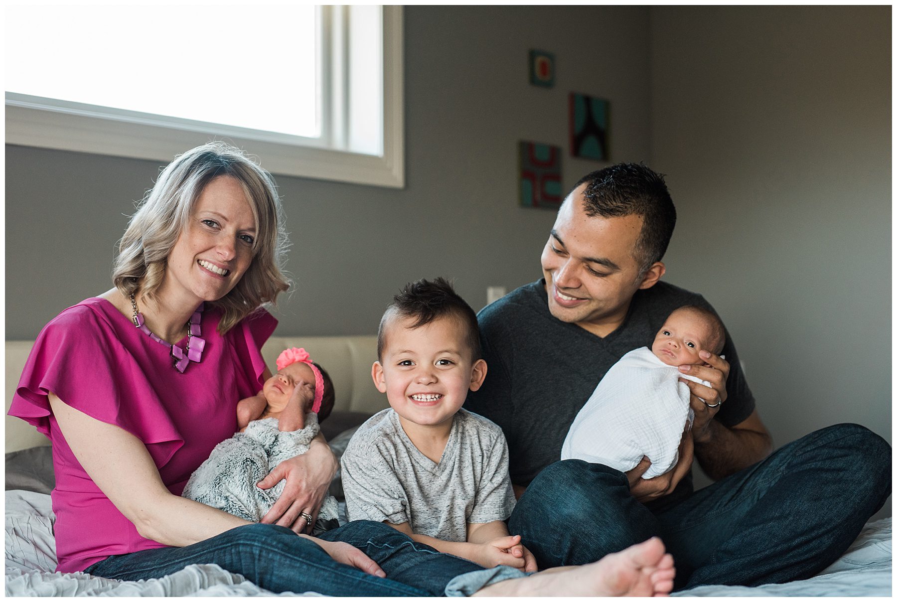 Going from one child to two can be a huge life transformation, but what about going from one to three?!  The sweet Fernandez family of Plymouth did just that.  My heart was absolutely melting as these two little ones were complete angels.  Hardly making a peep, sleeping throughout the entire session and still tiny and scrunched made the session even more enjoyable. Their parents and big brother welcomed them with joy, and we even did a little bed-bouncing to keep the session fun! All the sweet noises, movements, and smells made me appreciate even more the newness of life and how precious it is. Congratulations Michelle and Hector, I can not wait to see you as parents of three!