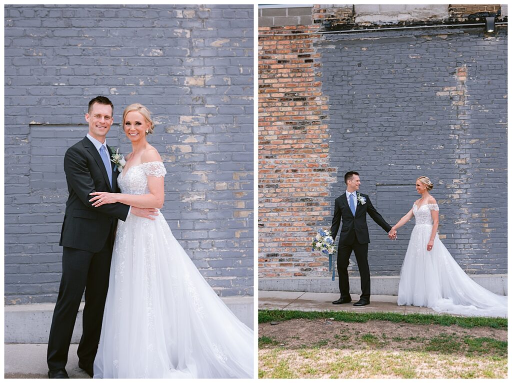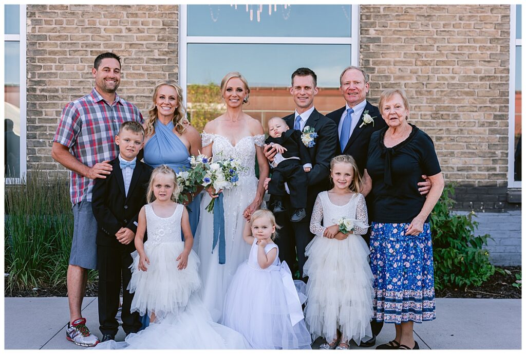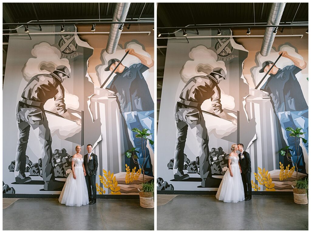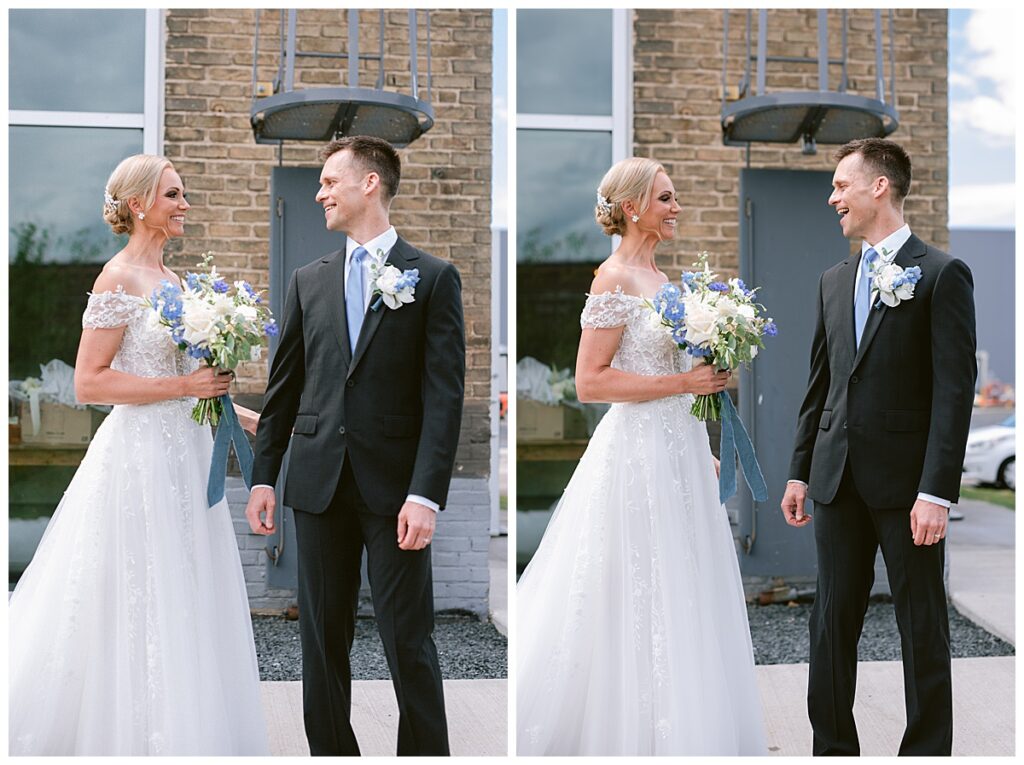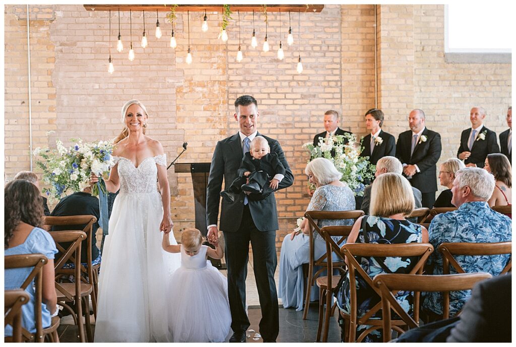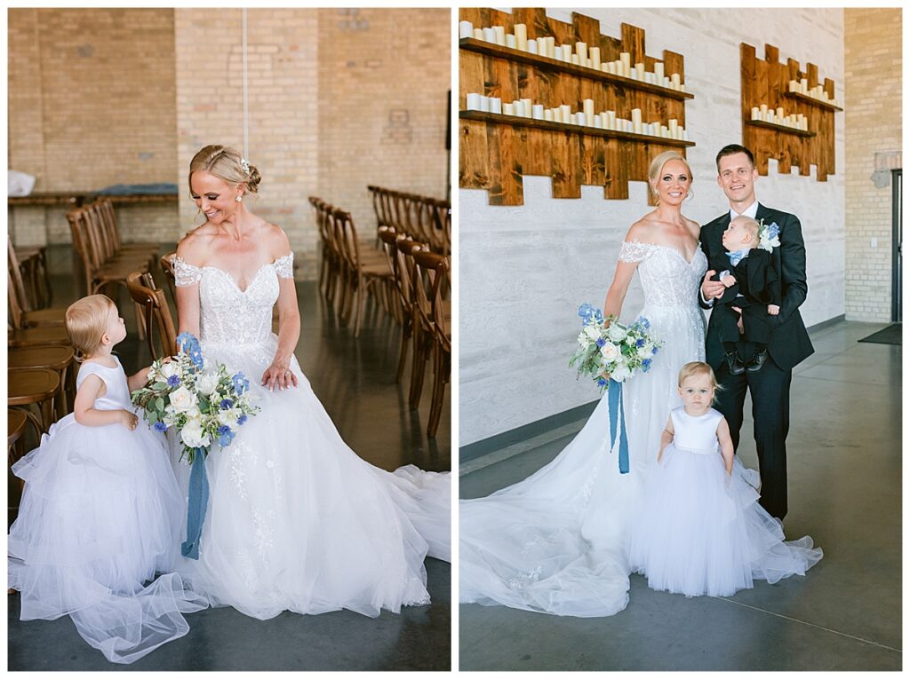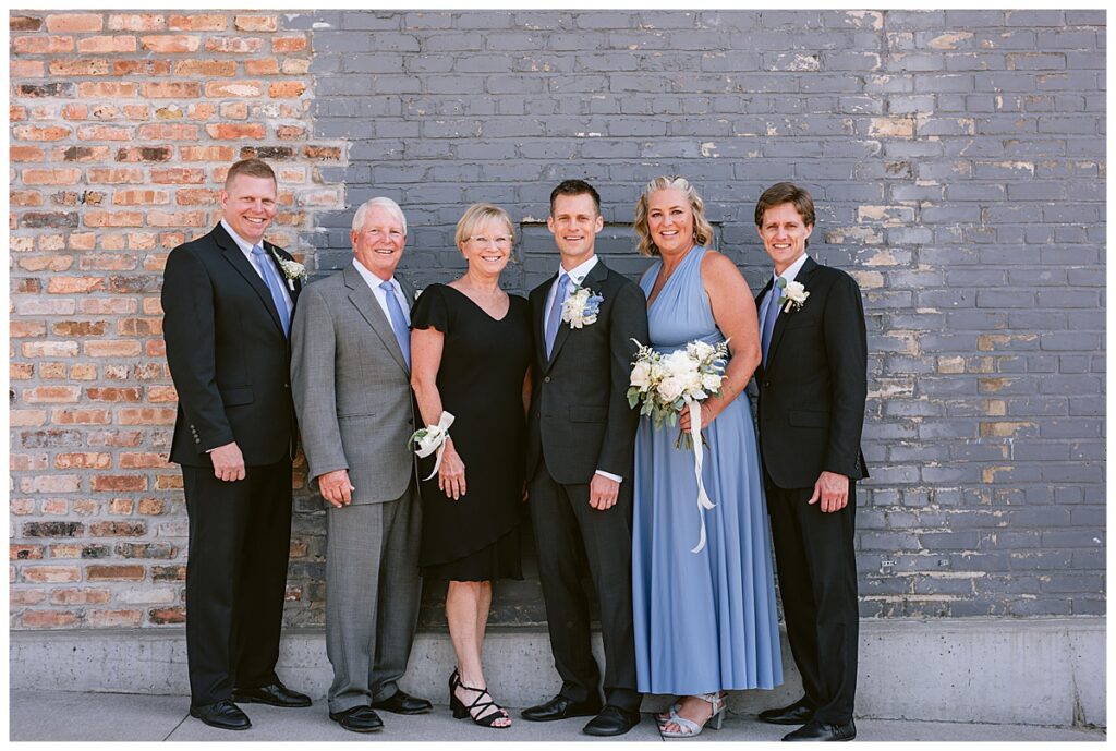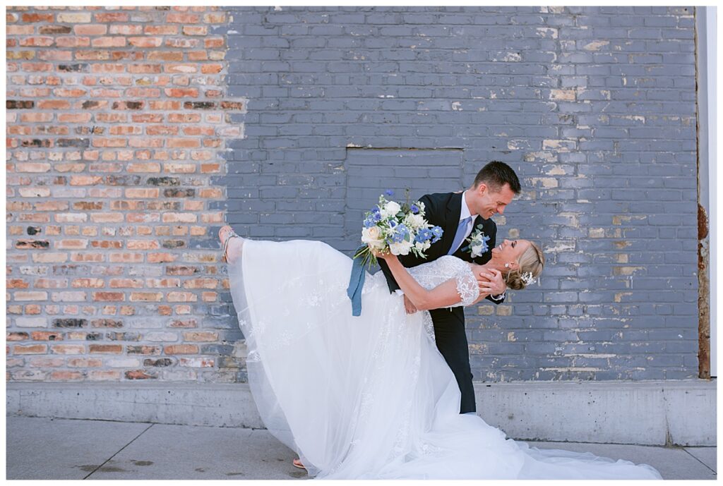 Suzie and Scott chose to host their wedding at Forgotten Star Brewing Co in Fridley, MN. They wanted to make the holiday weekend one that guests could relax and enjoy while still celebrating with them. They began the day getting ready at the Brewery for thir first look with each other and then their kids. Suzie looked stunning in her Zinnia dress from Annika Bridal and Molly from Willow Salon gave her the most beautiful updo. Amy Rachael highlighted Suzie’s already beautiful face with the perfect make-up. Suzie’s bridesmaids all wore their periwnkle dress in different styles created by Infinity Dress and the homegrown flowers of peooey’s, cornflowers and greens Ink ‘N Flower put together were perfect for Suzie and Scott’s relaxed July day. We utulized the historic industrial indoor space for photos both of the brewery and the murals. We then headed outdoors for more photos outside of the space and added family and wedding party.