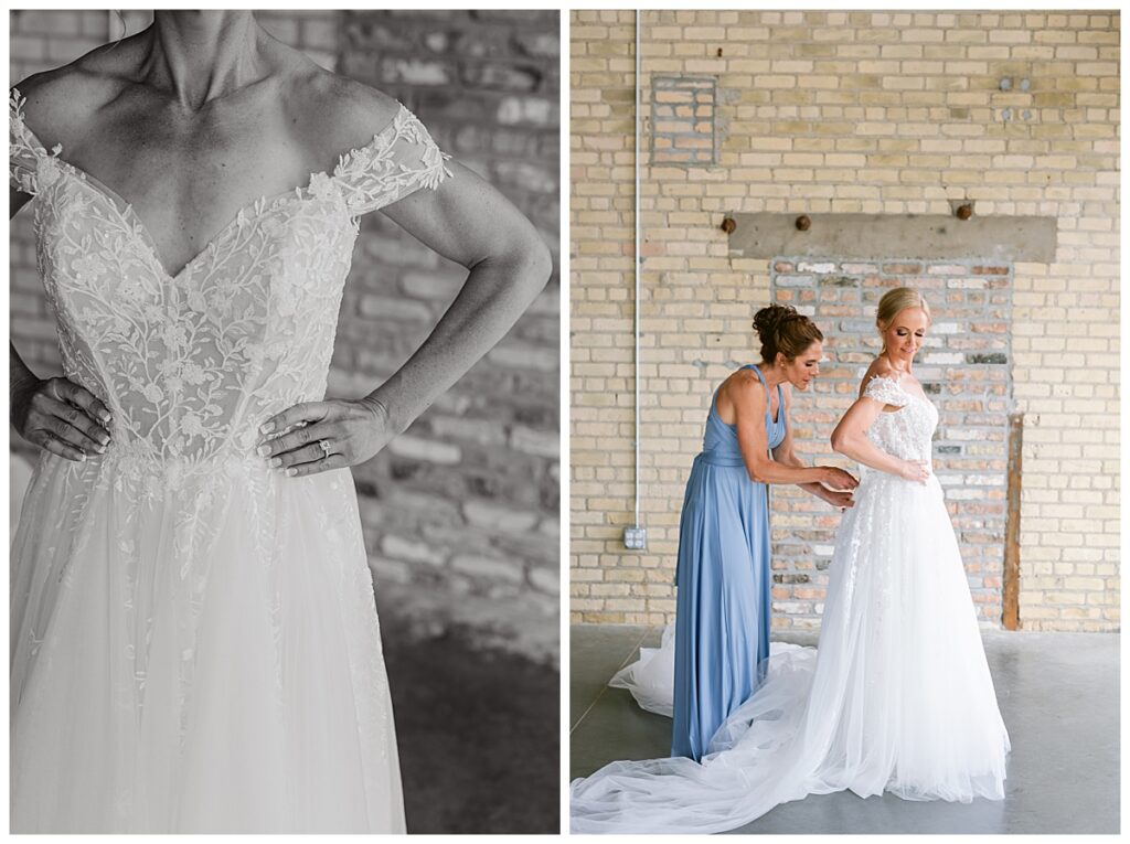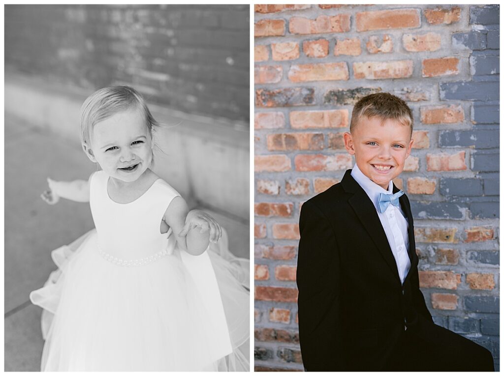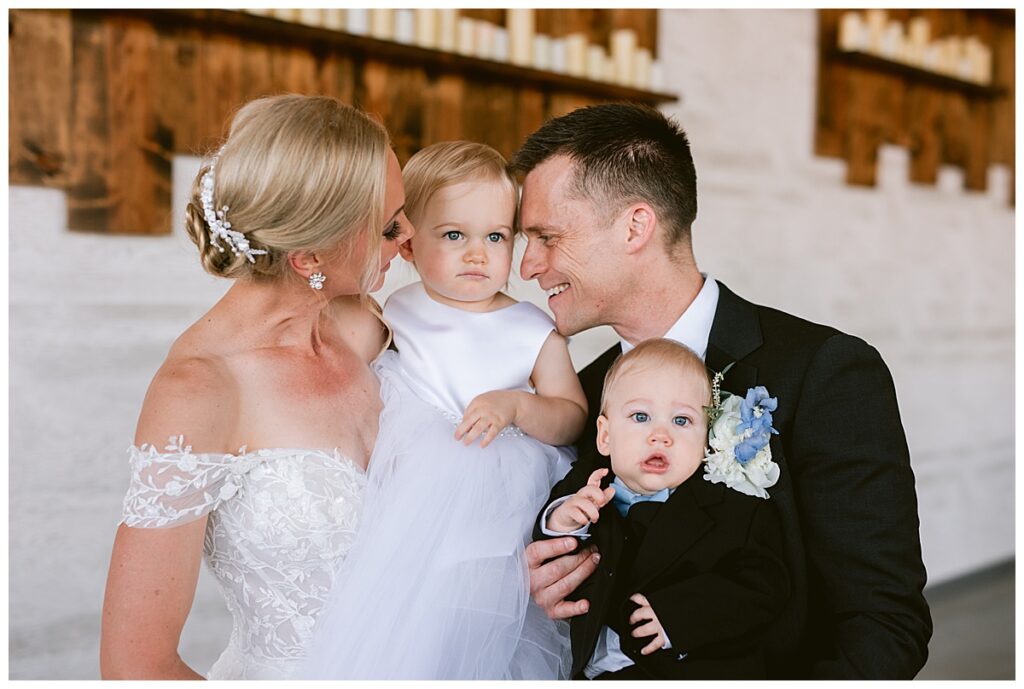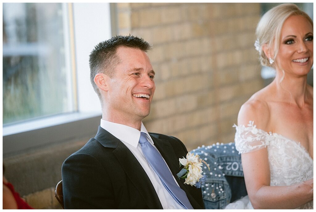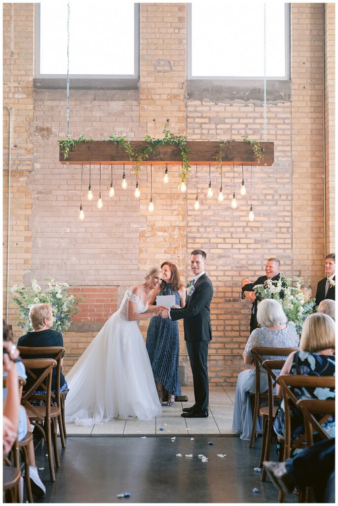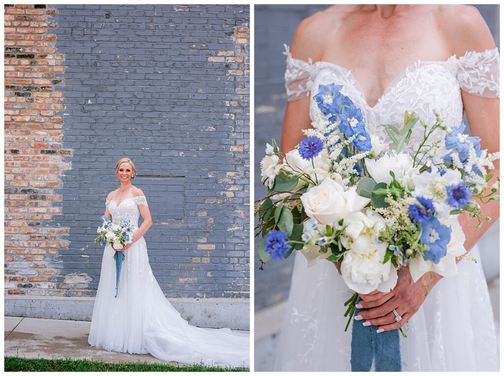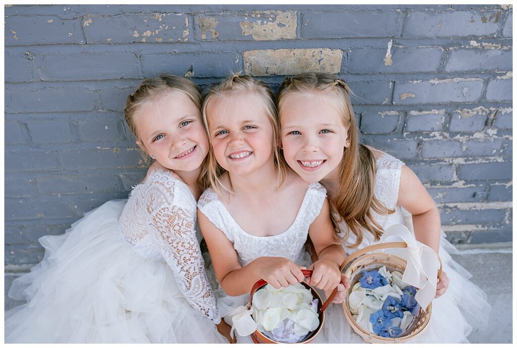Suzie and Scott chose to host their wedding at Forgotten Star Brewing Co in Fridley, MN. They wanted to make the holiday weekend one that guests could relax and enjoy while still celebrating with them. They began the day getting ready at the Brewery for thir first look with each other and then their kids. Suzie looked stunning in her Zinnia dress from Annika Bridal and Molly from Willow Salon gave her the most beautiful updo. Amy Rachael highlighted Suzie’s already beautiful face with the perfect make-up. Suzie’s bridesmaids all wore their periwnkle dress in different styles created by Infinity Dress and the homegrown flowers of peooey’s, cornflowers and greens Ink ‘N Flower put together were perfect for Suzie and Scott’s relaxed July day. We utulized the historic industrial indoor space for photos both of the brewery and the murals. We then headed outdoors for more photos outside of the space and added family and wedding party.