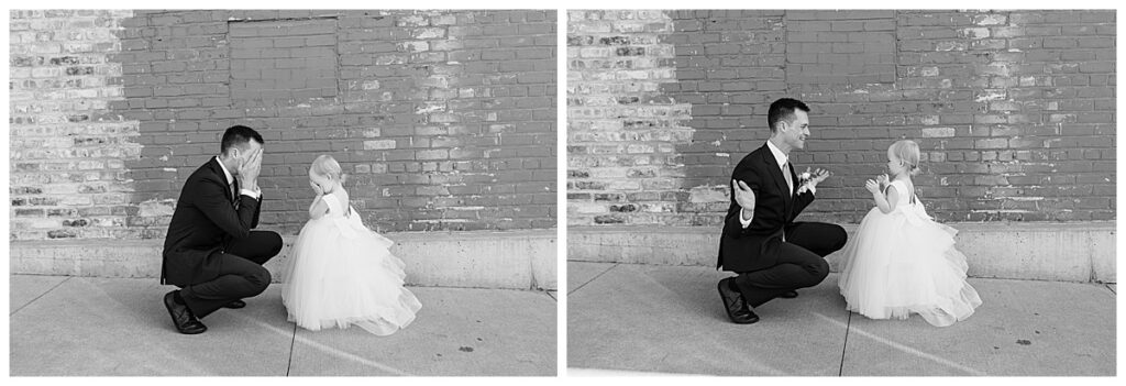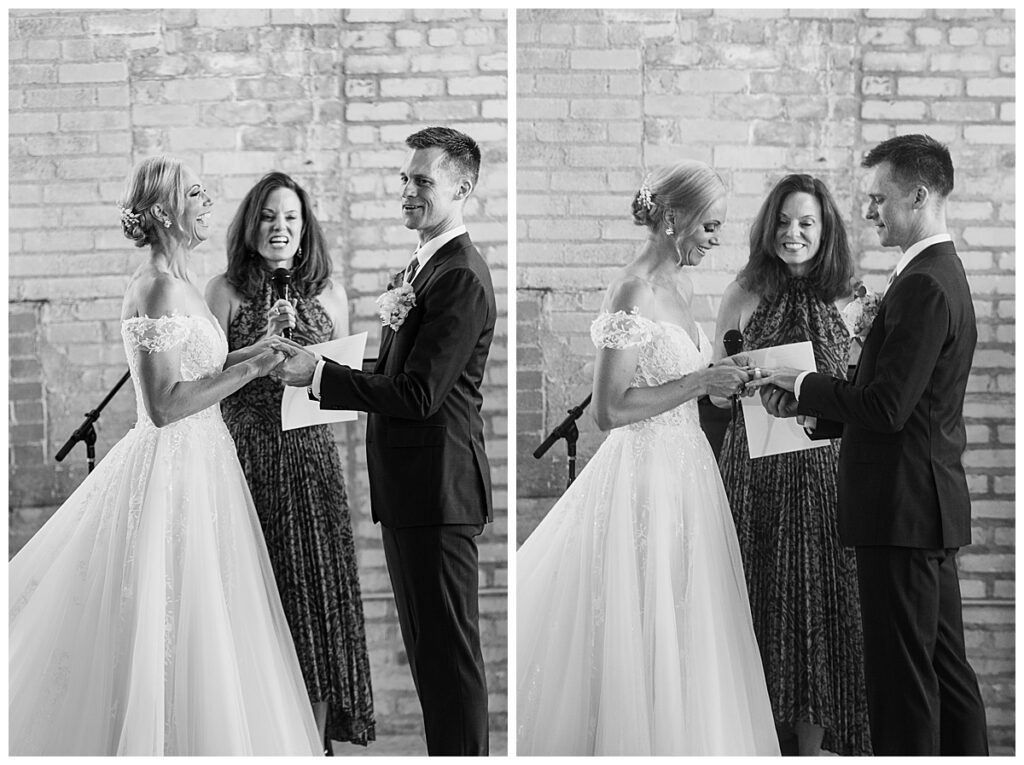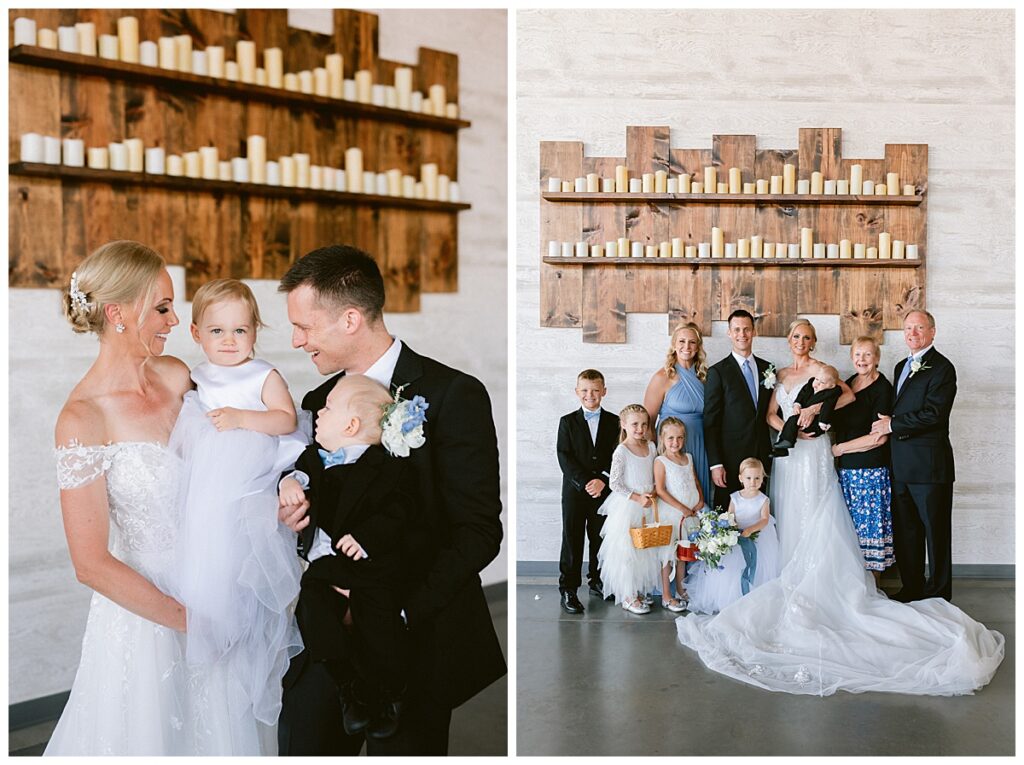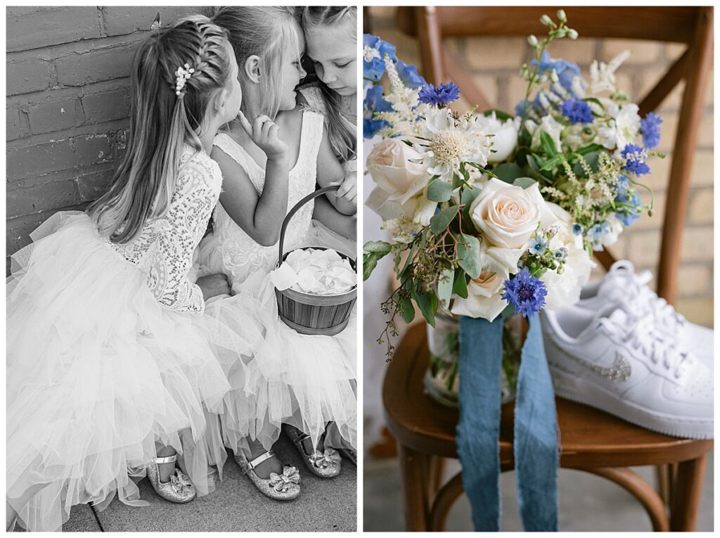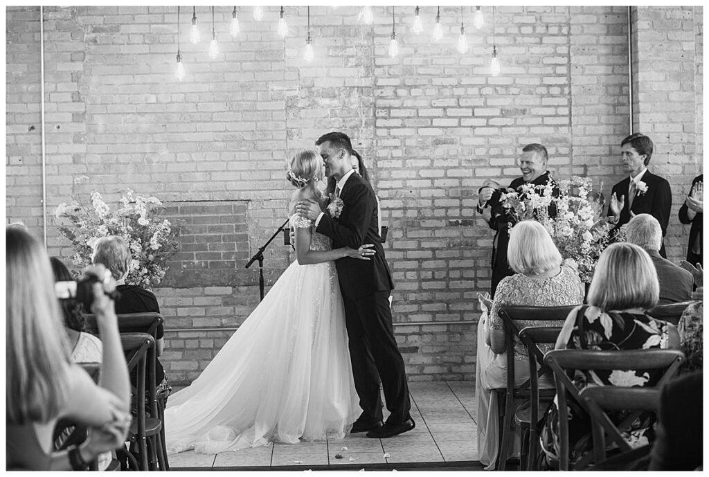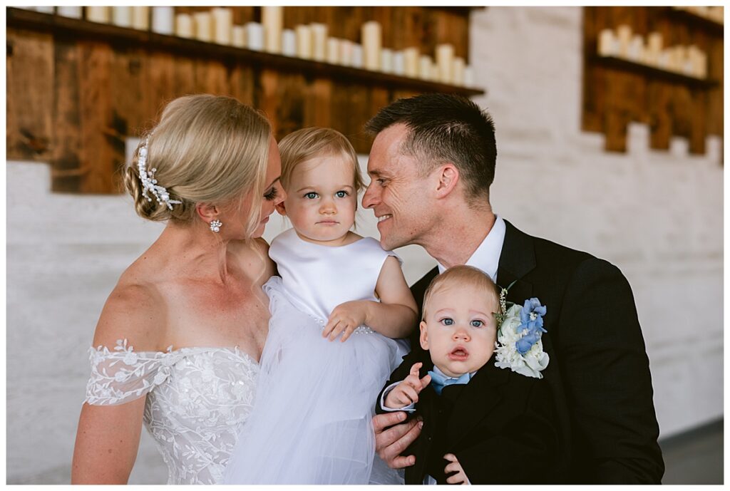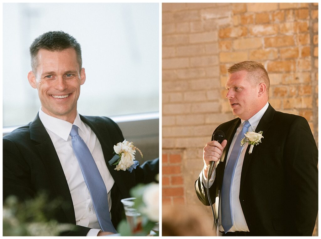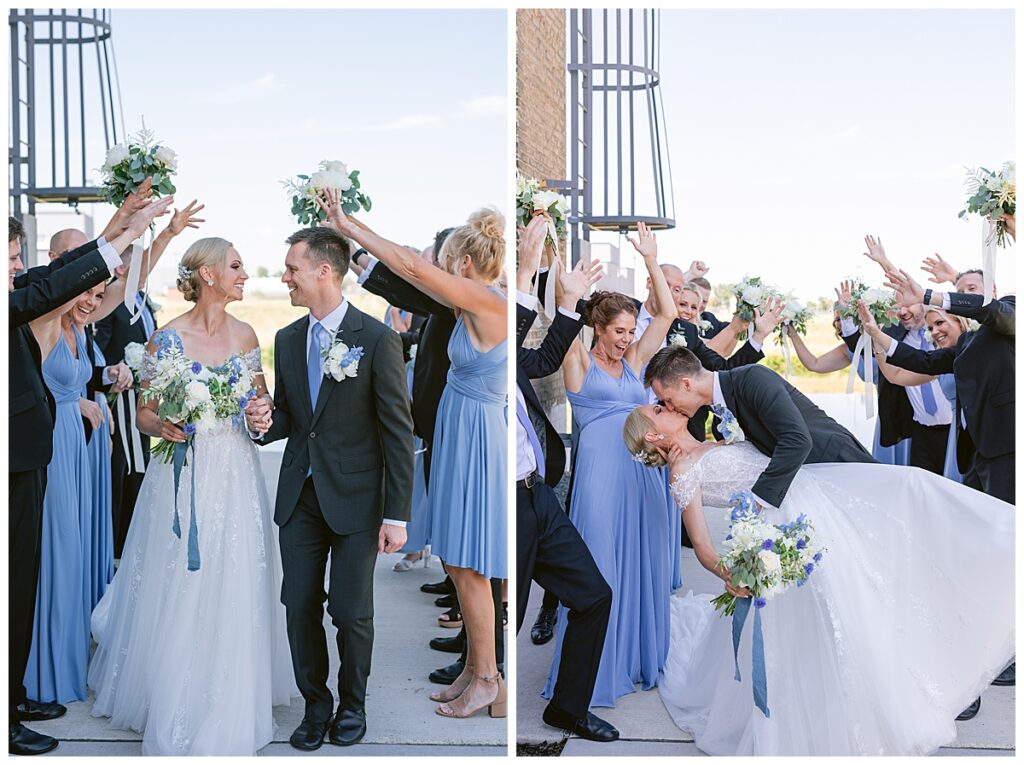 Suzie and Scott chose to host their wedding at Forgotten Star Brewing Co in Fridley, MN. They wanted to make the holiday weekend one that guests could relax and enjoy while still celebrating with them. They began the day getting ready at the Brewery for thir first look with each other and then their kids. Suzie looked stunning in her Zinnia dress from Annika Bridal and Molly from Willow Salon gave her the most beautiful updo. Amy Rachael highlighted Suzie’s already beautiful face with the perfect make-up. Suzie’s bridesmaids all wore their periwnkle dress in different styles created by Infinity Dress and the homegrown flowers of peooey’s, cornflowers and greens Ink ‘N Flower put together were perfect for Suzie and Scott’s relaxed July day. We utulized the historic industrial indoor space for photos both of the brewery and the murals. We then headed outdoors for more photos outside of the space and added family and wedding party.