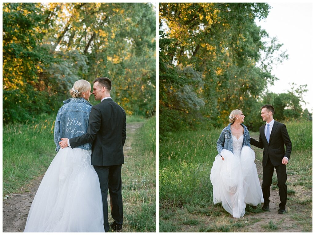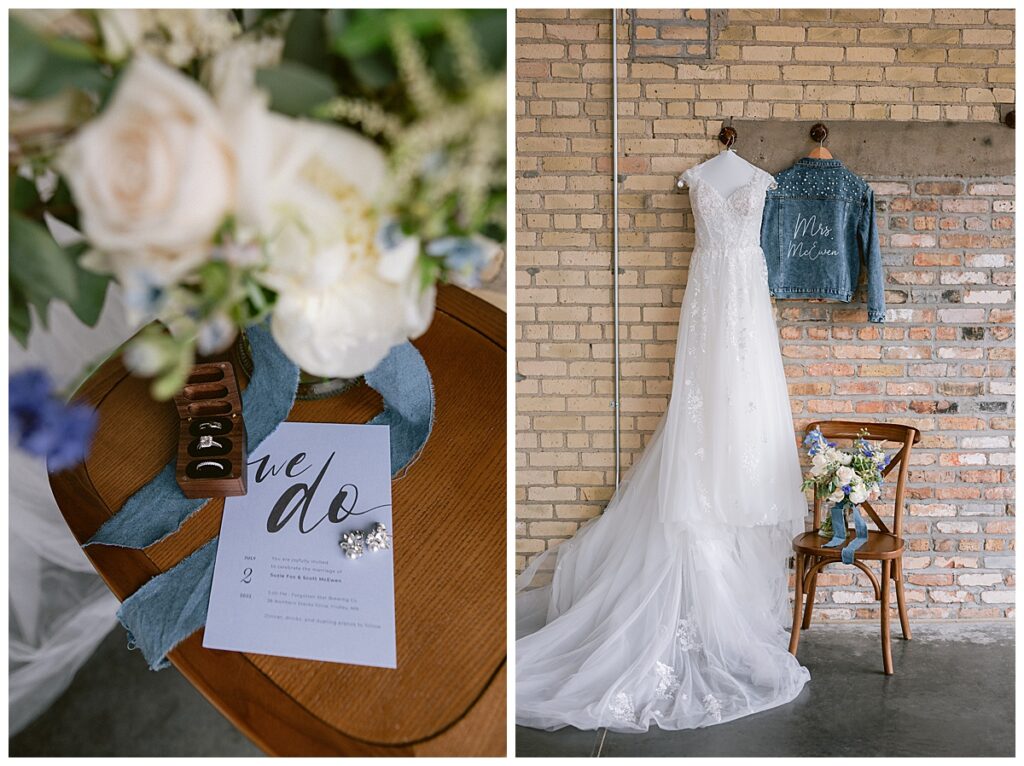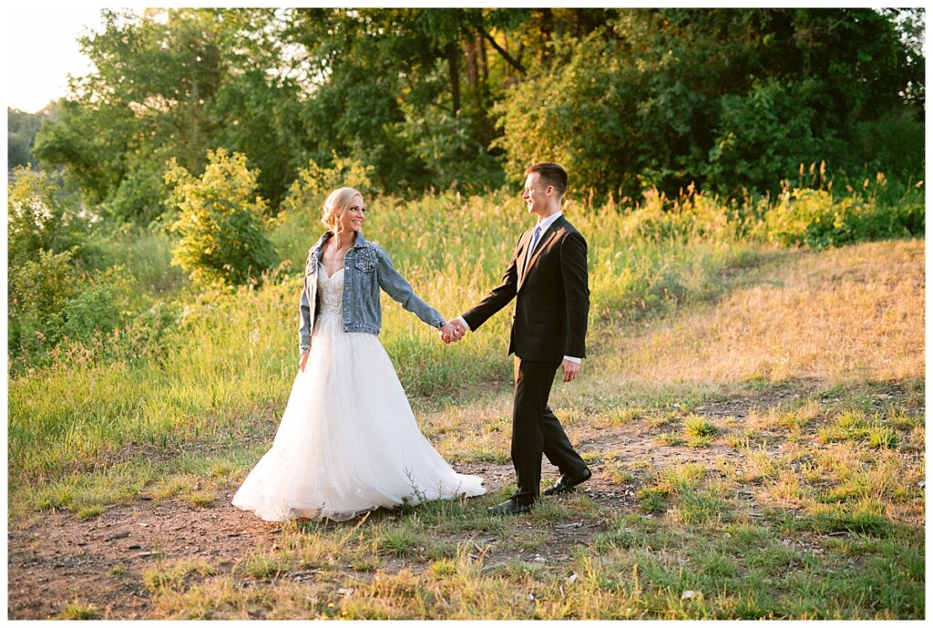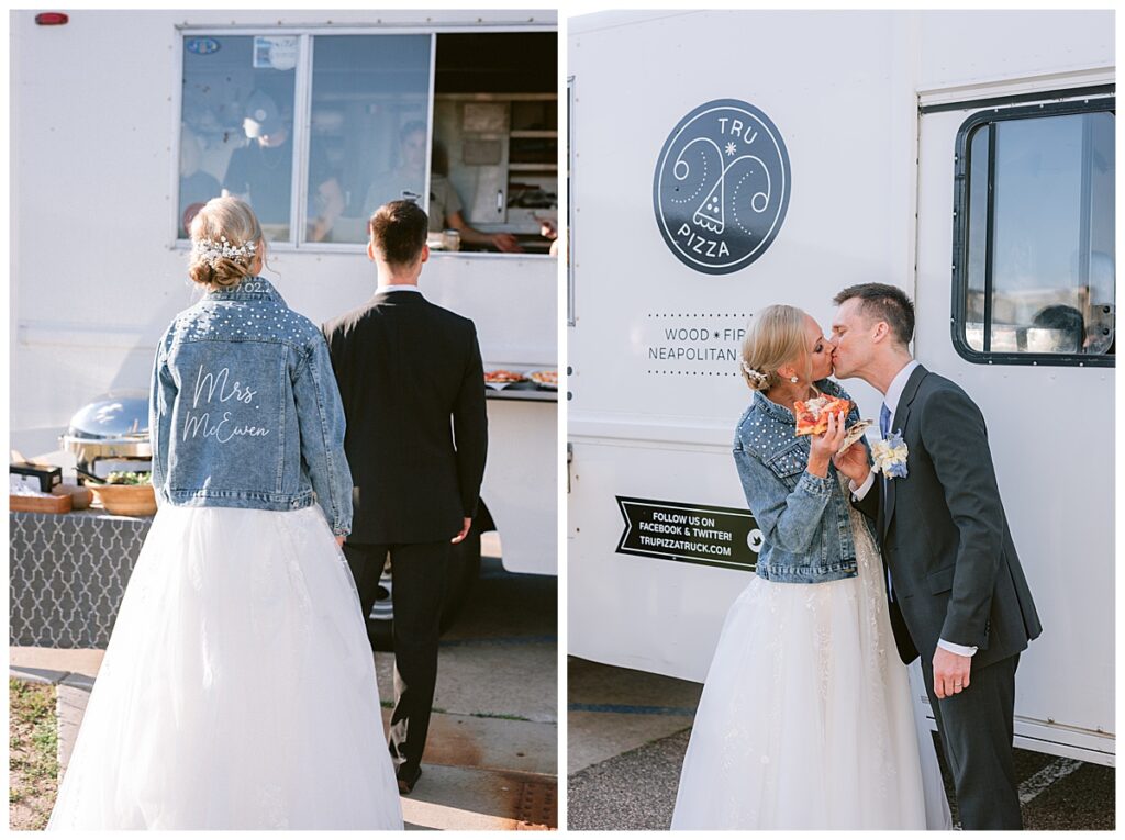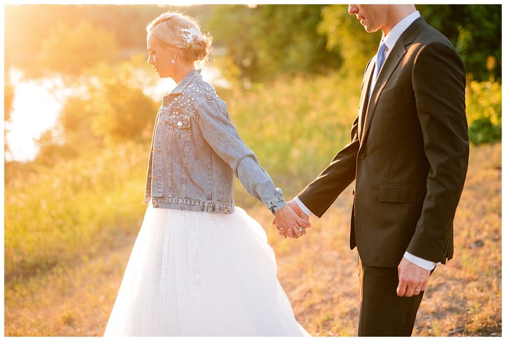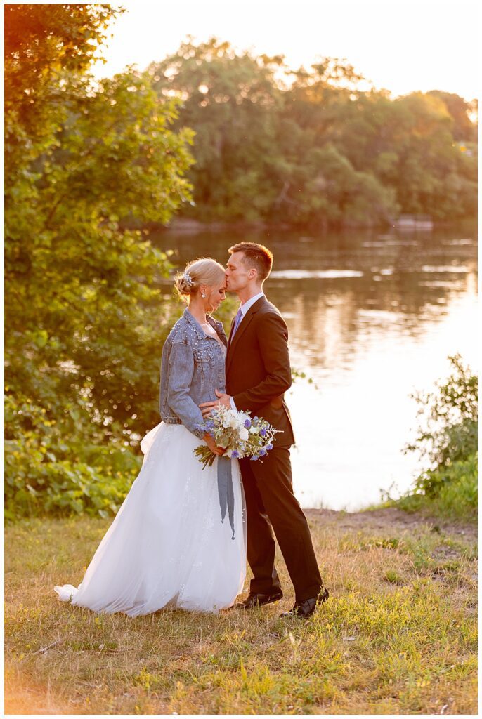 The ceremony began and guests were thrilled and entertained to see Suzie and Scott’s children coming down the aisle followed by Suzie in her stunning dress. Her father gave her away and there was not a dry eye in the place. As the ceremony concluded and Scott, Suzie and their children were presented, guests cheered and celebrated this incredible couple. A host of local craft beers from Forgotten Star were provided along with wood fired Neapolitan pizza from Tru Pizza; the only mobile wood fire food truck. (It was delicious!) Nadia Cakes brought the sweet treats for guests to enjoy later in the evening and Rock It Man Entertainment got the party going by dueling it out with dueling pianos. We headed out for photos along the Mississippi River with Suzie wearing a cute and stylish jean jacked with her new name embroidered on the back and got a dreamy golden hour. Guests danced the night away right into an incredible weekend. Thank you Suzie and Scott. I can’t wait for you to run your Berlin Marathon together on your honeymoon as you celebrate life together. Congratulations!