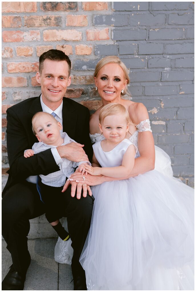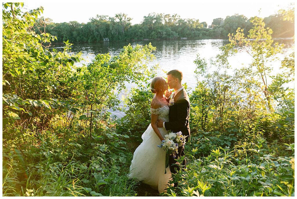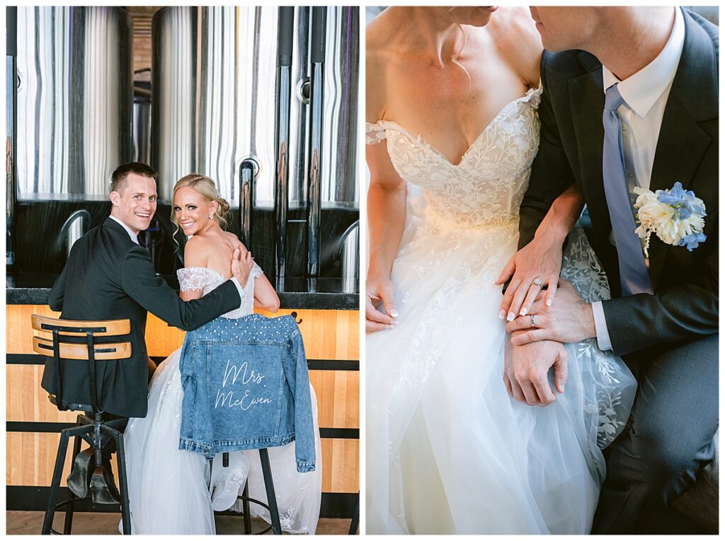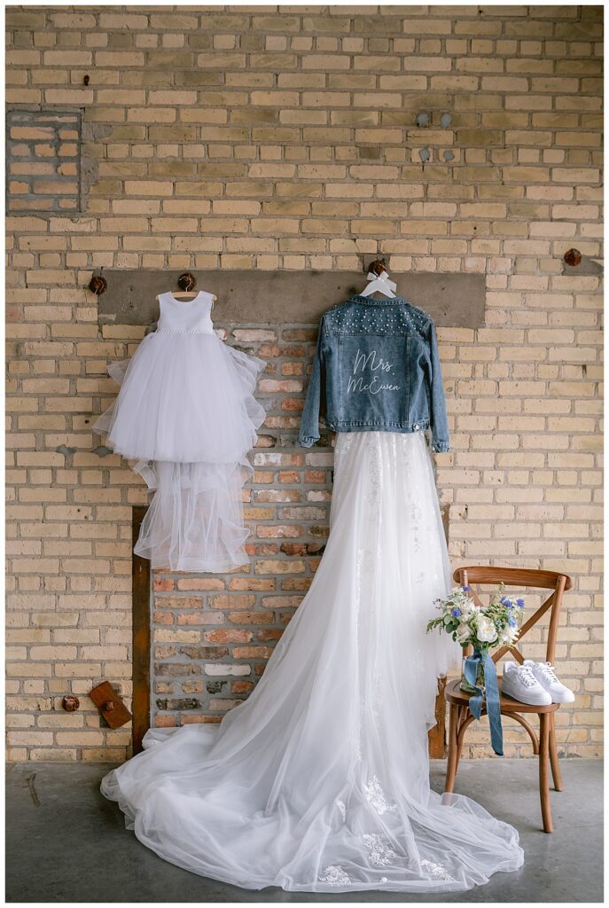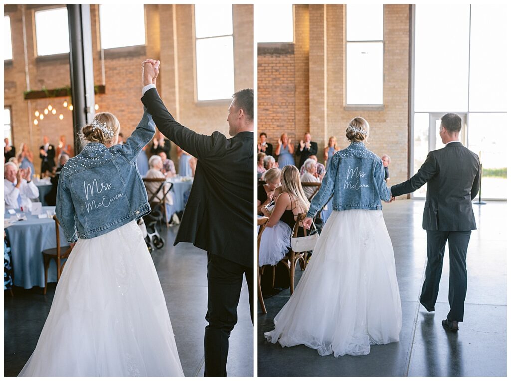 The ceremony began and guests were thrilled and entertained to see Suzie and Scott’s children coming down the aisle followed by Suzie in her stunning dress. Her father gave her away and there was not a dry eye in the place. As the ceremony concluded and Scott, Suzie and their children were presented, guests cheered and celebrated this incredible couple. A host of local craft beers from Forgotten Star were provided along with wood fired Neapolitan pizza from Tru Pizza; the only mobile wood fire food truck. (It was delicious!) Nadia Cakes brought the sweet treats for guests to enjoy later in the evening and Rock It Man Entertainment got the party going by dueling it out with dueling pianos. We headed out for photos along the Mississippi River with Suzie wearing a cute and stylish jean jacked with her new name embroidered on the back and got a dreamy golden hour. Guests danced the night away right into an incredible weekend. Thank you Suzie and Scott. I can’t wait for you to run your Berlin Marathon together on your honeymoon as you celebrate life together. Congratulations!