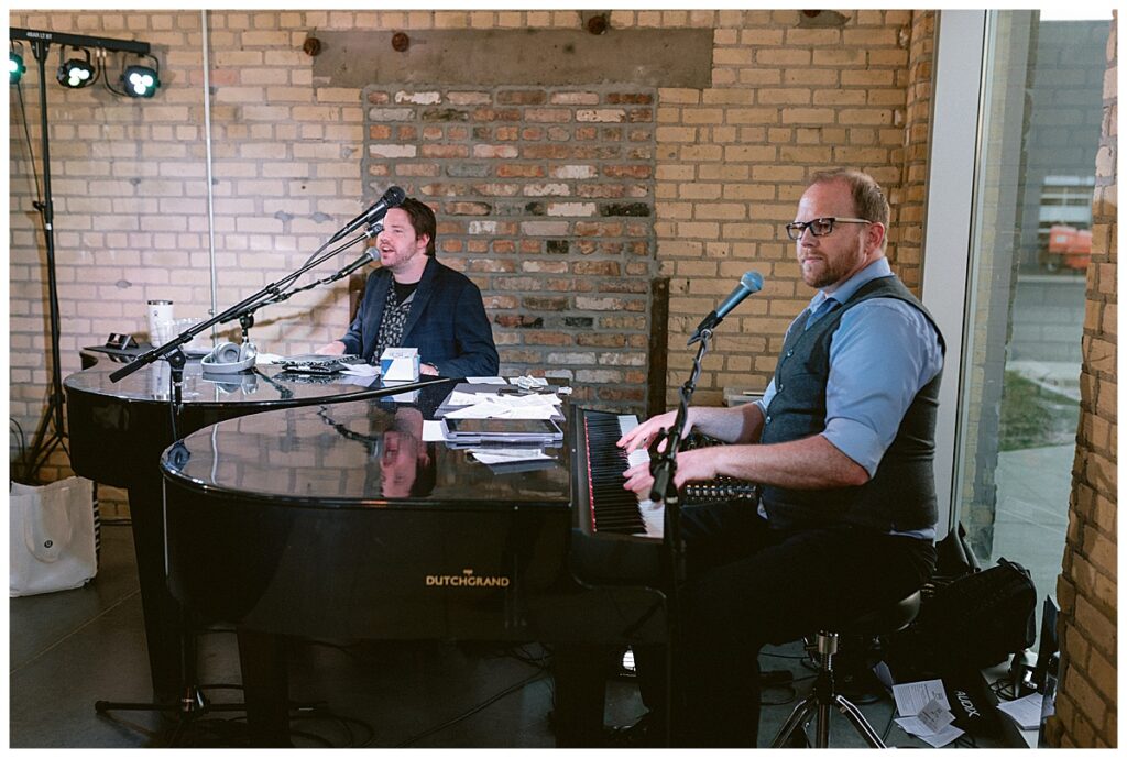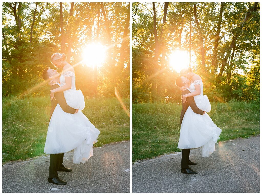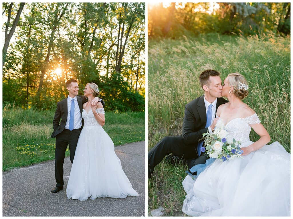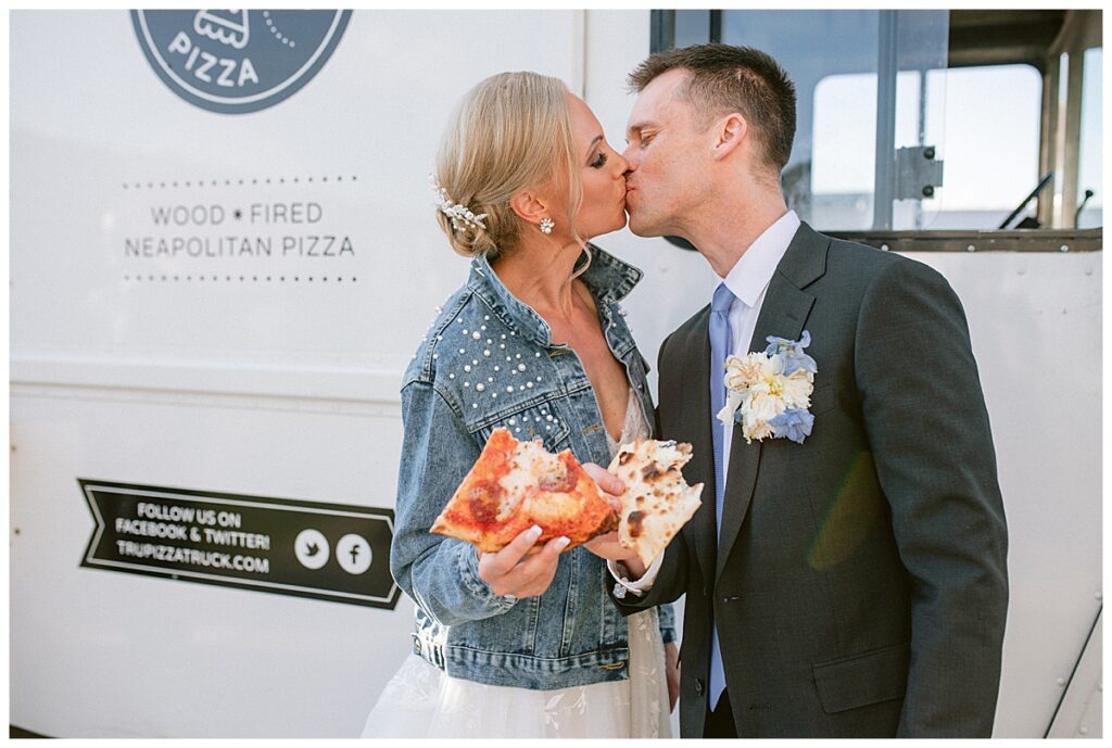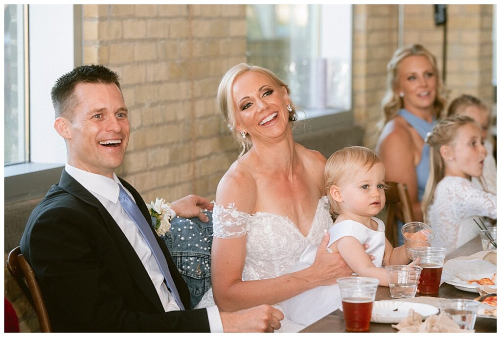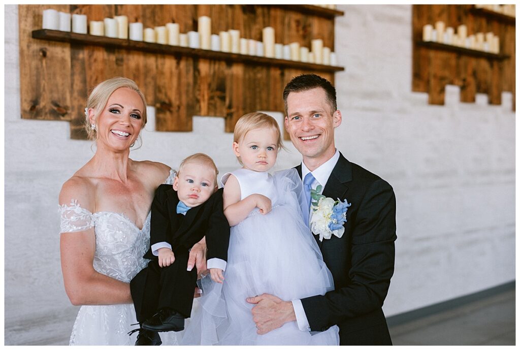 The ceremony began and guests were thrilled and entertained to see Suzie and Scott’s children coming down the aisle followed by Suzie in her stunning dress. Her father gave her away and there was not a dry eye in the place. As the ceremony concluded and Scott, Suzie and their children were presented, guests cheered and celebrated this incredible couple. A host of local craft beers from Forgotten Star were provided along with wood fired Neapolitan pizza from Tru Pizza; the only mobile wood fire food truck. (It was delicious!) Nadia Cakes brought the sweet treats for guests to enjoy later in the evening and Rock It Man Entertainment got the party going by dueling it out with dueling pianos. We headed out for photos along the Mississippi River with Suzie wearing a cute and stylish jean jacked with her new name embroidered on the back and got a dreamy golden hour. Guests danced the night away right into an incredible weekend. Thank you Suzie and Scott. I can’t wait for you to run your Berlin Marathon together on your honeymoon as you celebrate life together. Congratulations!
