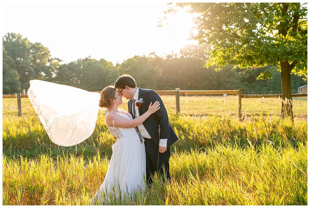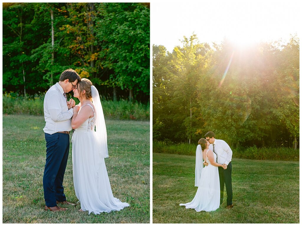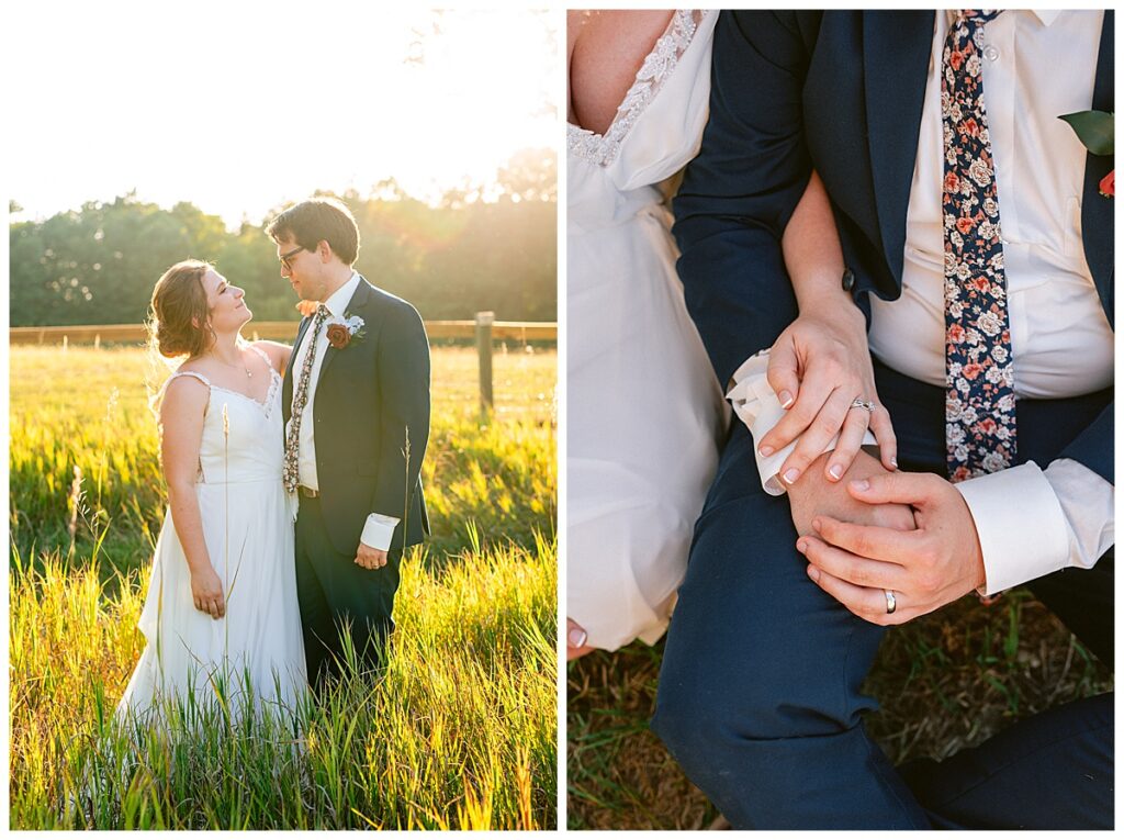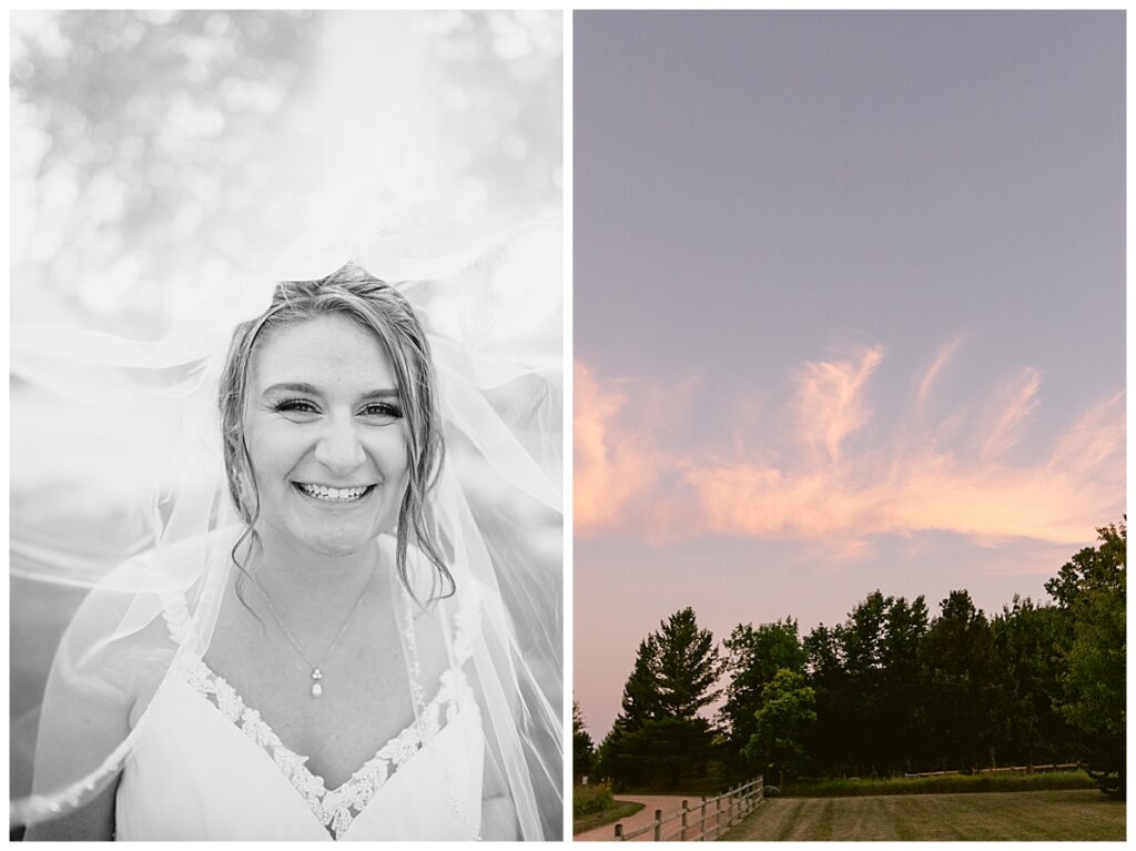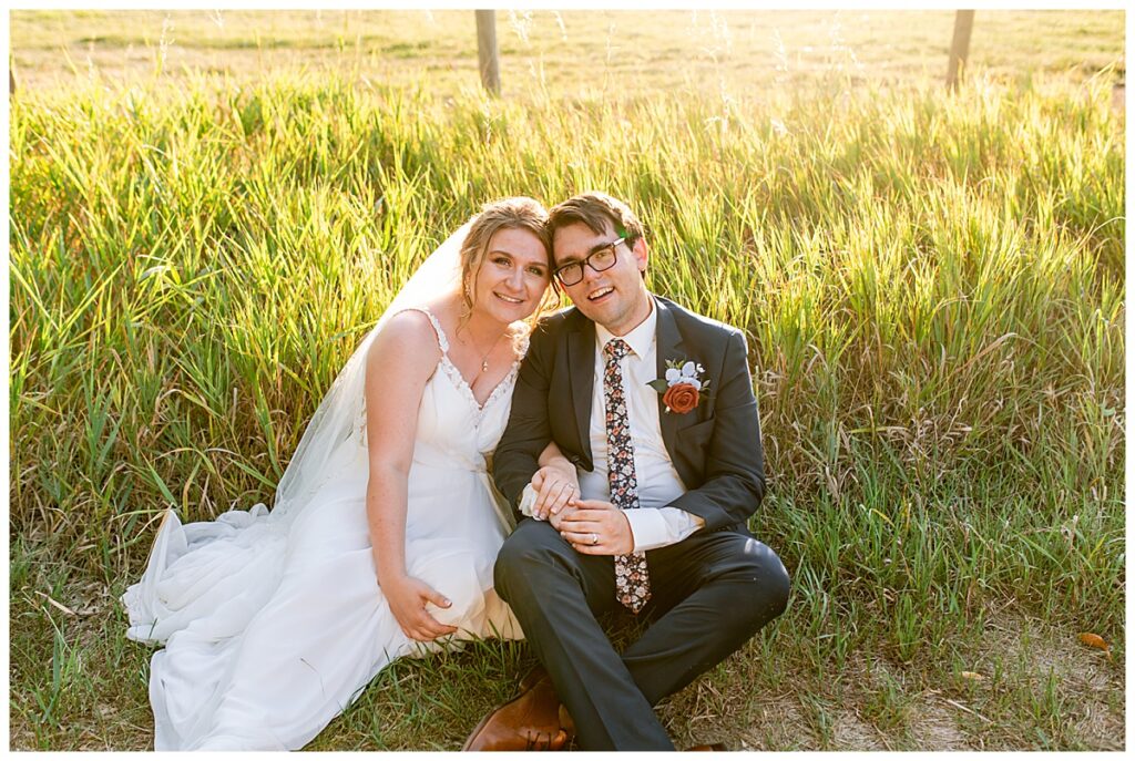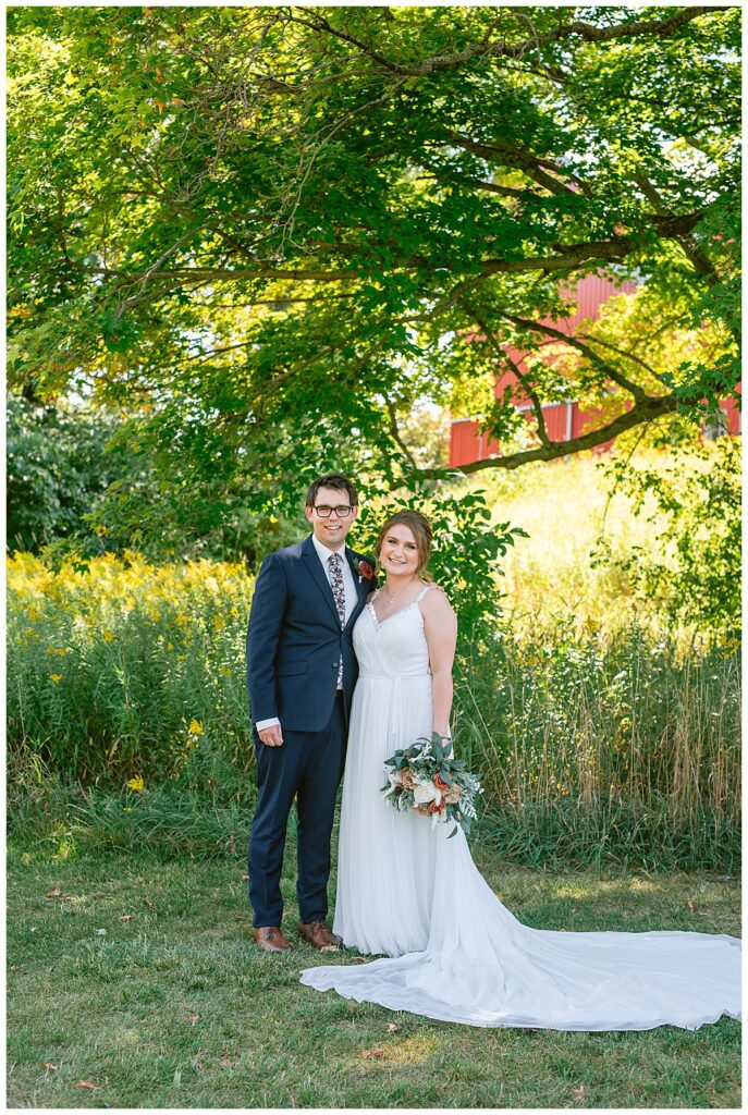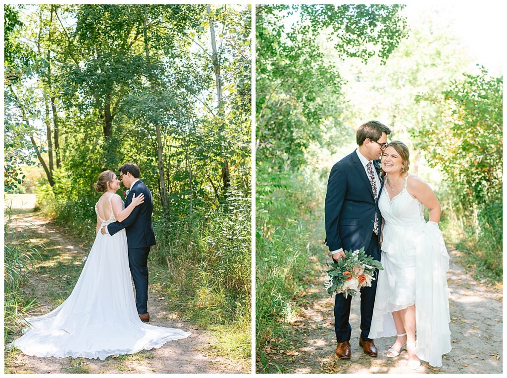 Jordan and Colin chose to host their wedding at Gale Woods Farm. Located on picturesque Whaletail Lake in Minnetrista, Gale Woods Farm features tall grasses, wide open fields and a variety of farm animals for guests to enjoy. The day began while Jordan and her bridesmaids got ready with Brianna Michaelson of Breezy Beauty, who did their hair and make up. Jordan then arrived at Gale Woods Farm in her beautiful Madeline Garner Morilee dress purchased at the Wedding Shoppe in Saint Paul. Colin was waiting for her at the bottom of the hill where the two chose to do their first look. We wandered along the grounds before Colin presented Jordan with a gift, a piece of their beloved stump, ready to be made into a beautiful end table for their home. Jordan was astonished and all tears as she hugged Colin.