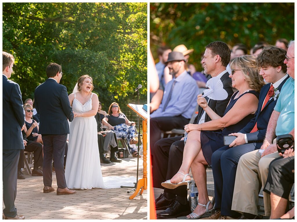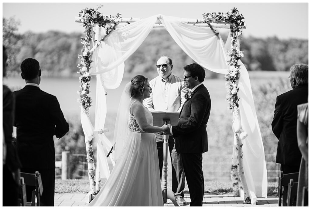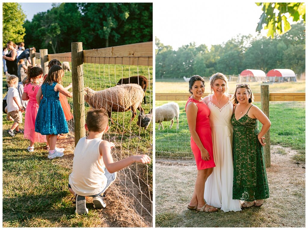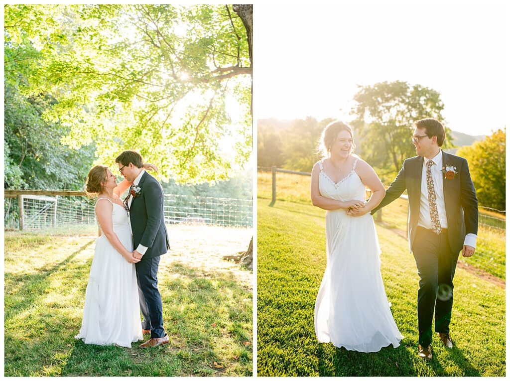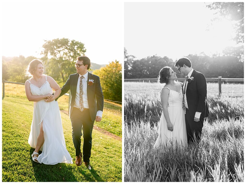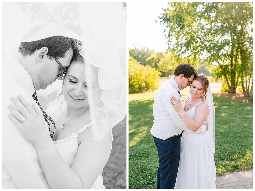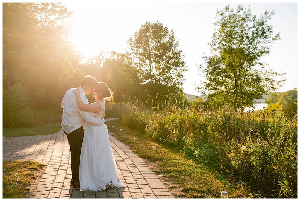 Jordan and Colin chose to host their wedding at Gale Woods Farm. Located on picturesque Whaletail Lake in Minnetrista, Gale Woods Farm features tall grasses, wide open fields and a variety of farm animals for guests to enjoy. The day began while Jordan and her bridesmaids got ready with Brianna Michaelson of Breezy Beauty, who did their hair and make up. Jordan then arrived at Gale Woods Farm in her beautiful Madeline Garner Morilee dress purchased at the Wedding Shoppe in Saint Paul. Colin was waiting for her at the bottom of the hill where the two chose to do their first look. We wandered along the grounds before Colin presented Jordan with a gift, a piece of their beloved stump, ready to be made into a beautiful end table for their home. Jordan was astonished and all tears as she hugged Colin.