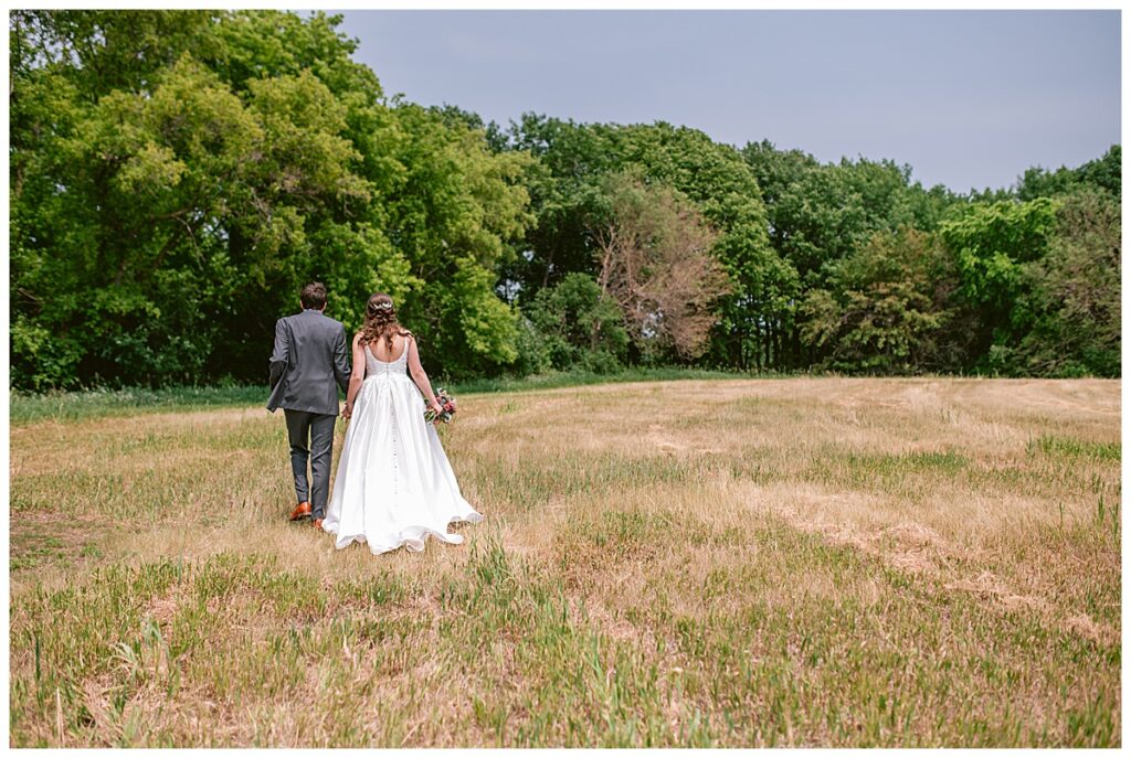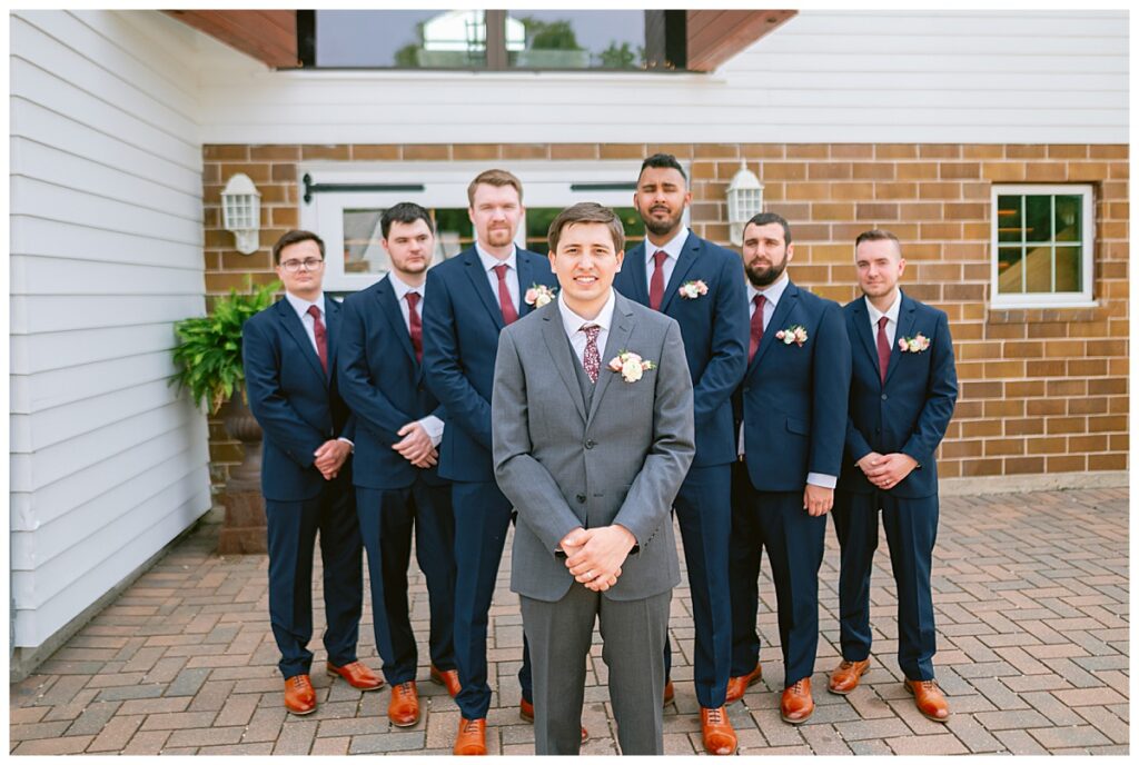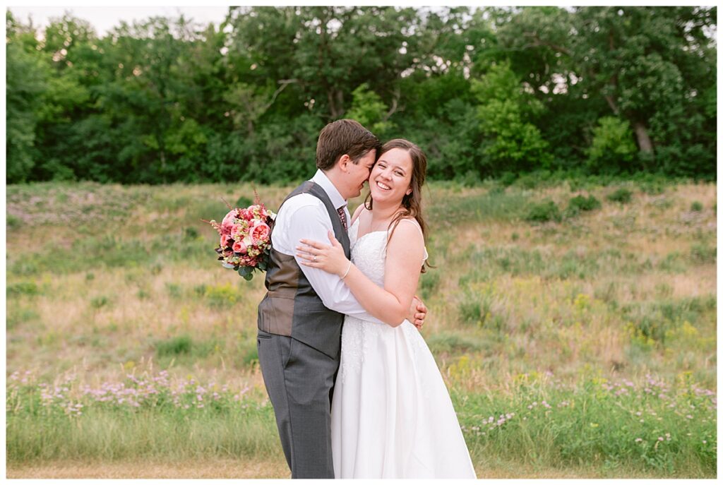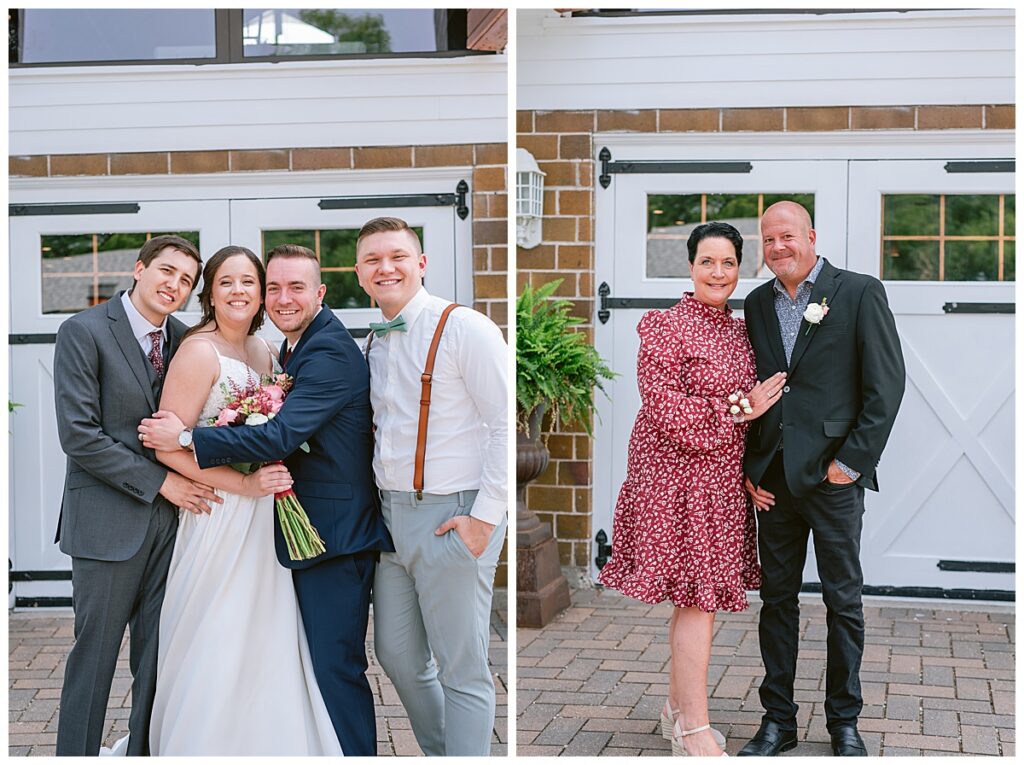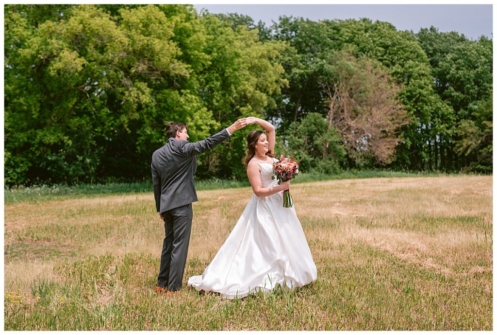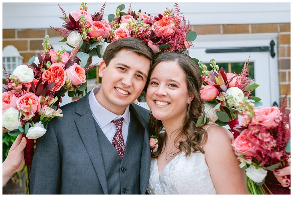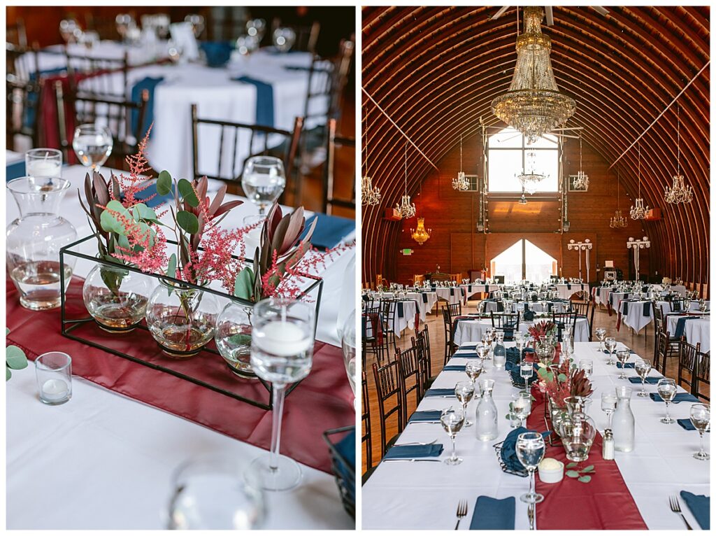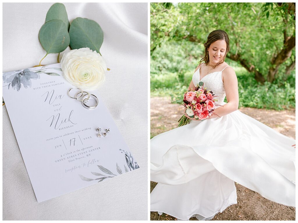 Green Acres was the perfect venue for Nick and Nia to tie the knot. The girls began their warm June day at Coles Salon in Savage with hair and make up and then headed over to the venue. Nick and his groomsmen met them there and they all began getting ready in the gorgeous barn venue. Nia‘s beautiful white Maggie Soretto dress from the wedding shop was perfect when paired with the burgundy and pink flowers design in bloom created for the day. Nick and Nia had a joyous first look and their wedding party, dressed in burgundy tea length dresses from JJ’s house and gray suits from Millbourne’s clothing, then joined them for some fun. Family photos followed and then guests began to arrive to celebrate with the happy couple. Nia’s step grandfather married the couple, and they both exchanged rings from wedding day diamonds and brilliant earth. Guests celebrated as Nick and Nia exited and then greeted guests for their cocktail hour where the bartenders whipped up drinks perfect to celebrate the occasion.