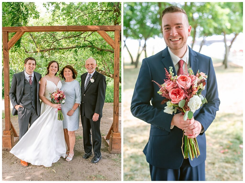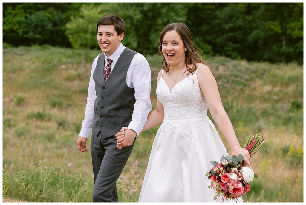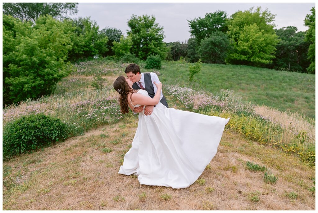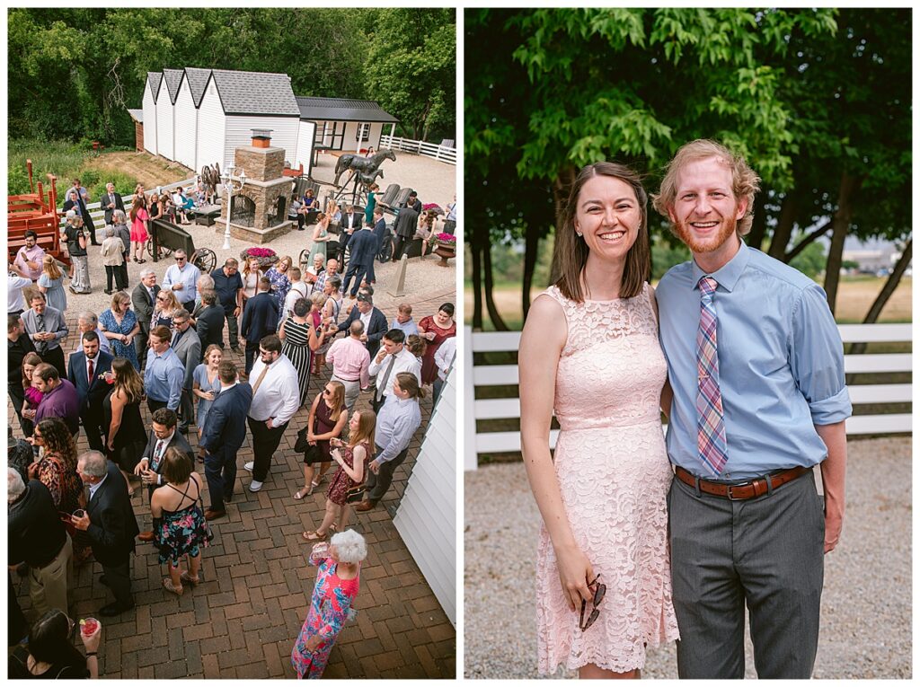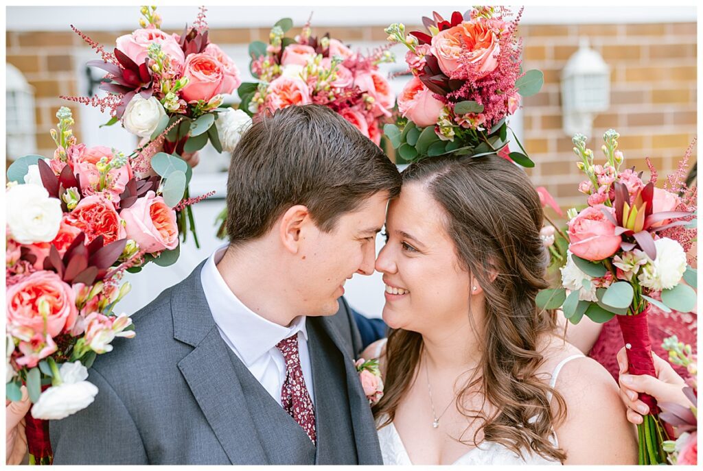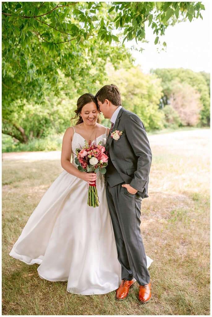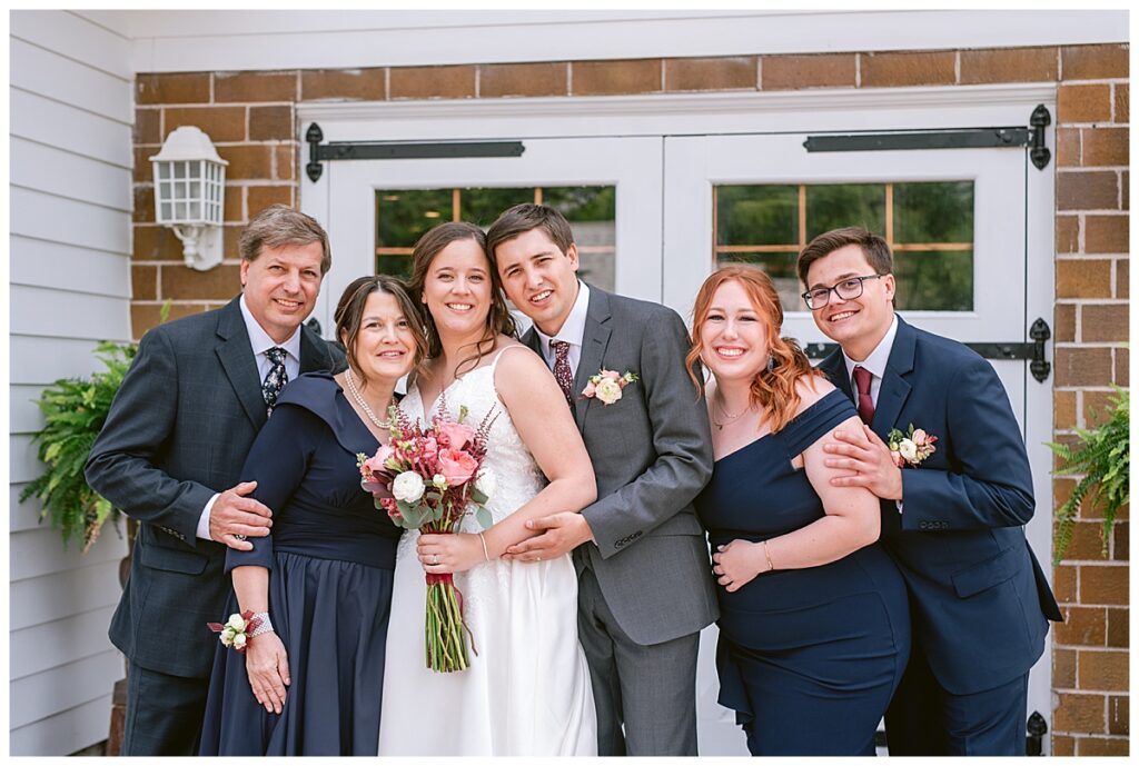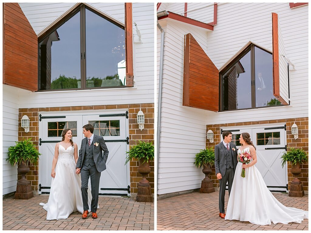 Green Acres was the perfect venue for Nick and Nia to tie the knot. The girls began their warm June day at Coles Salon in Savage with hair and make up and then headed over to the venue. Nick and his groomsmen met them there and they all began getting ready in the gorgeous barn venue. Nia‘s beautiful white Maggie Soretto dress from the wedding shop was perfect when paired with the burgundy and pink flowers design in bloom created for the day. Nick and Nia had a joyous first look and their wedding party, dressed in burgundy tea length dresses from JJ’s house and gray suits from Millbourne’s clothing, then joined them for some fun. Family photos followed and then guests began to arrive to celebrate with the happy couple. Nia’s step grandfather married the couple, and they both exchanged rings from wedding day diamonds and brilliant earth. Guests celebrated as Nick and Nia exited and then greeted guests for their cocktail hour where the bartenders whipped up drinks perfect to celebrate the occasion.