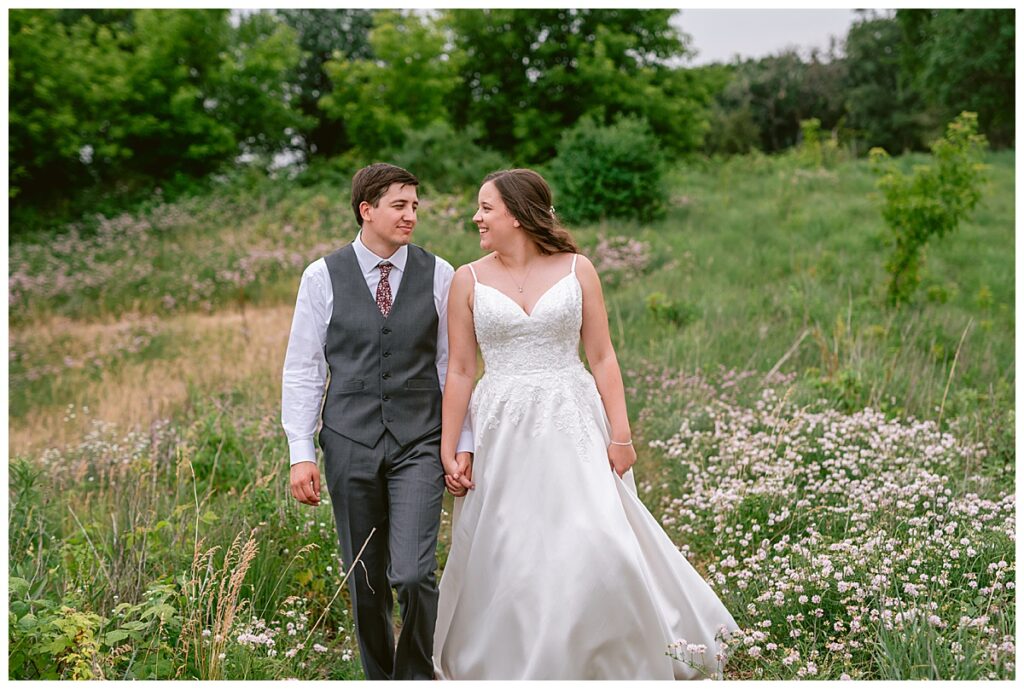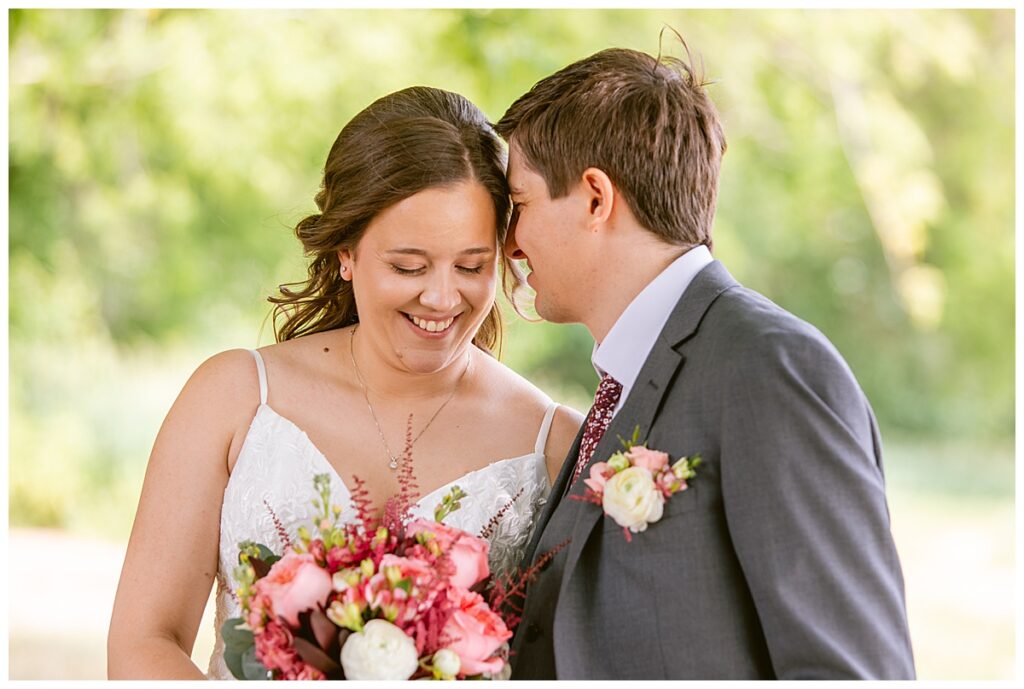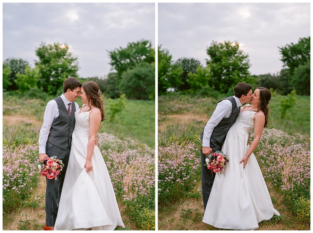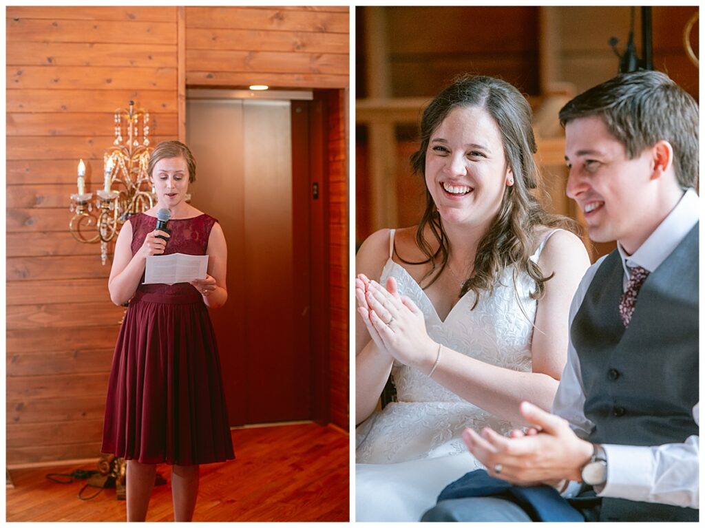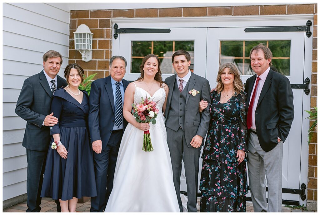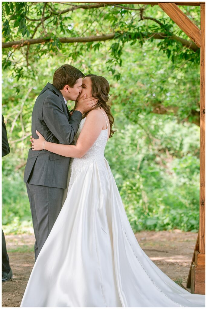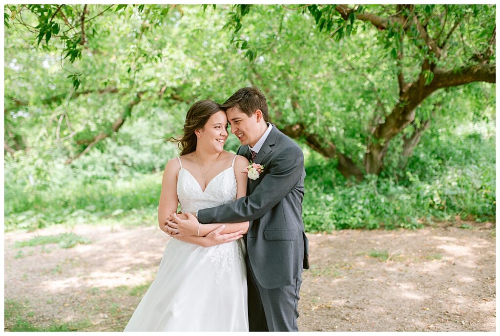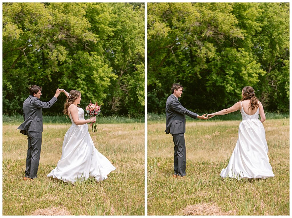 Green Acres was the perfect venue for Nick and Nia to tie the knot. The girls began their warm June day at Coles Salon in Savage with hair and make up and then headed over to the venue. Nick and his groomsmen met them there and they all began getting ready in the gorgeous barn venue. Nia‘s beautiful white Maggie Soretto dress from the wedding shop was perfect when paired with the burgundy and pink flowers design in bloom created for the day. Nick and Nia had a joyous first look and their wedding party, dressed in burgundy tea length dresses from JJ’s house and gray suits from Millbourne’s clothing, then joined them for some fun. Family photos followed and then guests began to arrive to celebrate with the happy couple. Nia’s step grandfather married the couple, and they both exchanged rings from wedding day diamonds and brilliant earth. Guests celebrated as Nick and Nia exited and then greeted guests for their cocktail hour where the bartenders whipped up drinks perfect to celebrate the occasion.