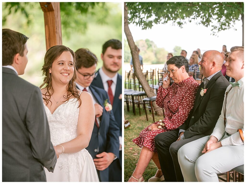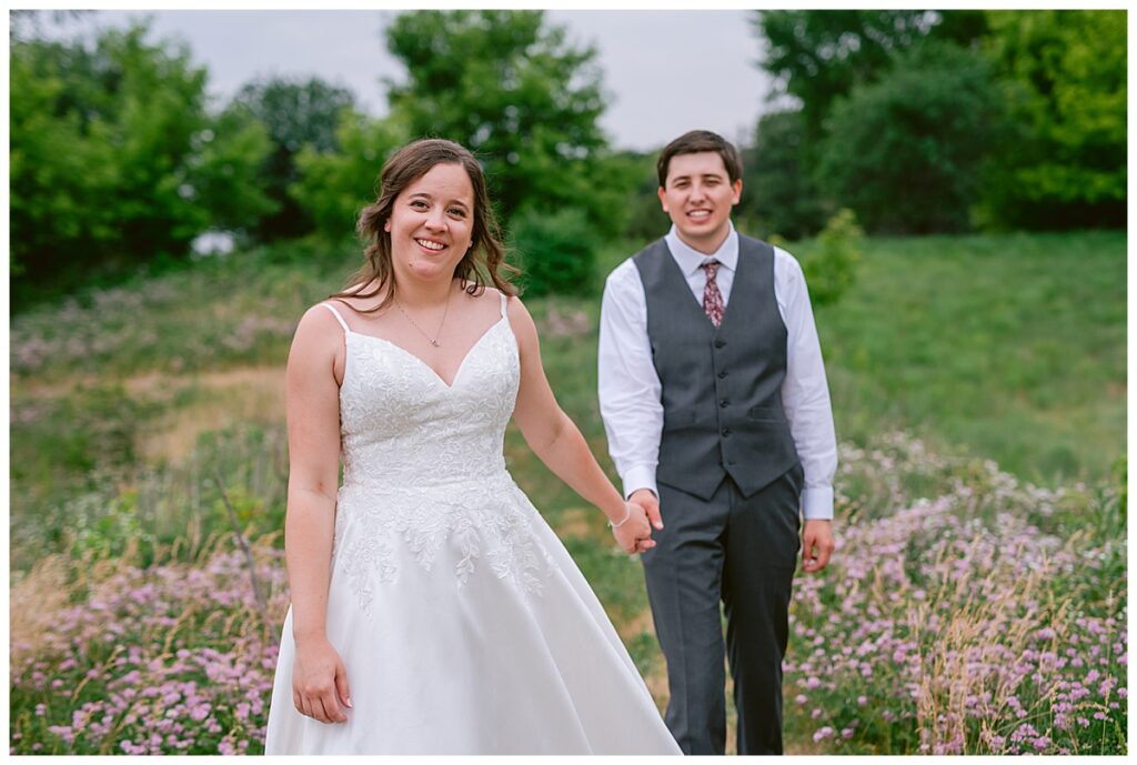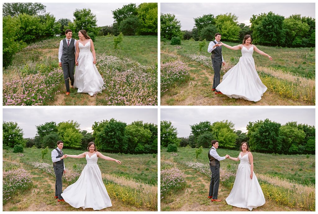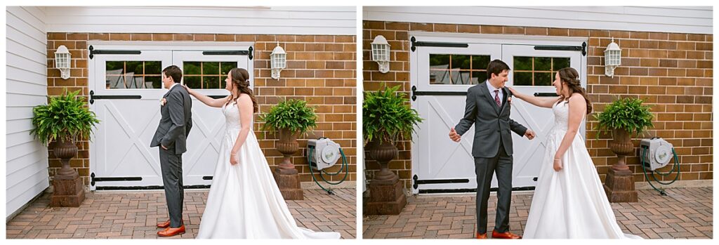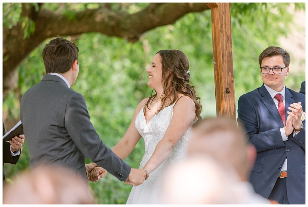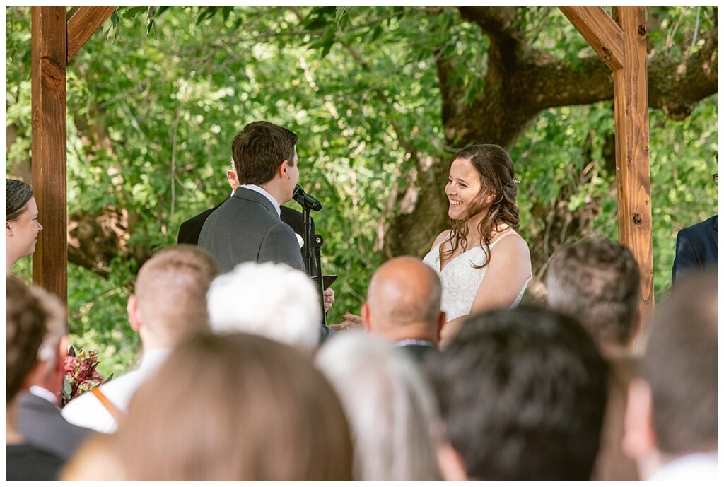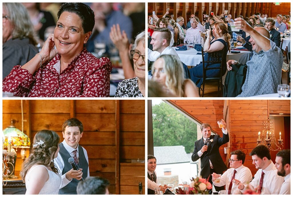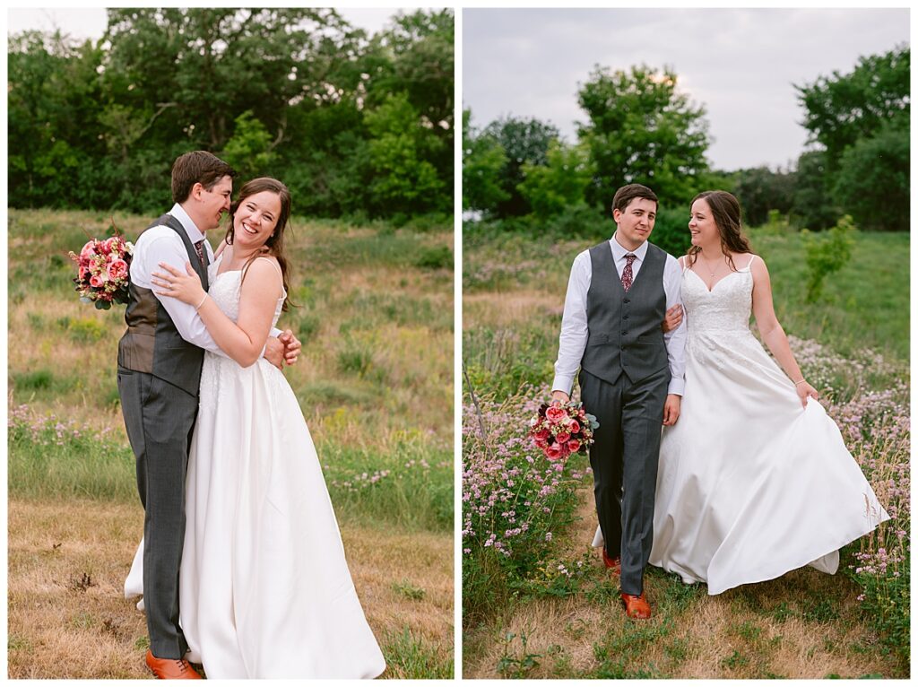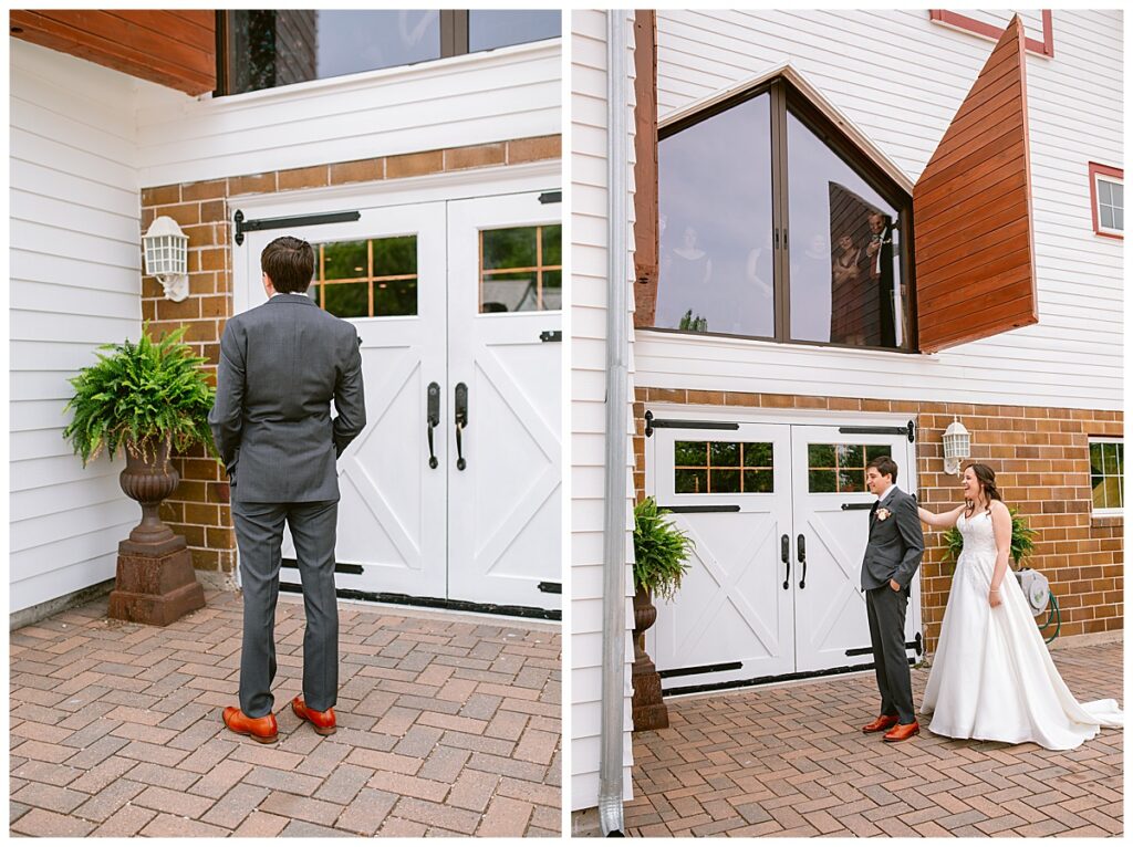 Green Acres was the perfect venue for Nick and Nia to tie the knot. The girls began their warm June day at Coles Salon in Savage with hair and make up and then headed over to the venue. Nick and his groomsmen met them there and they all began getting ready in the gorgeous barn venue. Nia‘s beautiful white Maggie Soretto dress from the wedding shop was perfect when paired with the burgundy and pink flowers design in bloom created for the day. Nick and Nia had a joyous first look and their wedding party, dressed in burgundy tea length dresses from JJ’s house and gray suits from Millbourne’s clothing, then joined them for some fun. Family photos followed and then guests began to arrive to celebrate with the happy couple. Nia’s step grandfather married the couple, and they both exchanged rings from wedding day diamonds and brilliant earth. Guests celebrated as Nick and Nia exited and then greeted guests for their cocktail hour where the bartenders whipped up drinks perfect to celebrate the occasion.