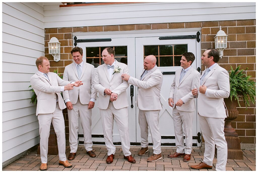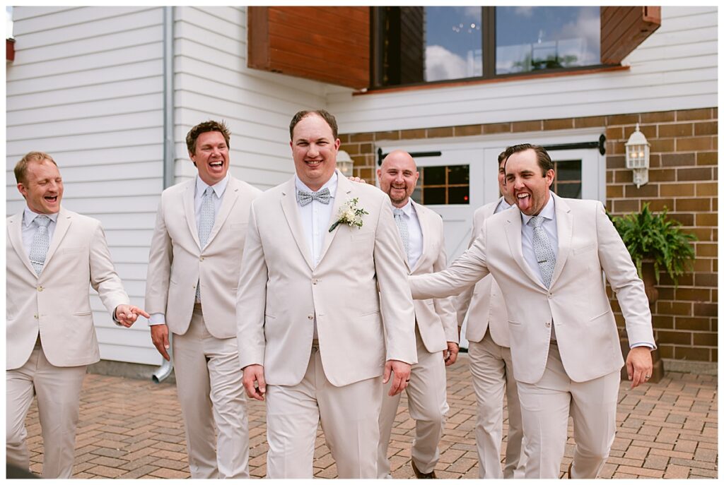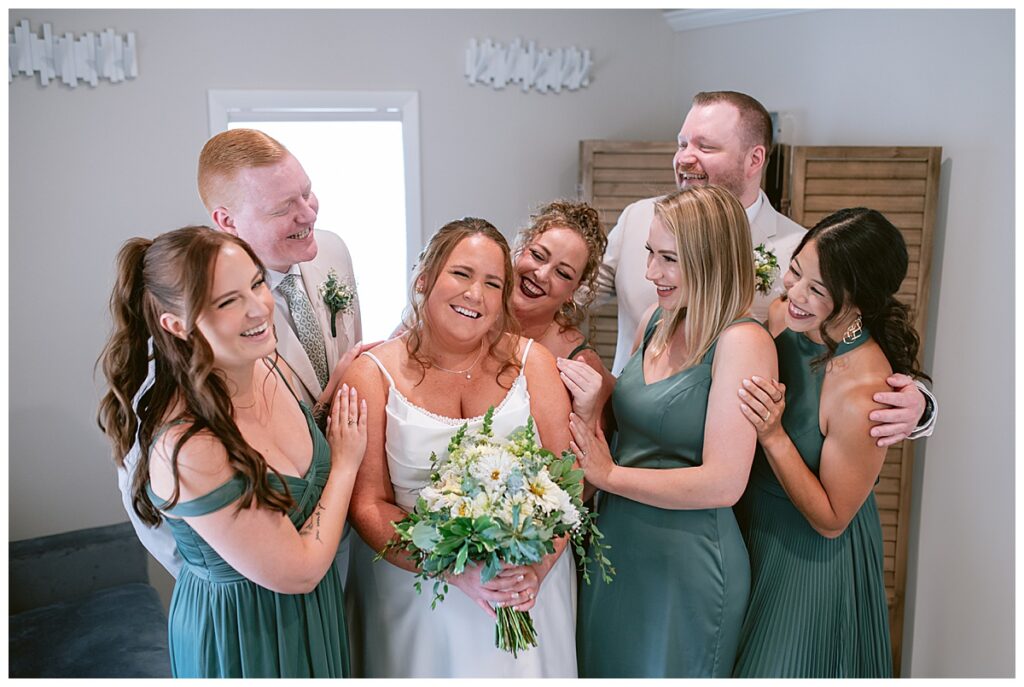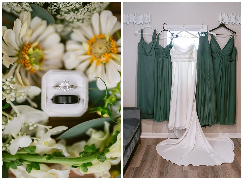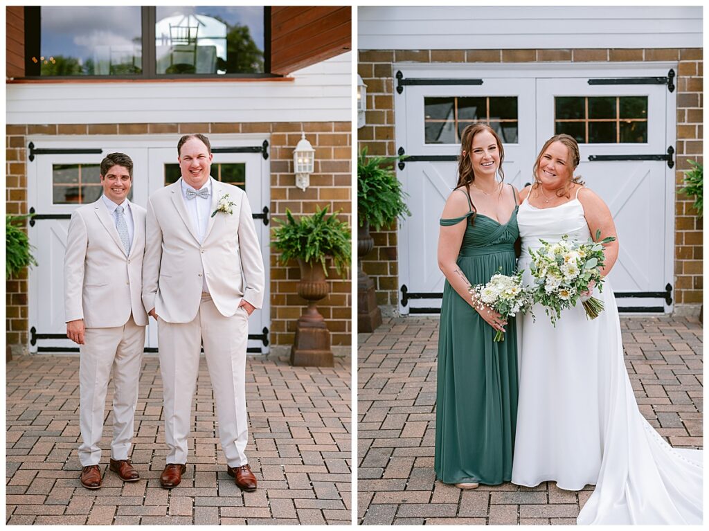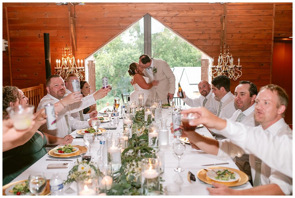 Kelly was radiant in her elegant Stella York gown, which she found at Luxe Bridal Couture. The dress suited her so perfectly; timeless, flattering, and full of joy. Her bridesmaids wore stunning sage dresses from Azazie, while the men looked sharp in suits from Men’s Wearhouse, adding a polished balance to the rustic surroundings.