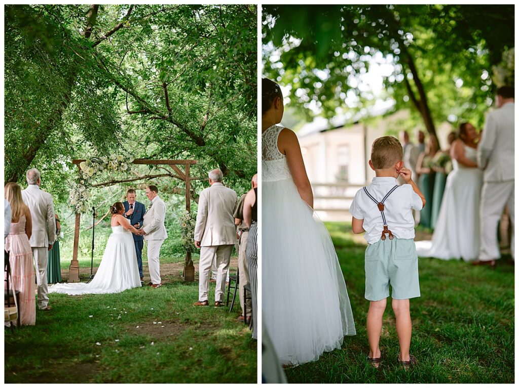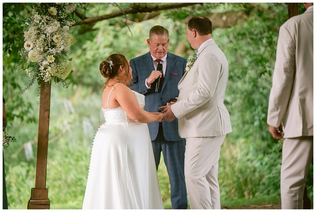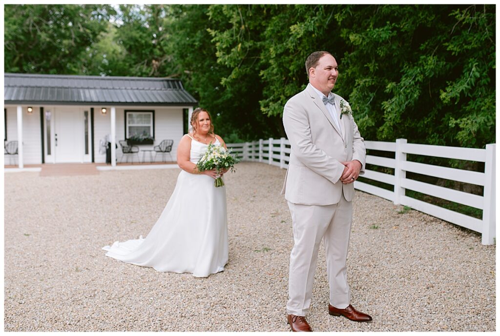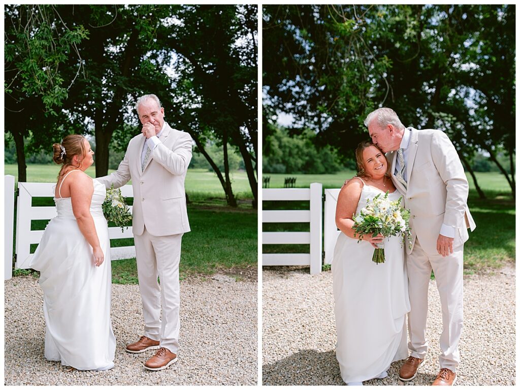 As the final touches were being made, the day moved gently into one of its most emotional moments: the first look. Kelly and Adam shared a quiet, private moment together, just the two of them, seeing each other before the ceremony began. There were tears, hugs, and so much love. Then, Keva joined in for her own little first look with mom and dad, tail wagging and tongue out, making it a moment no one would forget.