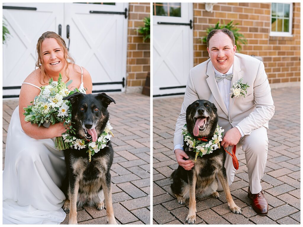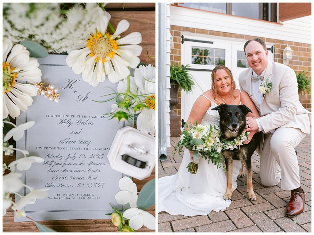 Kelly and Adam’s rings were a combination of beautiful sentimentality, sourced from Wedding Day Diamonds, Modern Gents, and Target, a mix that reflected their playful and down-to-earth personalities. They also included their beloved Keva in the celebration with the help of DoggySocial, ensuring she was well cared for and photo-ready throughout the day.