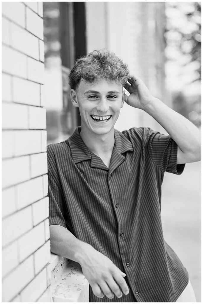 We held his senior session in downtown Delano, Minnesota, which provided the perfect backdrop to reflect who Griffin is laid-back, genuine, and full of quiet strength. From rustic textures to hidden walkways and warm-toned walls, the variety of locations helped us tell a story that’s true to him.