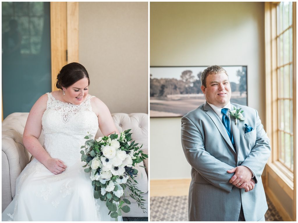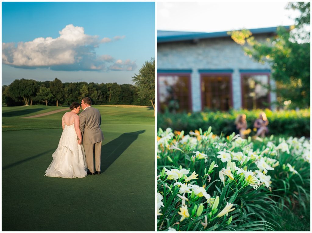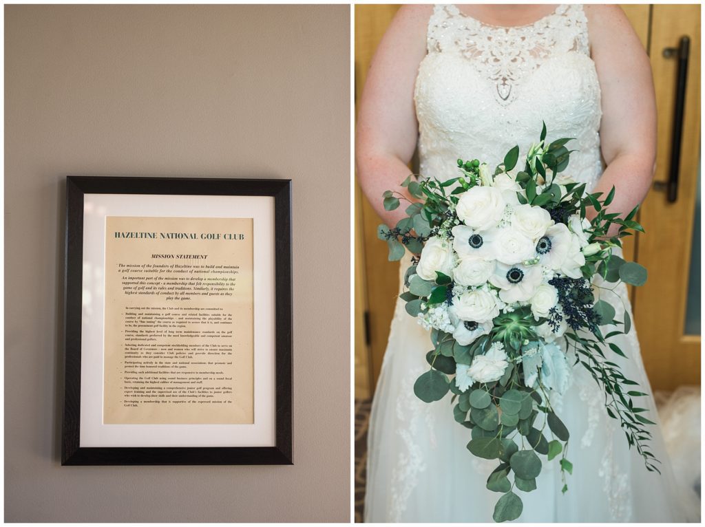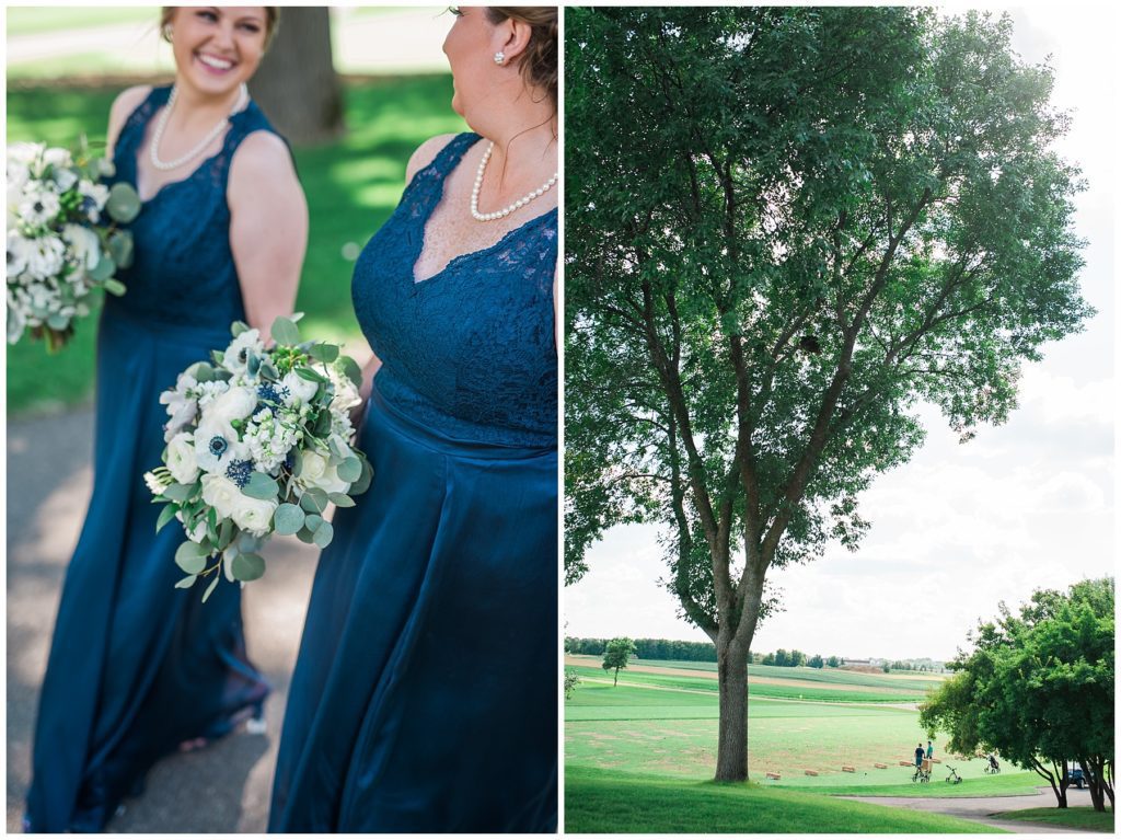 Vendors for the day included::// Ceremony and Reception:: Hazeltine Golf Course// Florist:: Christina Anderson// Wedding Dress:: Luxe Bridal Couture// Bridesmaids Dresses:: Belsoi from Wedding Shoppe // Men’s Ware:: Men’s Warehouse // Bride and Groom wedding rings:: Shane Co// Stationery:: Ivory Isle Designs // Caterer:: Hazeltine Golf COurse// Bride’s Shoes:: Badgley Mischka from Macy’s// Baker:: Buttercream and Muddy Paws Cheesecake // Chair coverings and Drapery:: Lori Cole – Illuminations By Cole // Dressing Room Decor:: Dream Day Dressing Room // DJ:: Jimmy from Instant Request
