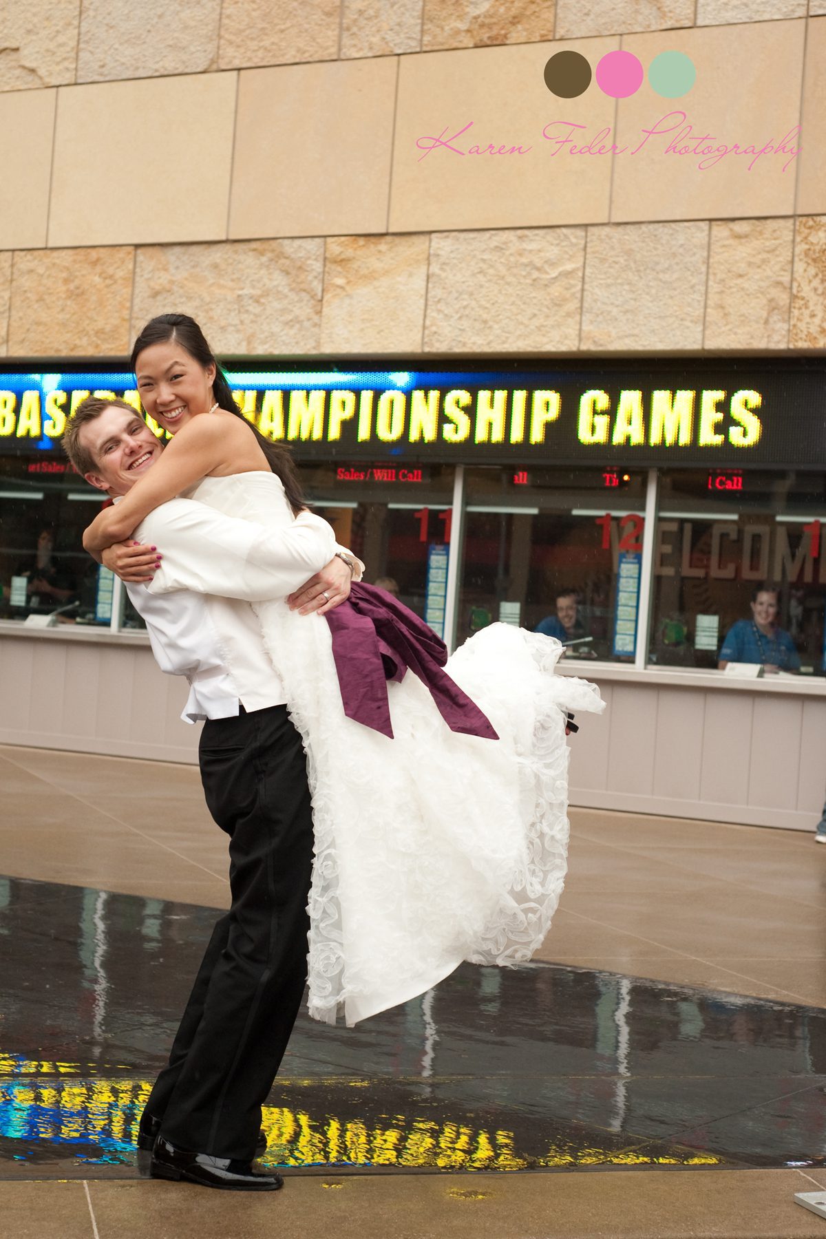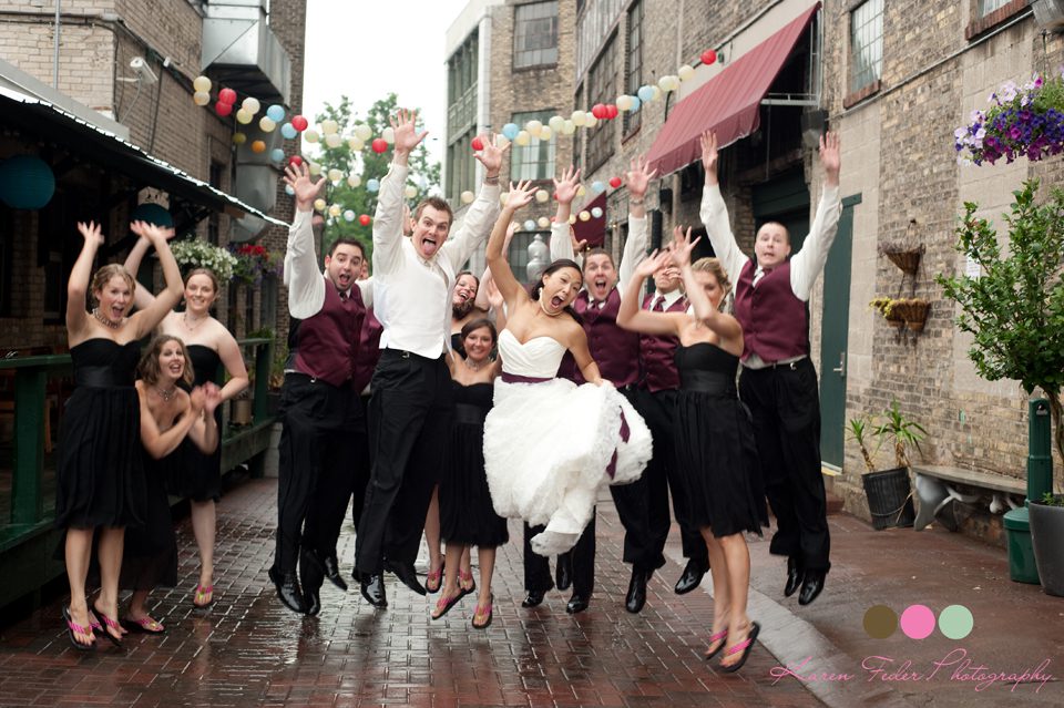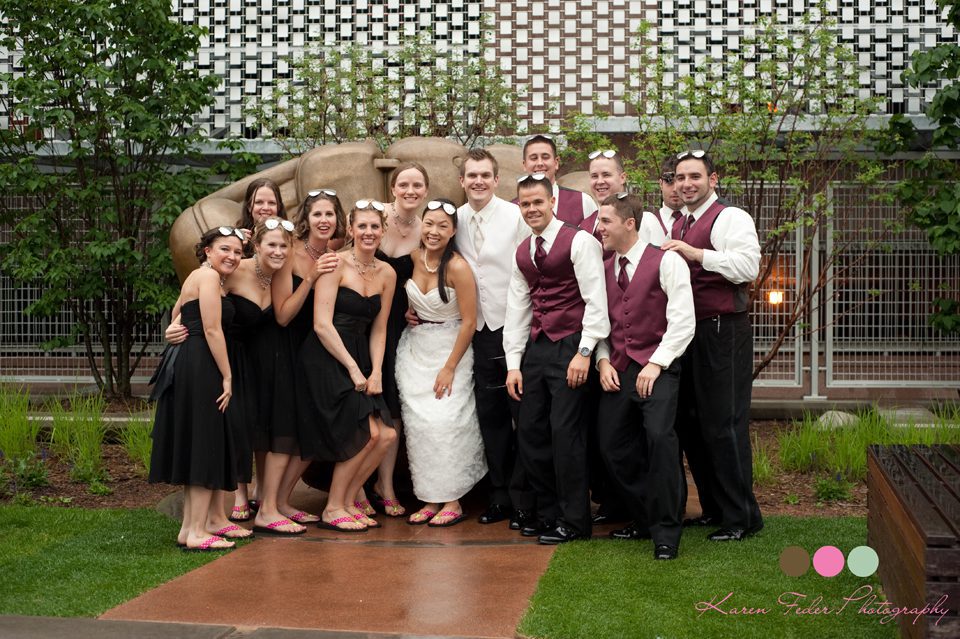 They are Twins fanatics. They love the game, the stadium and the players. So it was only natural that Tyler get down on one knee to ask Heather to marry him last year at Target Field. She was stunned and said yes immediately. The couple wanted to incorporate the Stadium not only in their engagement, but on their wedding day as well. They also wanted a modern and contemporary wedding and wanted to have lots of fun with their wedding party in between the ceremony and reception. The day could have been nothing but what they envisioned. It rained throughout the day, but they had so much fun (and so did I!) The couple was married at the beautiful Christ Presbyterian Church in Edina and we headed to a variety of great Minneapolis locations, including Target Field, and then headed to Calhoun Beach Club for their reception.