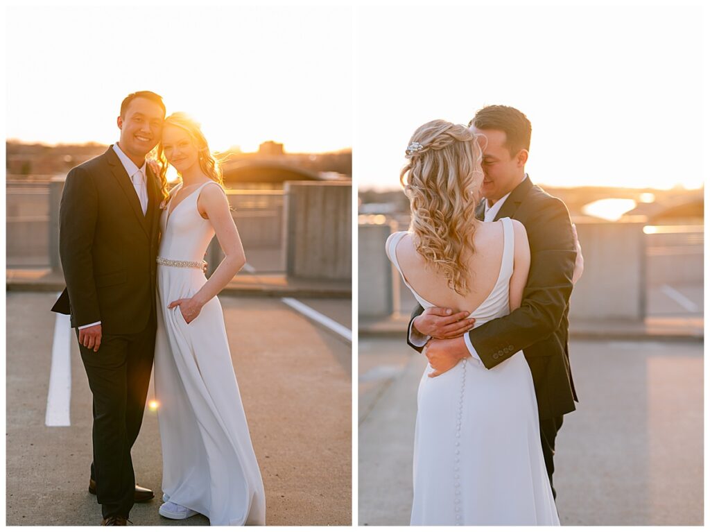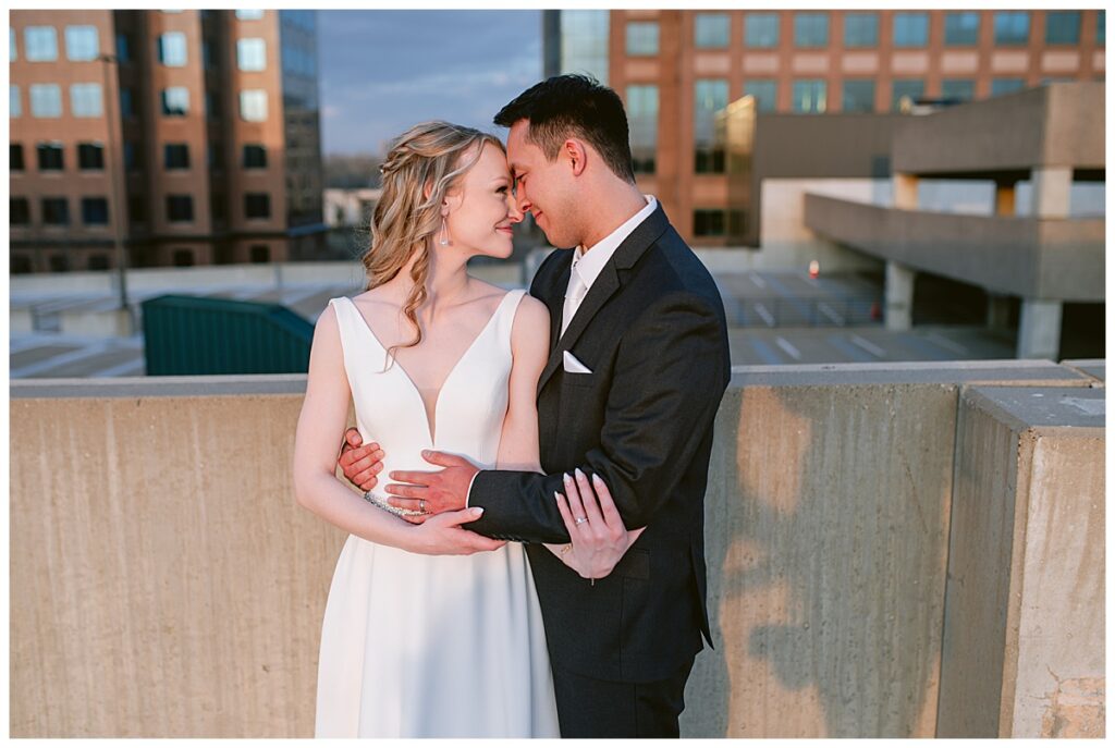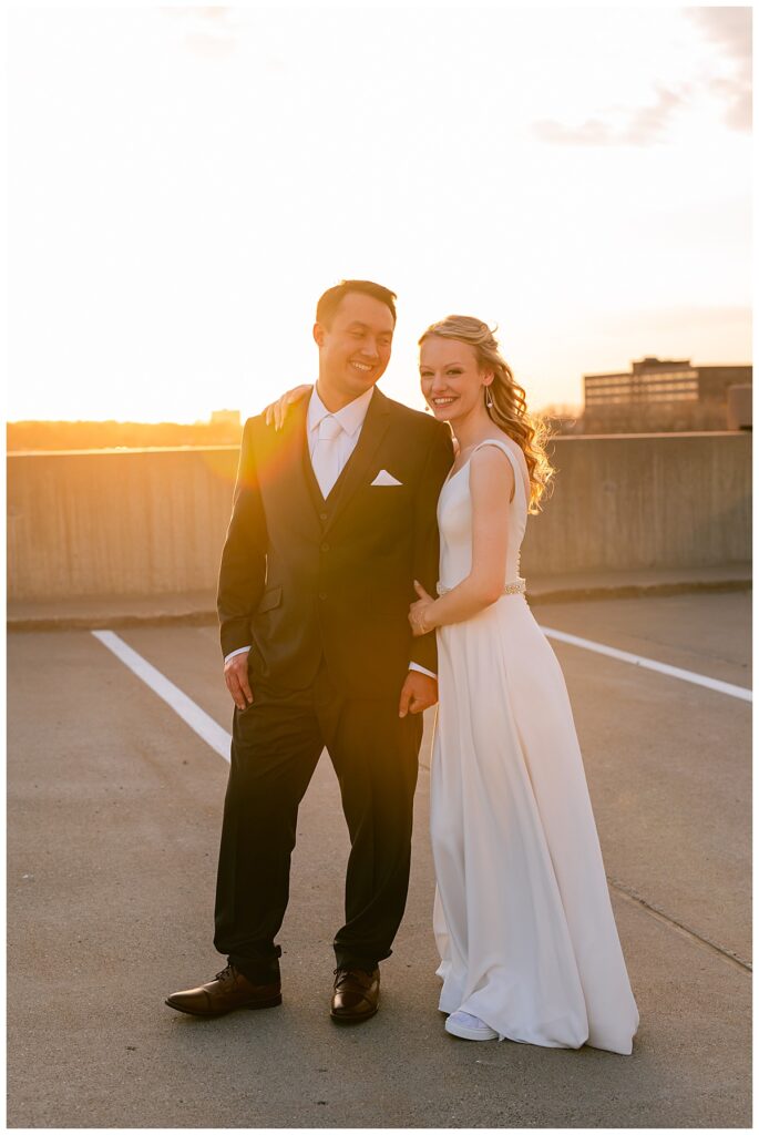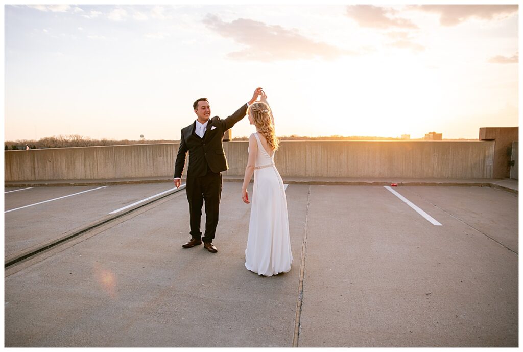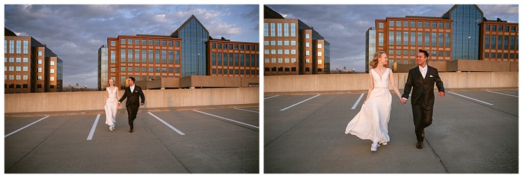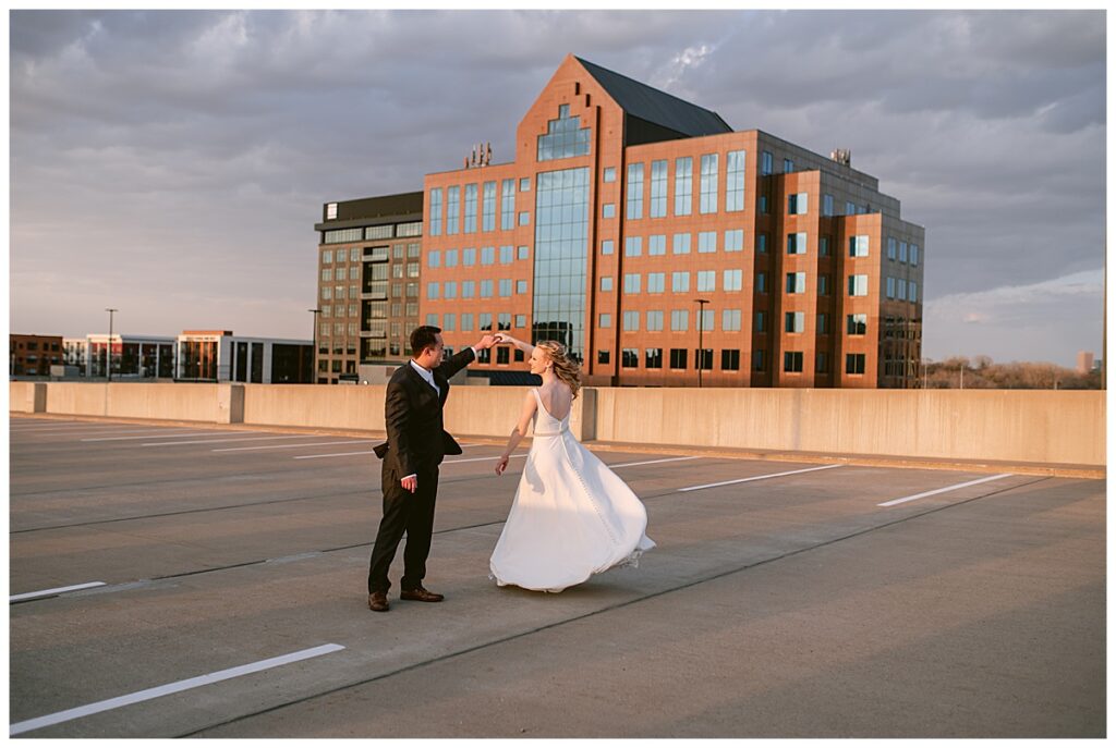The evening was filled with laughter and joy which began in speeches and toasts by the bride and groom’s fathers, maid of honor and best man. The Hilton then provided a delectable meal that delighted the guests’ taste buds and Nothing Bundt Cakes and Key’s Cafe brought in sweet treats for guests to enjoy. The celebration continued thanks to the lively tunes spun by Mark Haugen. The daddy daughter choreographed dance was a hit and started off the party! Every moment was captured beautifully among the beautiful linens and decor by We’ve Got it Covered, ensuring that the memories of this special day will be cherished for years to come. At the end of the night we headed to a spot overlooking downtown Minneapolis for some beautiful sunset photos to remember this incredible day. This was not just a wedding; it was a celebration of love, friendship, and the beginning of a beautiful journey together.