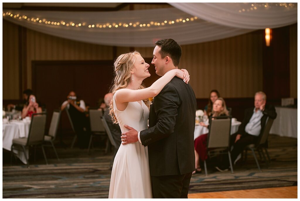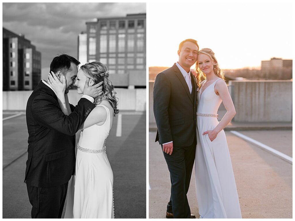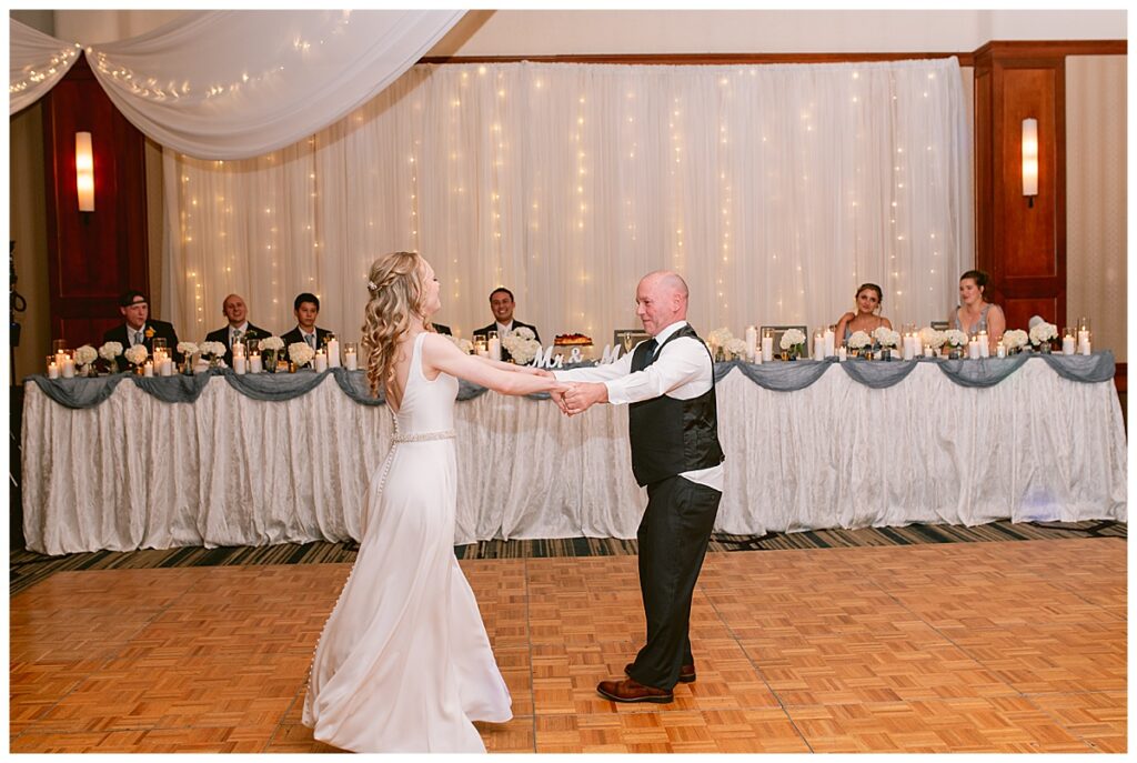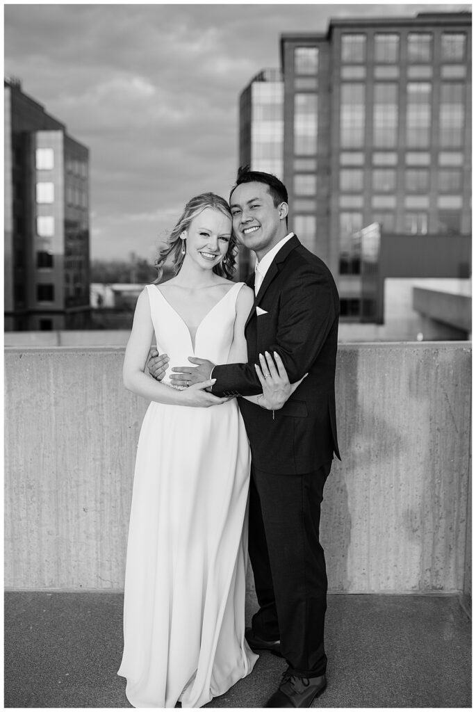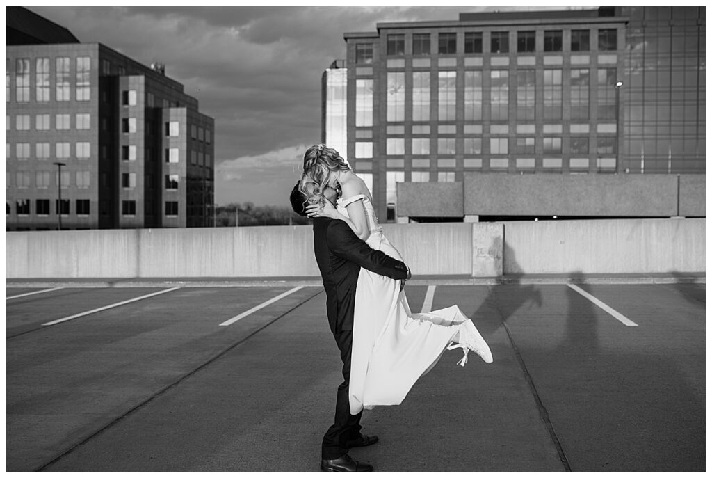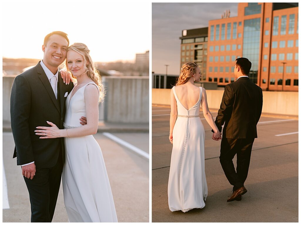 The evening was filled with laughter and joy which began in speeches and toasts by the bride and groom’s fathers, maid of honor and best man. The Hilton then provided a delectable meal that delighted the guests’ taste buds and Nothing Bundt Cakes and Key’s Cafe brought in sweet treats for guests to enjoy. The celebration continued thanks to the lively tunes spun by Mark Haugen. The daddy daughter choreographed dance was a hit and started off the party! Every moment was captured beautifully among the beautiful linens and decor by We’ve Got it Covered, ensuring that the memories of this special day will be cherished for years to come. At the end of the night we headed to a spot overlooking downtown Minneapolis for some beautiful sunset photos to remember this incredible day. This was not just a wedding; it was a celebration of love, friendship, and the beginning of a beautiful journey together.
