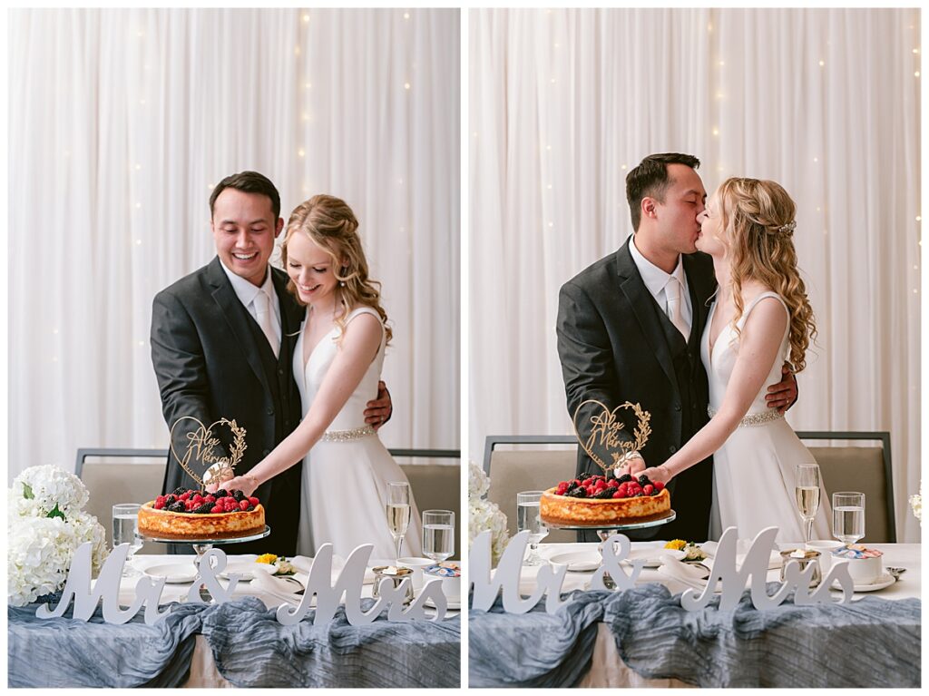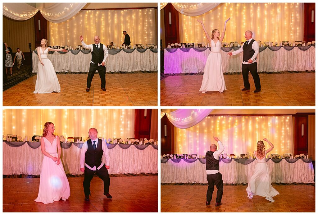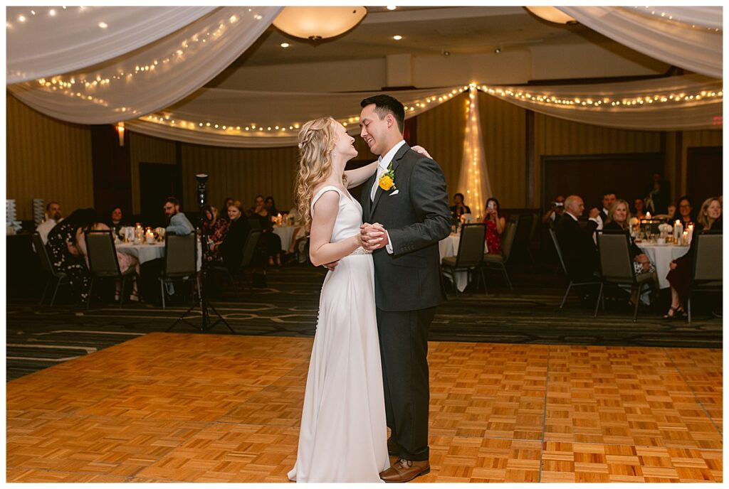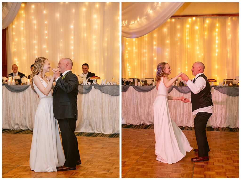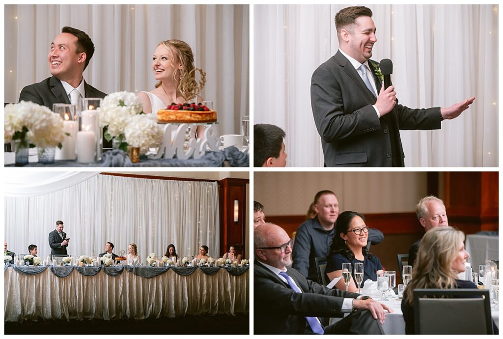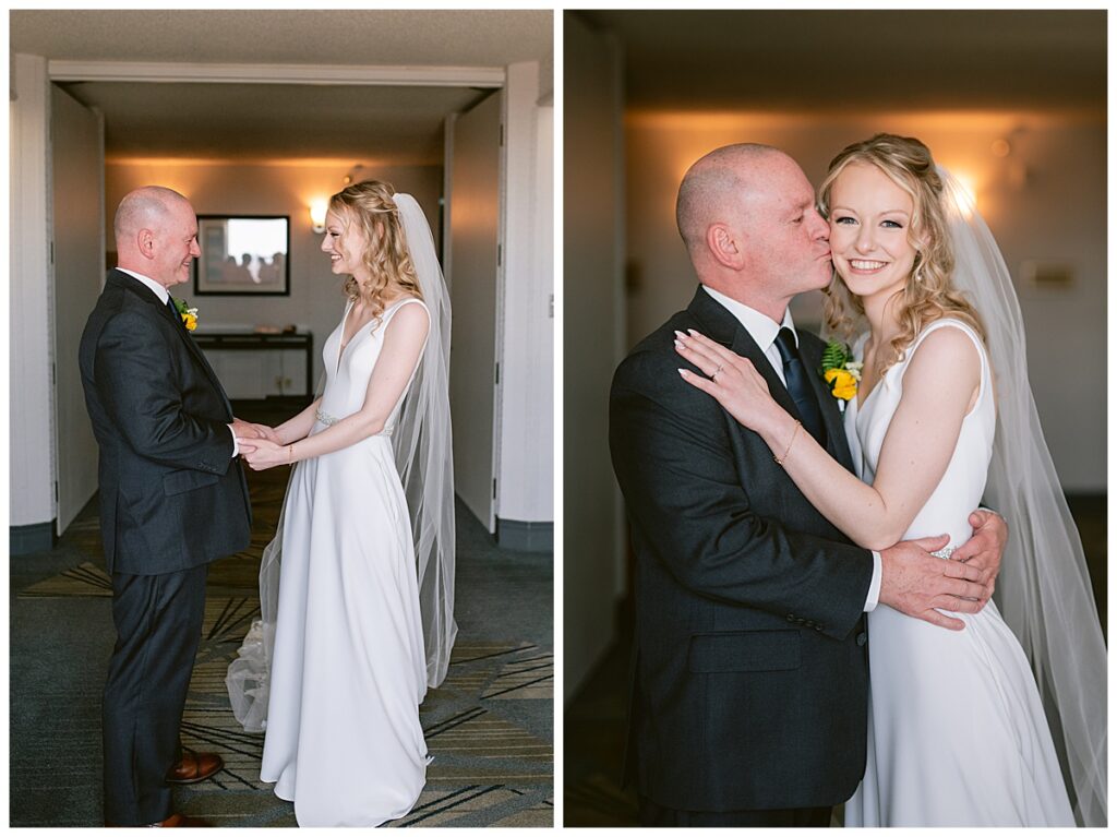 The evening was filled with laughter and joy which began in speeches and toasts by the bride and groom’s fathers, maid of honor and best man. The Hilton then provided a delectable meal that delighted the guests’ taste buds and Nothing Bundt Cakes and Key’s Cafe brought in sweet treats for guests to enjoy. The celebration continued thanks to the lively tunes spun by Mark Haugen. The daddy daughter choreographed dance was a hit and started off the party! Every moment was captured beautifully among the beautiful linens and decor by We’ve Got it Covered, ensuring that the memories of this special day will be cherished for years to come. At the end of the night we headed to a spot overlooking downtown Minneapolis for some beautiful sunset photos to remember this incredible day. This was not just a wedding; it was a celebration of love, friendship, and the beginning of a beautiful journey together.