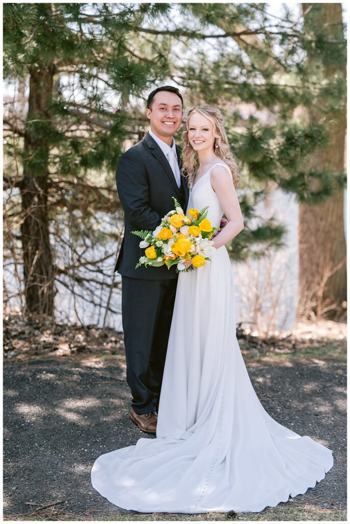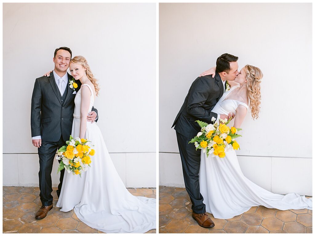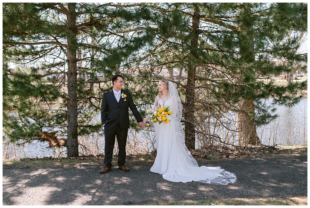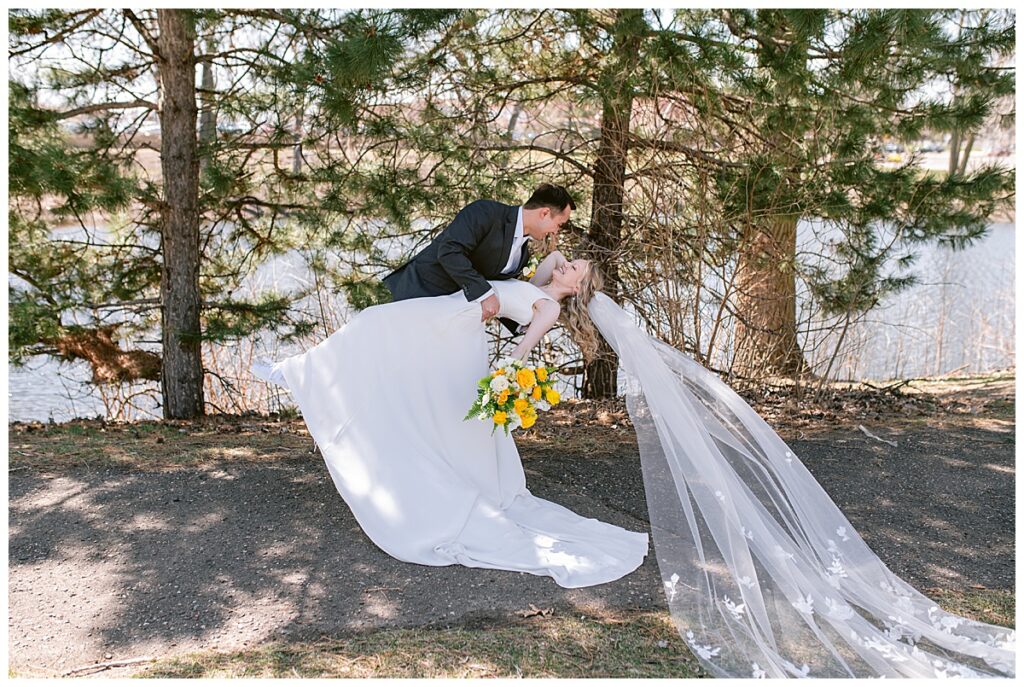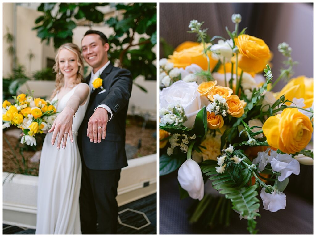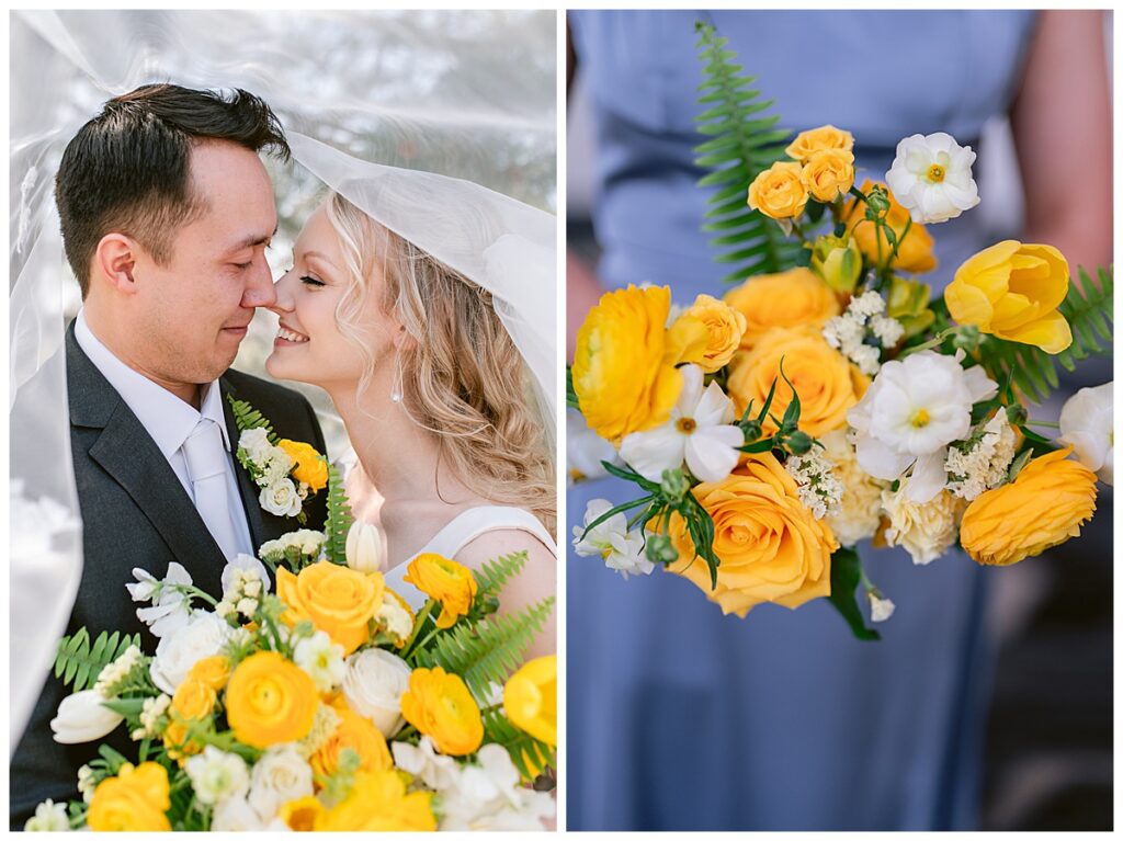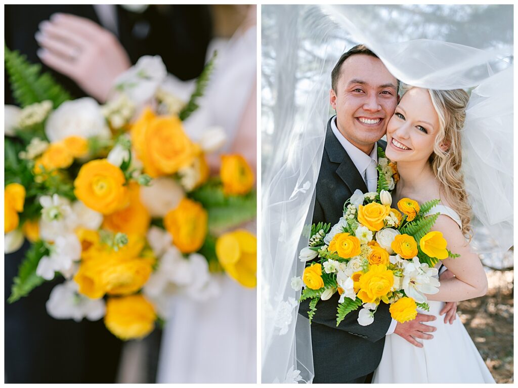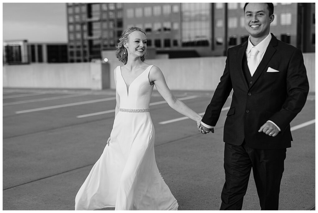Along with the stunning wedding party, Maria and Alex took to the streets around the West End, where cheers and well-wishes followed them. We had so much fun enjoying the beautiful day and walking the streets of St. Louis Park where spring was truly in the air. Megan Charlton of Blooma by Design had crafted stunning spring floral arrangements with pops of yellow tulips, ferns, and white roses that added a touch of natural beauty to the urban setting.