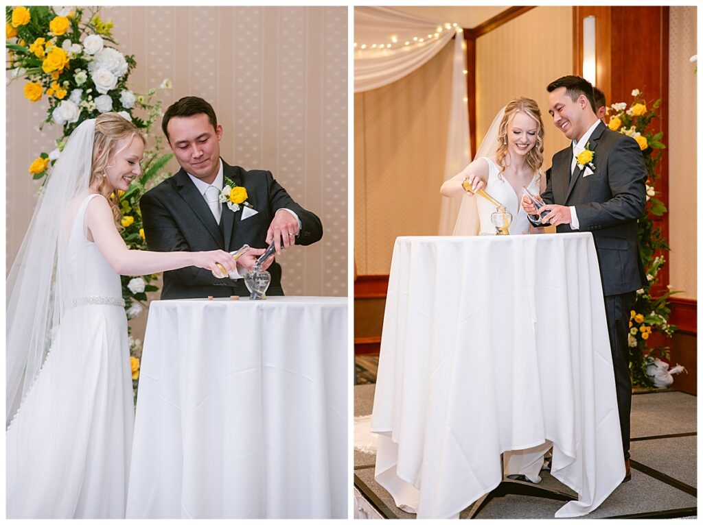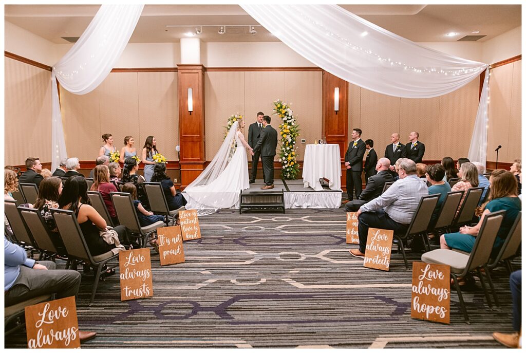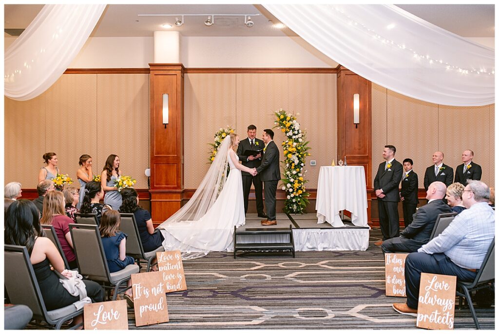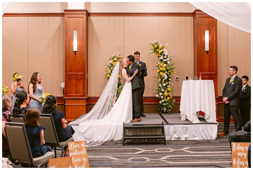 Family then joined us for photos at the Hilton, and guests began arriving to start the celebration of Maria and Alex. The two exchanged heartfelt vows, promising lifelong love and support as Alex’s father wed the two. With rings from Shane Co, they sealed their commitment in a deeply emotional and touching kiss, surrounded by loved ones.