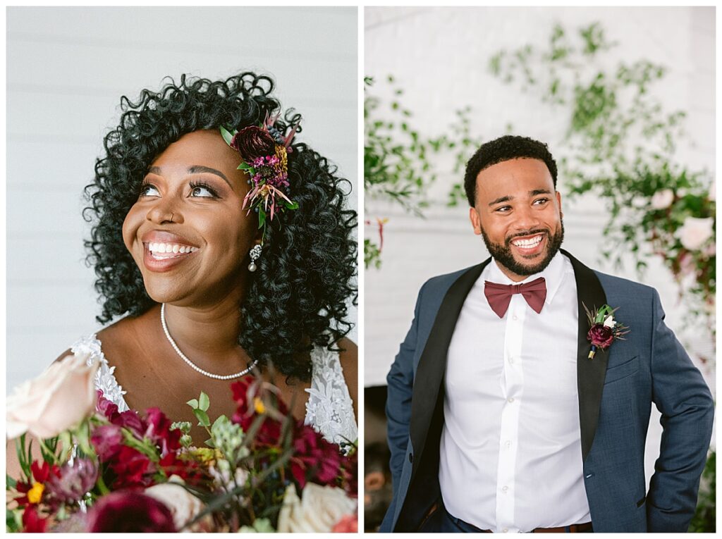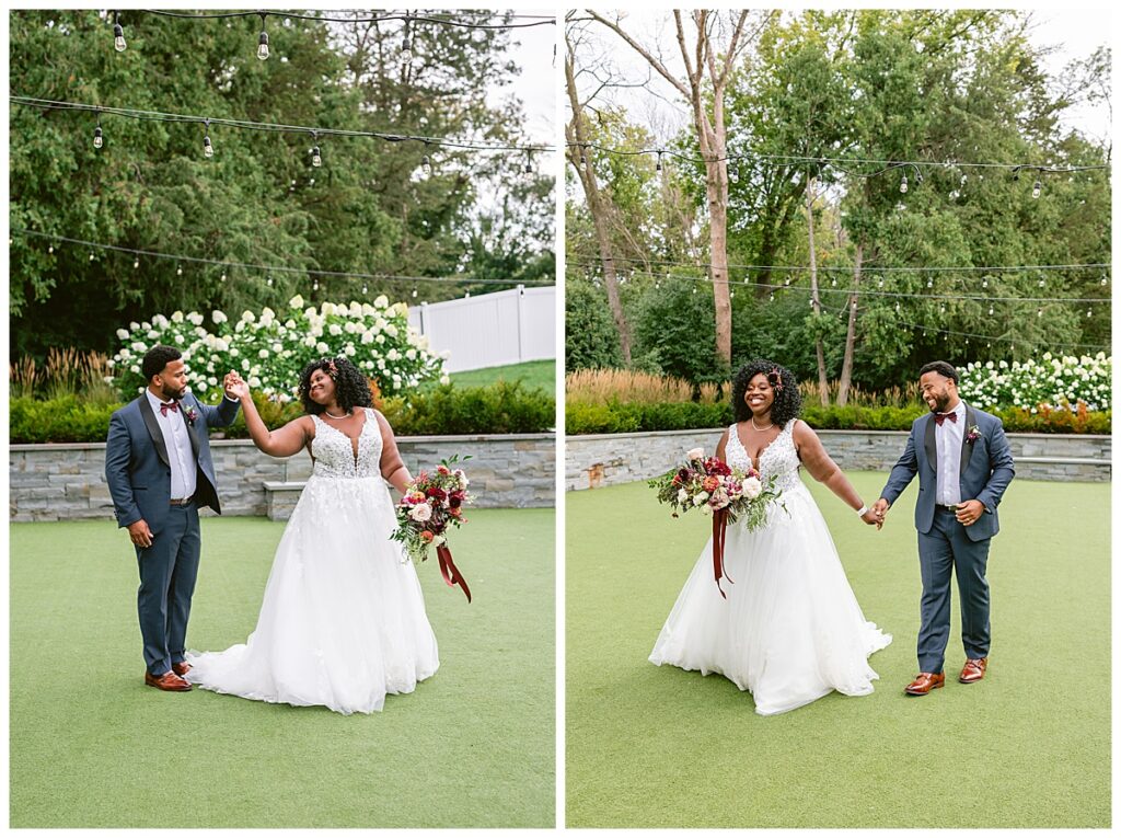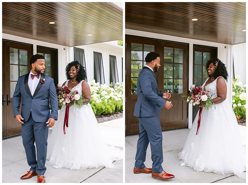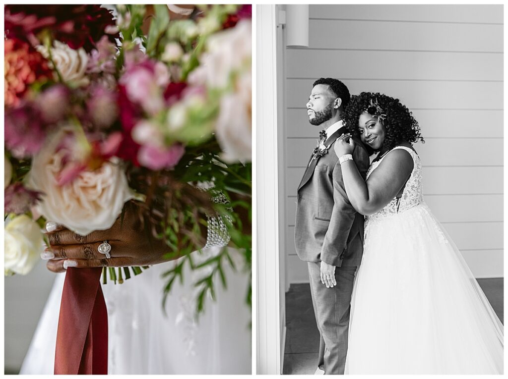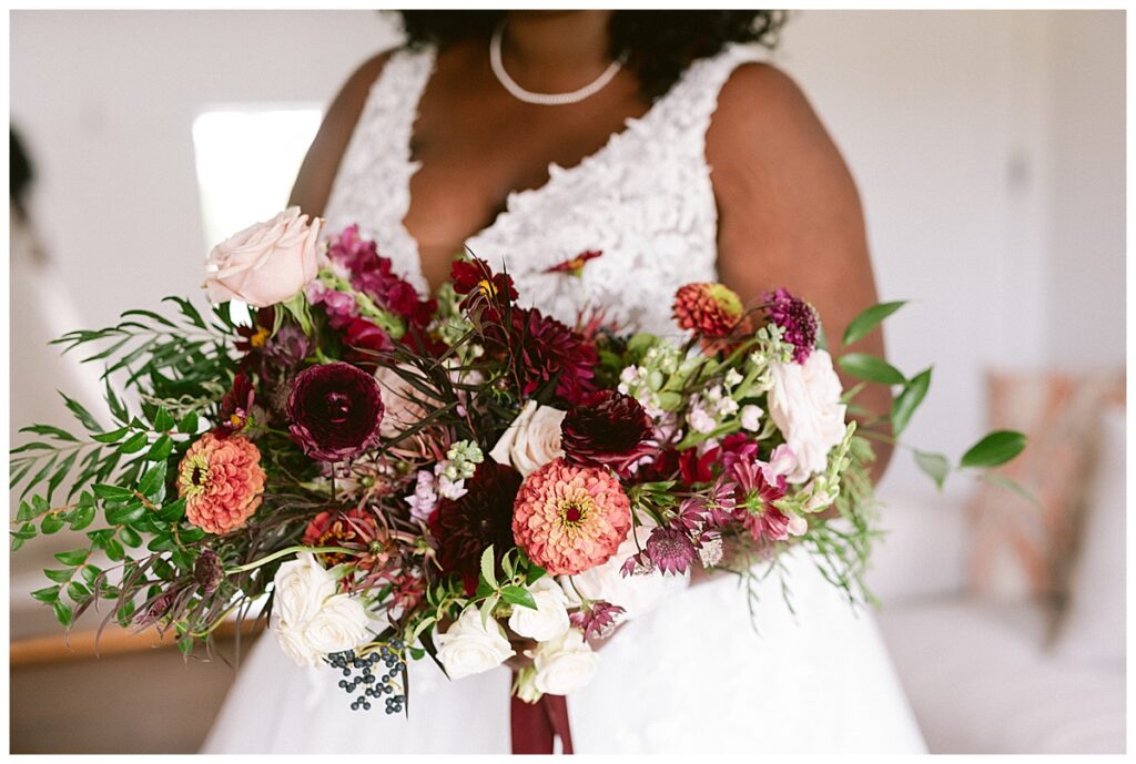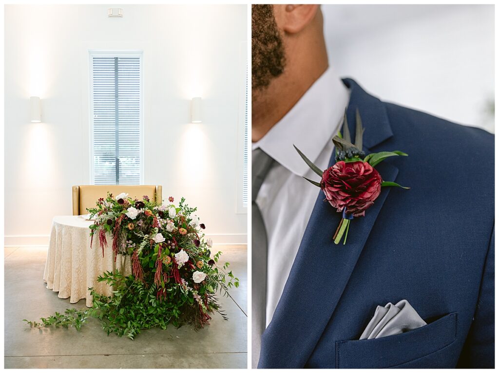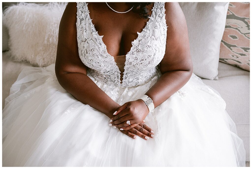 The day began with Michelle and her bridal party getting hair done at the Jai b Experience and Kahuah and May doing make up. They party arrived in the party bus provided by Renae’s Limo’s and then her mother helped Michelle into her beautiful bridal gown from Raffine’s Bridal. Michelle’s bridal party all wore grey attire with dresses purchased at David’s Bridal and Chris’ bridal party wore navy blue with the men purchasing suits from Men’s Warehouse. The incredible floral arrangements created by Wilderland Floral paired beautifully with the blues and grays and looked stunning in the Hutton House. Being that Michelle is a first generation American, she wanted to incorporate her Nigerian heritage into most of the day. One of those wonderful attributes was having a group of people (her Aso-Ebi tribe), a group of people who encourages you and is a big part of your life and also wears the same traditional dress, be a part of photos. After doing photos with family and wedding party in front of the beautiful floral arch, Chris and Michelle chose to be married indoors. The ceremony was rich with family, love and honor for one another. After exchanging rings from Brilliant Earth and Cartier in front of their guests, Michelle and Chris were pronounced husband and wife and retreated to a room to exchange their vows to one another privately.