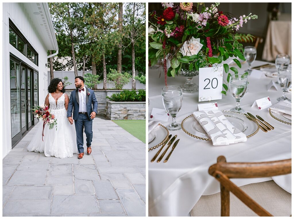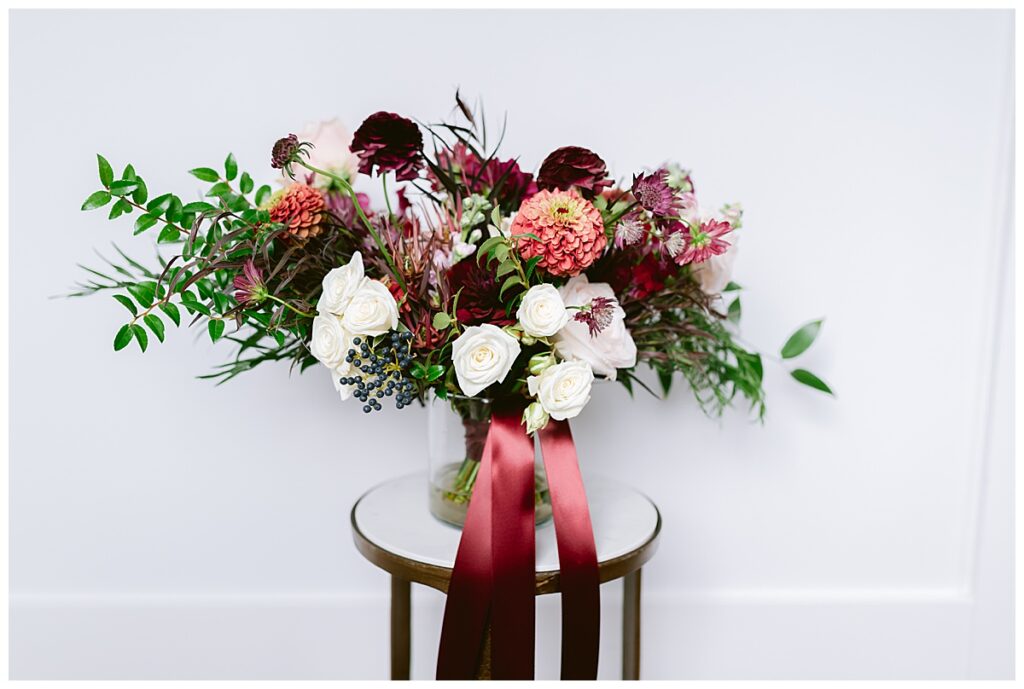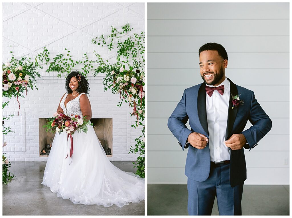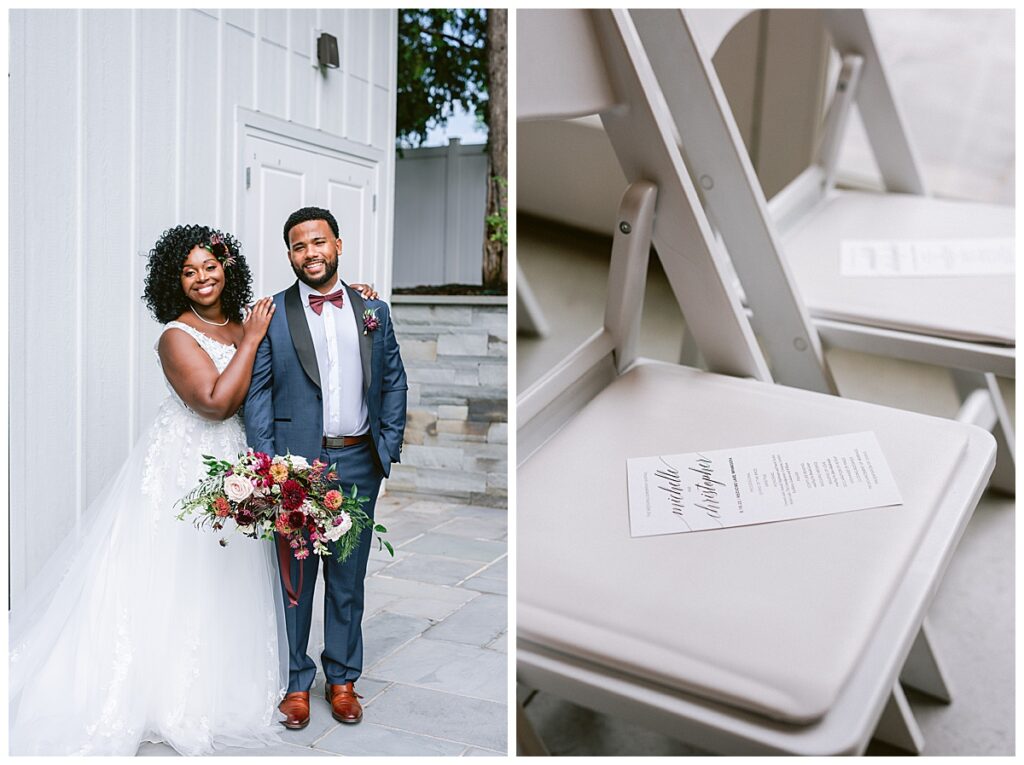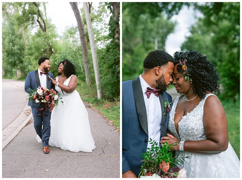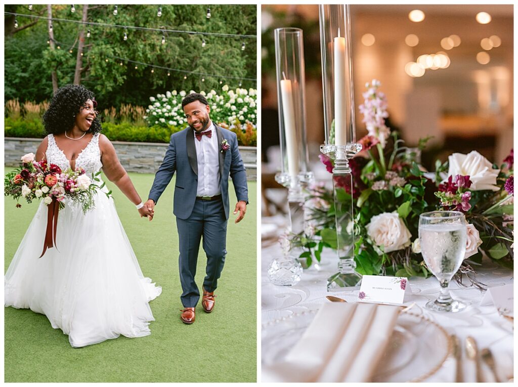 The day began with Michelle and her bridal party getting hair done at the Jai b Experience and Kahuah and May doing make up. They party arrived in the party bus provided by Renae’s Limo’s and then her mother helped Michelle into her beautiful bridal gown from Raffine’s Bridal. Michelle’s bridal party all wore grey attire with dresses purchased at David’s Bridal and Chris’ bridal party wore navy blue with the men purchasing suits from Men’s Warehouse. The incredible floral arrangements created by Wilderland Floral paired beautifully with the blues and grays and looked stunning in the Hutton House. Being that Michelle is a first generation American, she wanted to incorporate her Nigerian heritage into most of the day. One of those wonderful attributes was having a group of people (her Aso-Ebi tribe), a group of people who encourages you and is a big part of your life and also wears the same traditional dress, be a part of photos. After doing photos with family and wedding party in front of the beautiful floral arch, Chris and Michelle chose to be married indoors. The ceremony was rich with family, love and honor for one another. After exchanging rings from Brilliant Earth and Cartier in front of their guests, Michelle and Chris were pronounced husband and wife and retreated to a room to exchange their vows to one another privately.