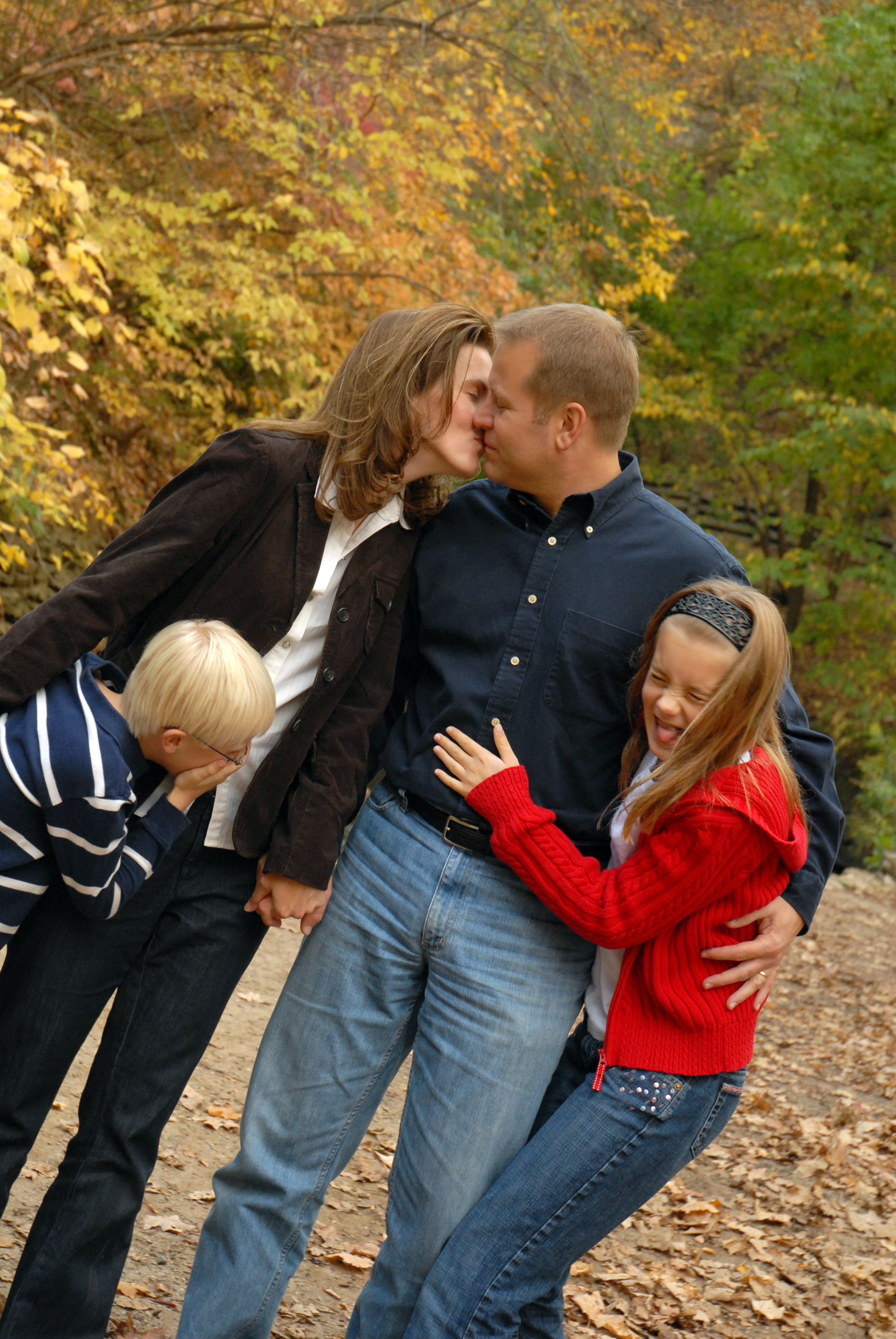 Love the daughter face. That is exactly how my son is when we kiss. This is a great photo!!