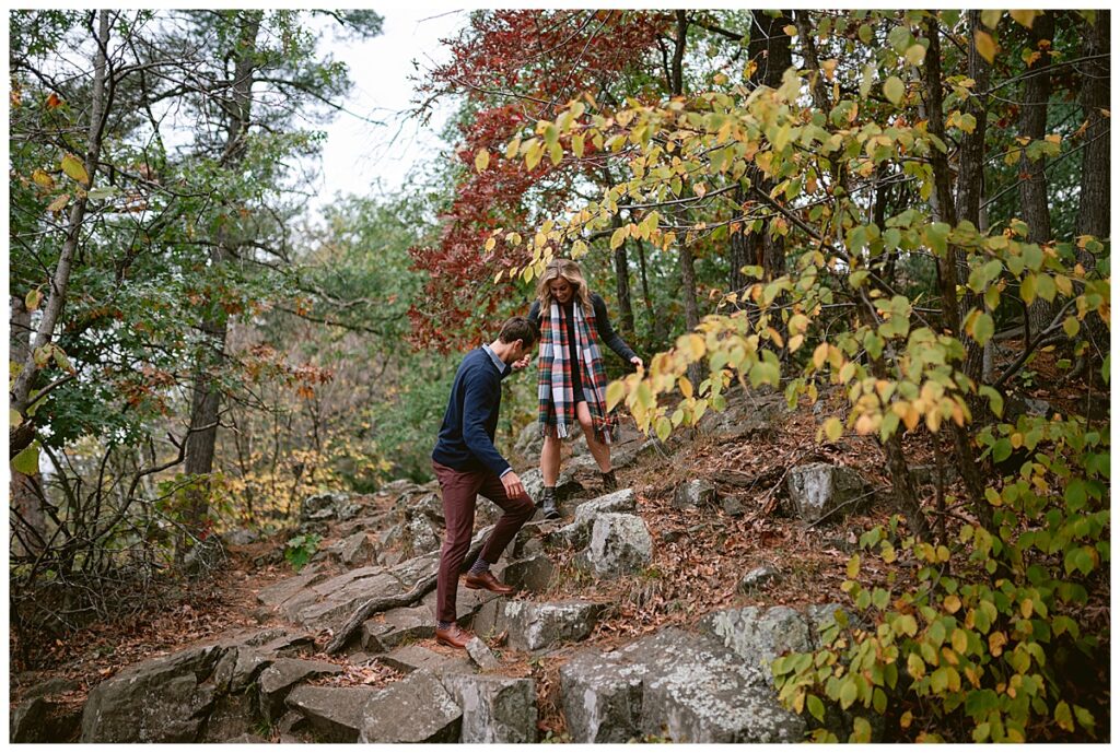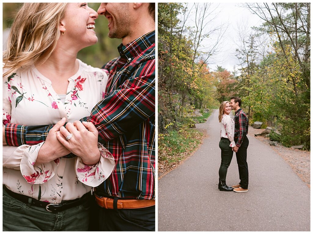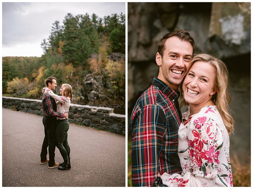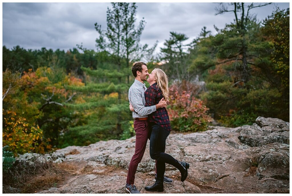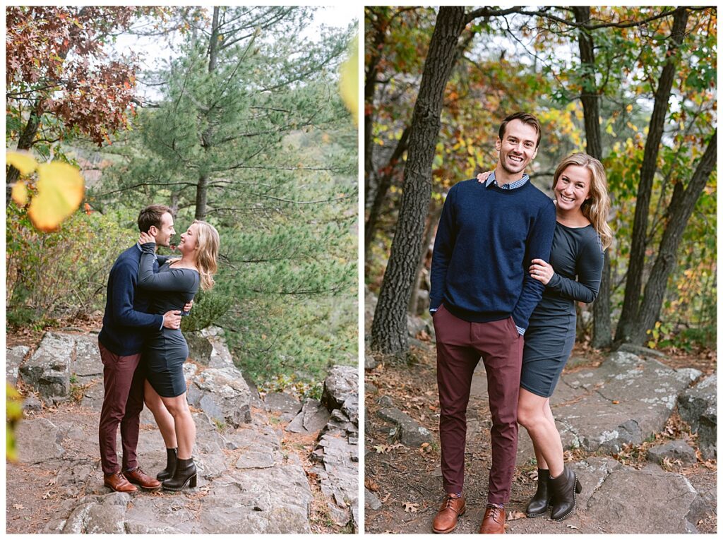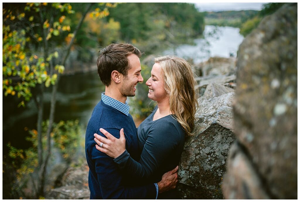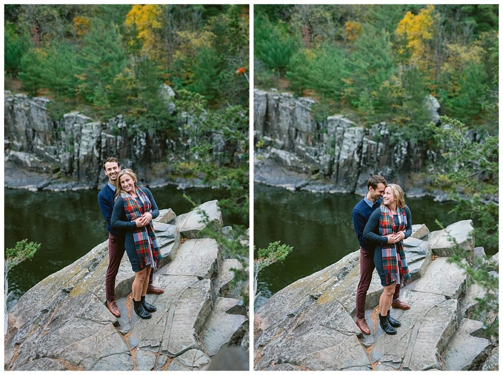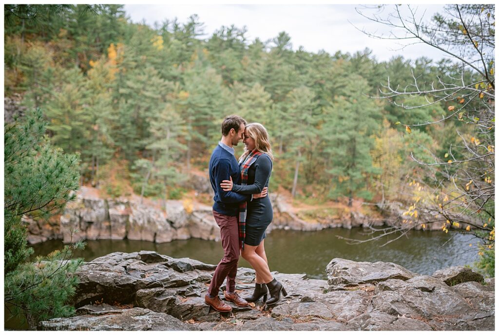 Maddie and Rob love being in nature and both wanted to highlight Minnesota’s beauty. They chose Interstate Park to do their engagement session. The rain held off for us for most of the day, and overcast skies and cool temps were perfect for their fall photos. We walked and hiked along the paths to get some great shots. Both even climbed rocks to get the perfect shot overlooking the river! Their fun and joyful spirits are so wonderful to be around and I can not wait to see the two of them again in a few weeks!