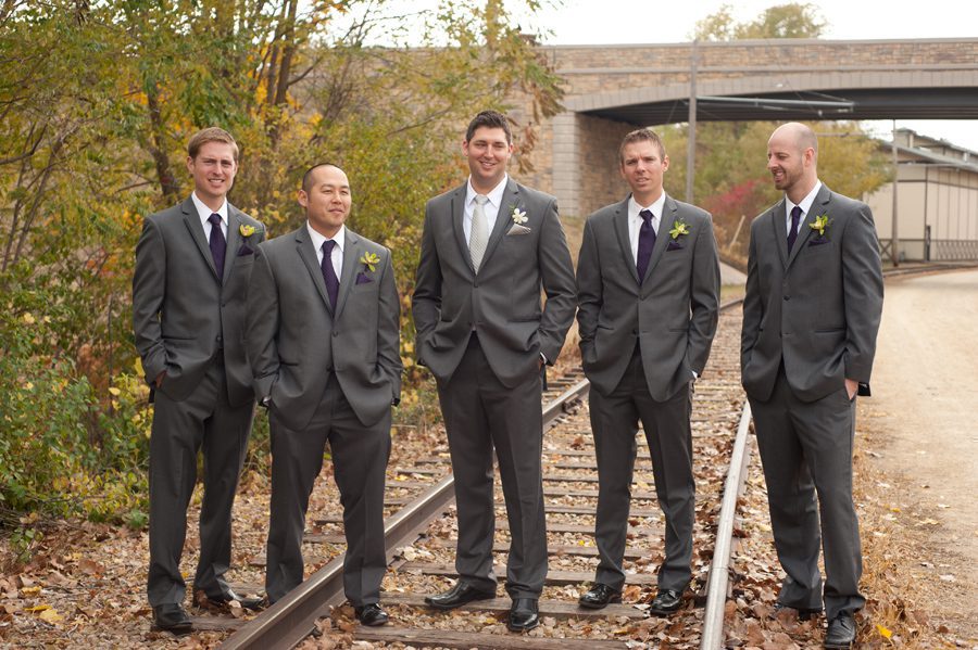 Groomsmen attire: Men’s Warehouse – BLACK by Vera Wang Two-Button Gray suit