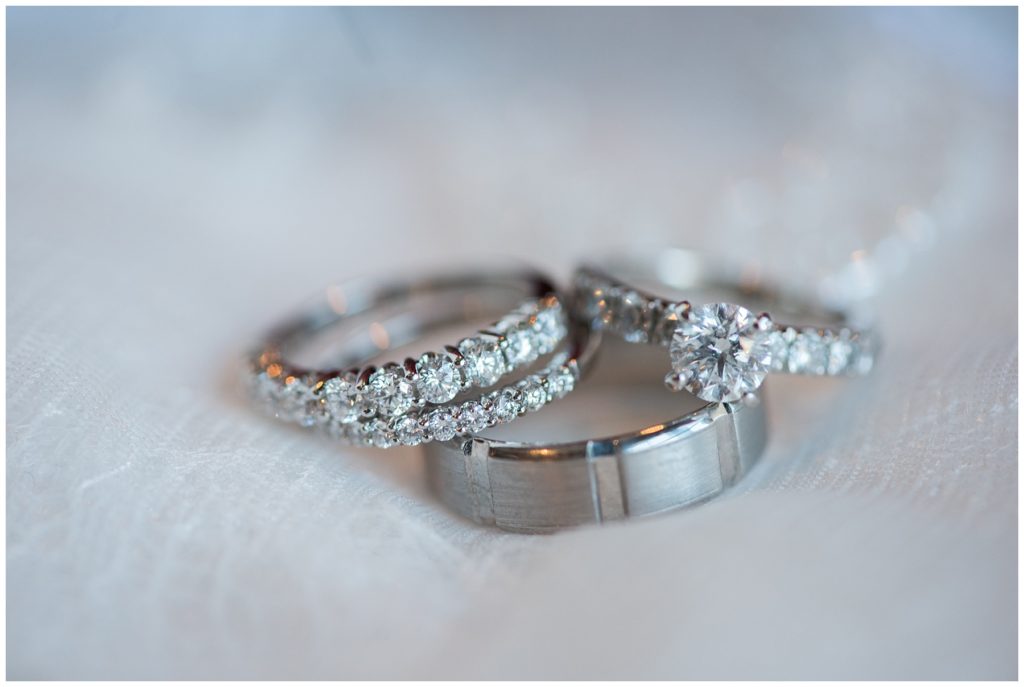 One fall night after work, Jon suggested they take their dogs out for a walk. Tired and in sweats, Emily agreed and once the two started walking, Emily sensed something was up with Jon, but continued to get distracted when one of their three dogs would “do their business”. Finally as they neared the end of their walk, Jon pulled her around and got down on one knee. Stunned, and excited Emily said yes, but just at the same time another dog walked by and their German shepherd got so excited and tried to run after the other dog. He yanked Jon off his knee and the ring went flying into the grass. The two other dogs thought it was food and tried to eat the ring. In the excitement, Jon scrambled to rescue the ring and shoved it on Emily’s finger. They both were so excited they ran the rest of the way home joyfully celebrating.
