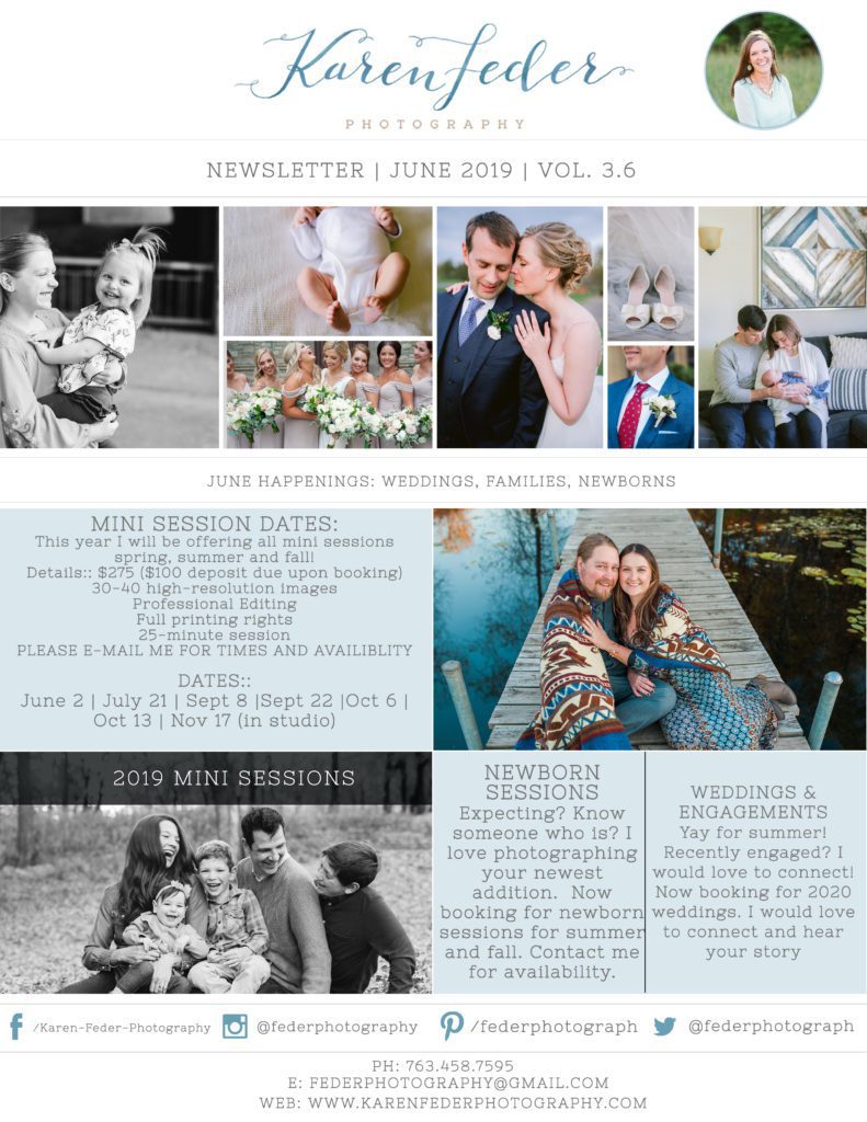 I think it is officially safe to say that summer has come! Finally green grass, waves of color and Minnesota warmth! It is also a fabulous time to have photos done, weather it be of your family, your growing children, your graduate or your engagement session! I would love to connect with you and document whatever stage you are in! Contact me for availability! I have also added a June mini session date if you are interested.