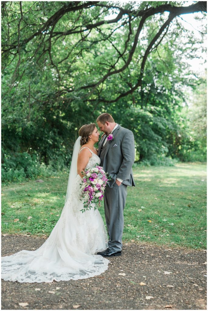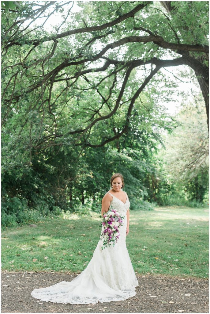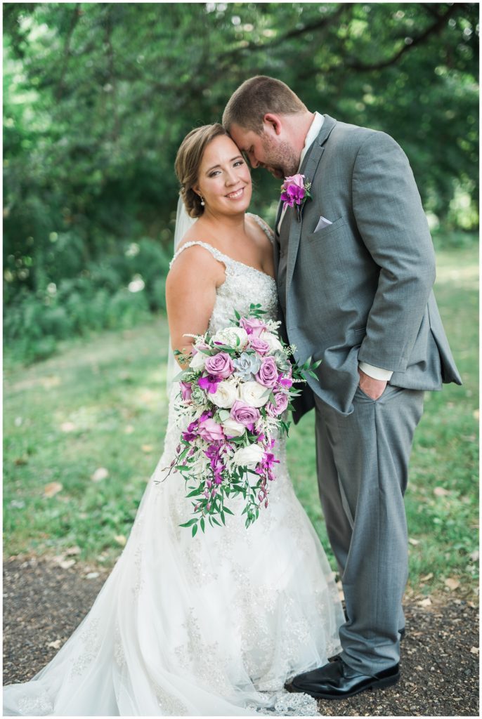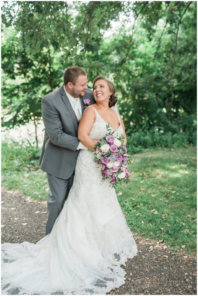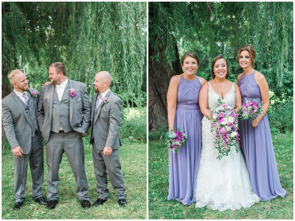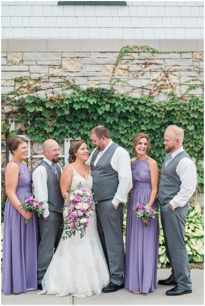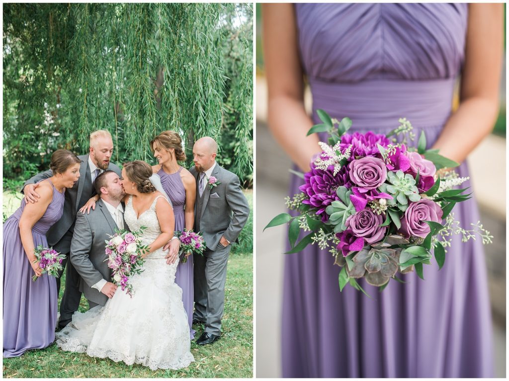Their beautiful August wedding day was filled with glorious sunshine and friends and family who joyfully watched them exchange their wedding vows at Keller Golf Course in Maplewood.  Molly’s elegant ivory Essense of Australia gown from Raffine Bridal paired perfectly with the elegant lavender Bill Levkoff dresses her bridesmaids wore also from Raffine Bridal. Their beautiful summer bouquets with succulents, roses and orchids from Sweet Peas Floral were a perfect pop of color against the dresses.