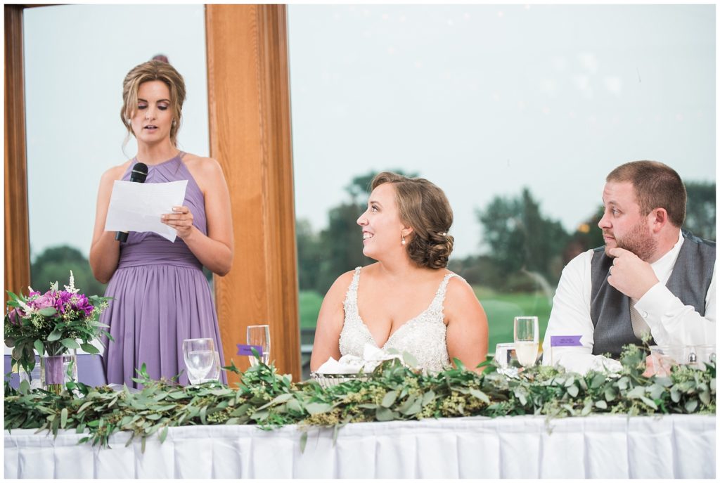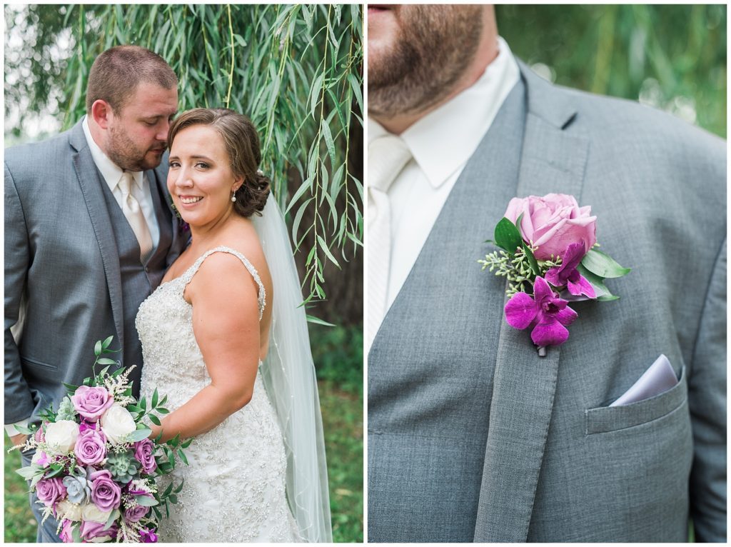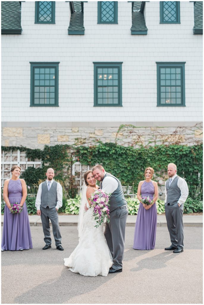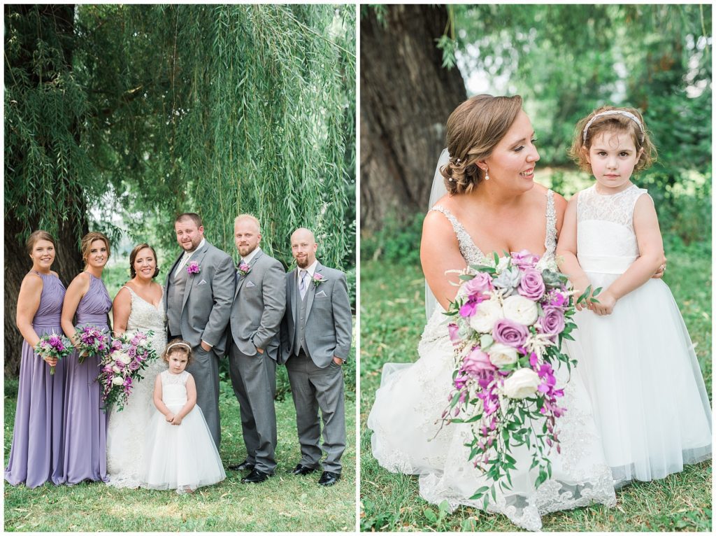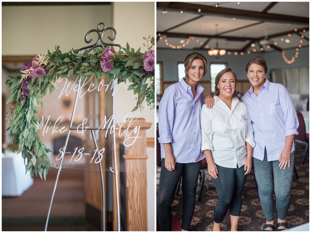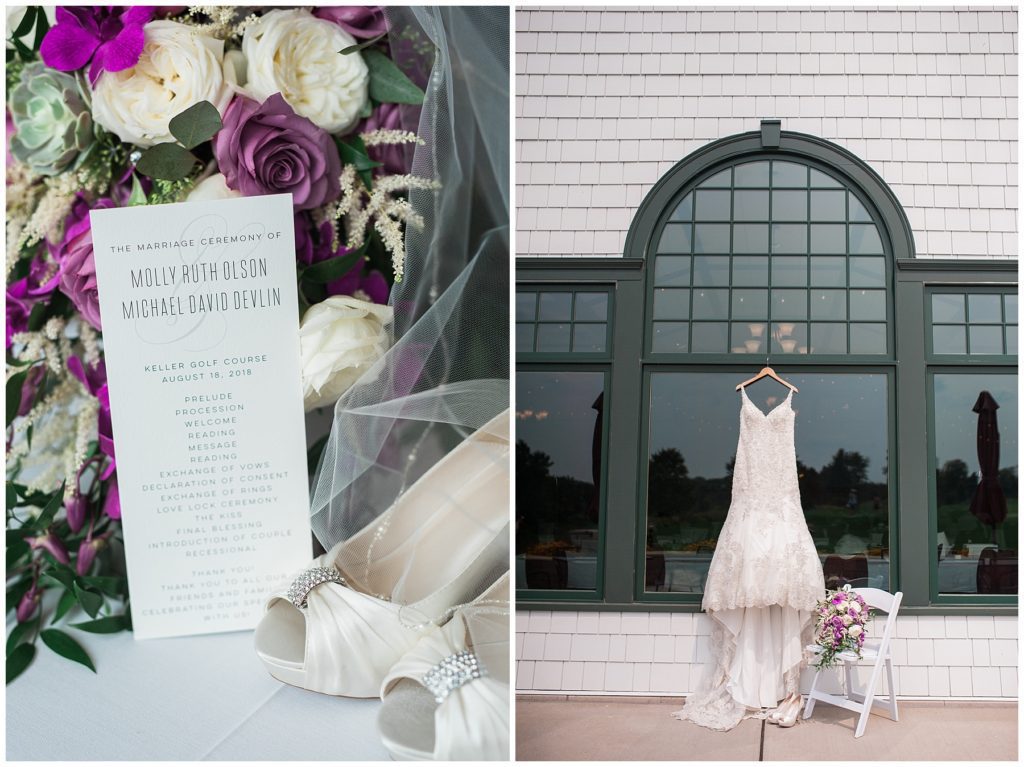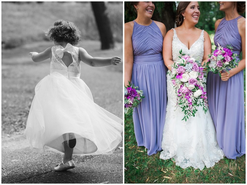 Their beautiful August wedding day was filled with glorious sunshine and friends and family who joyfully watched them exchange their wedding vows at Keller Golf Course in Maplewood.  Molly’s elegant ivory Essense of Australia gown from Raffine Bridal paired perfectly with the elegant lavender Bill Levkoff dresses her bridesmaids wore also from Raffine Bridal. Their beautiful summer bouquets with succulents, roses and orchids from Sweet Peas Floral were a perfect pop of color against the dresses.